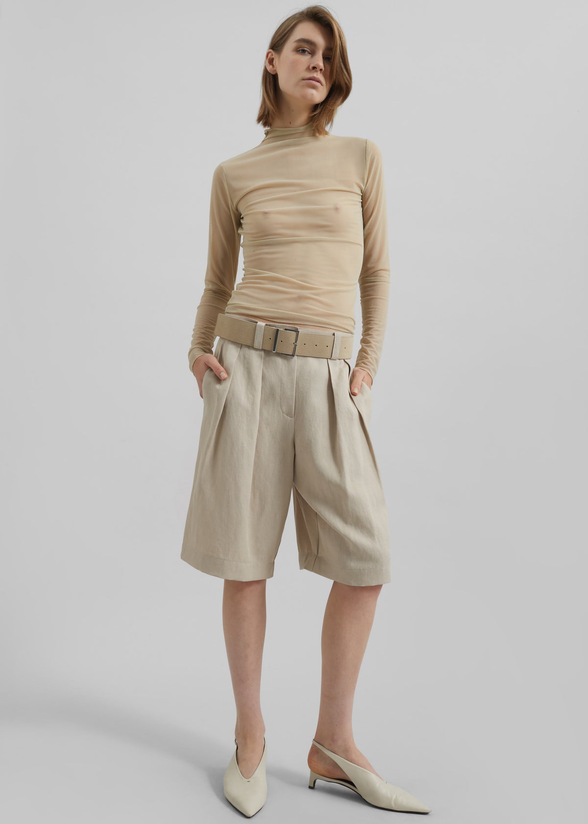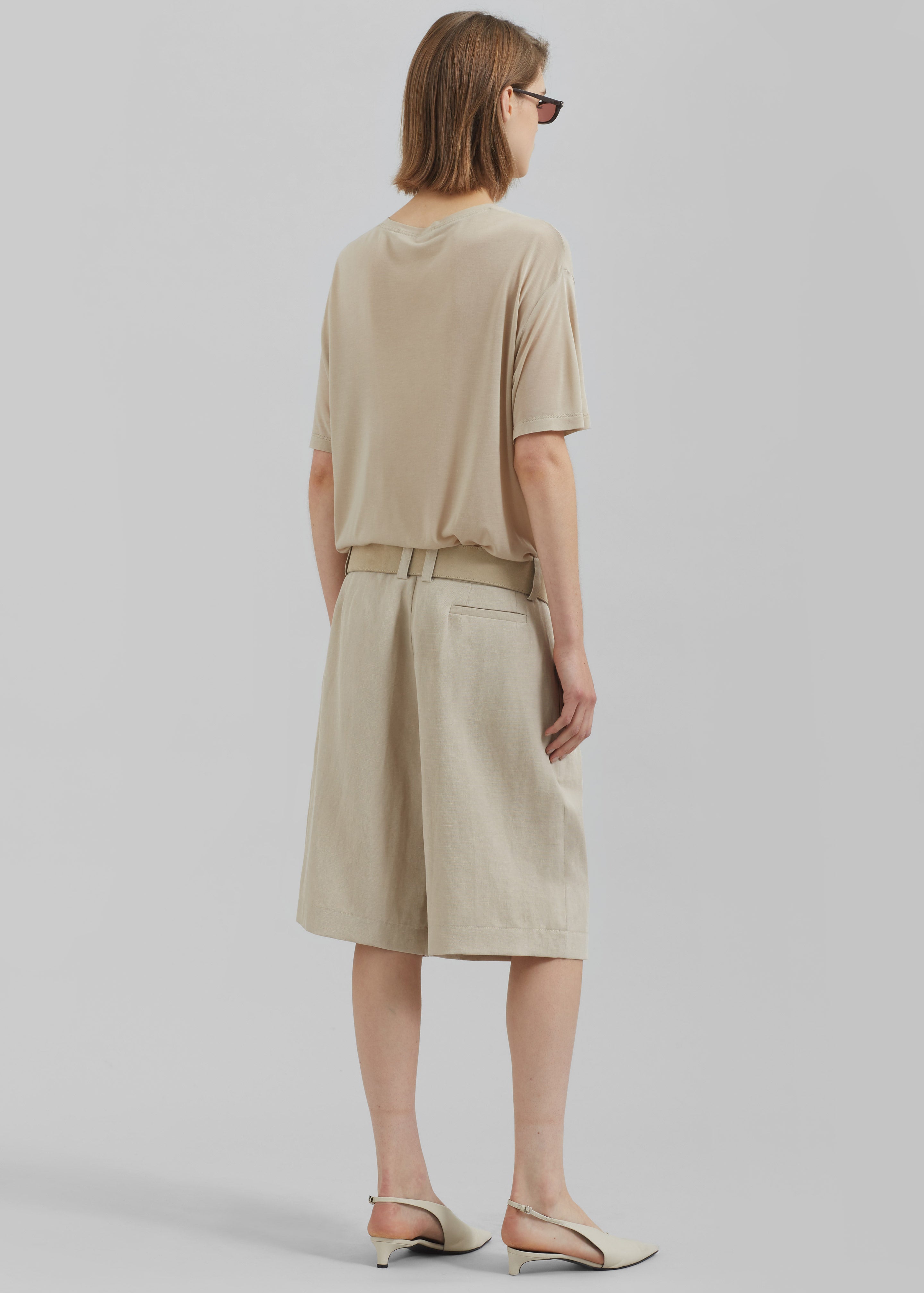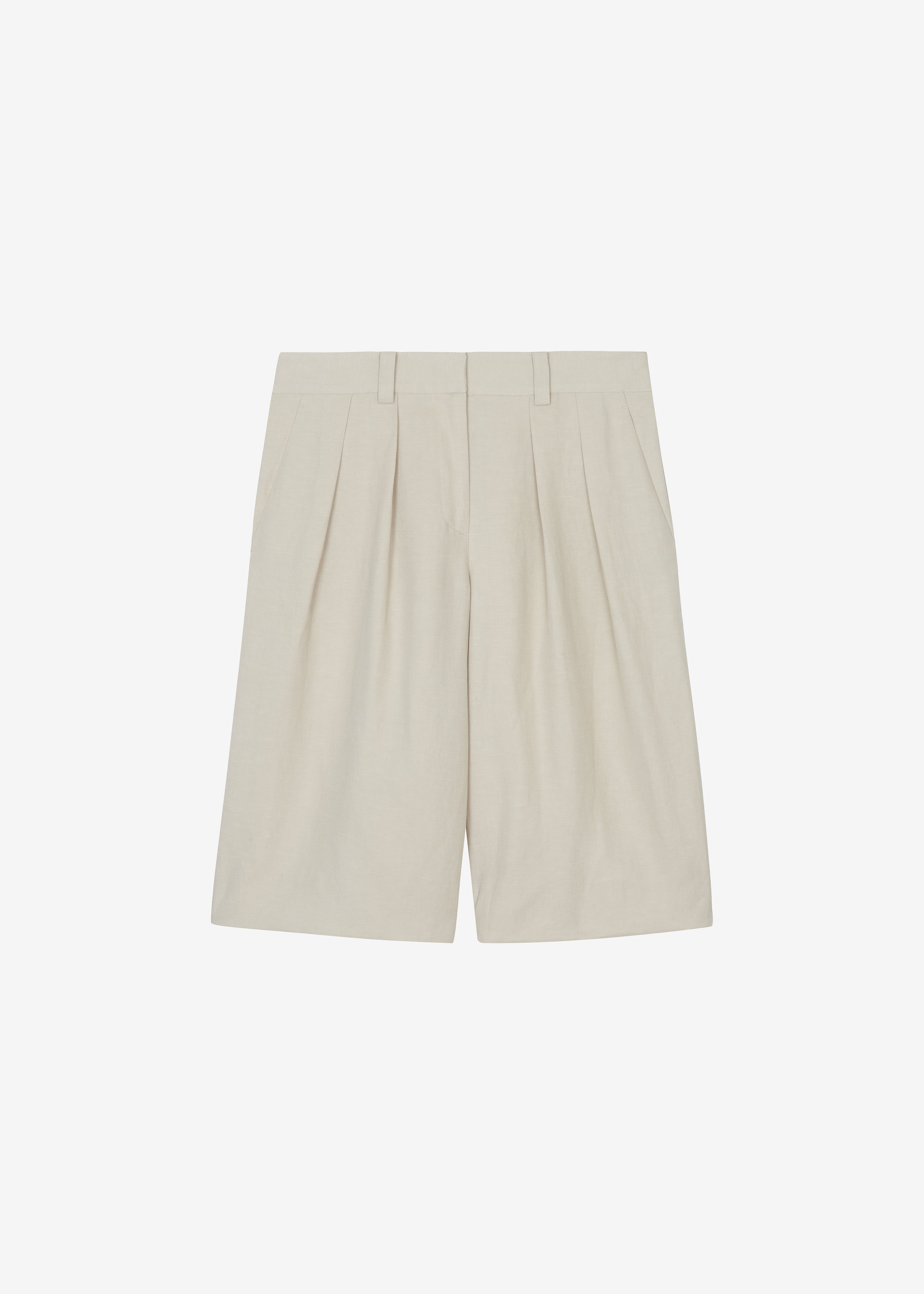 Bilbao Pleated Linen Bermuda Shorts - Cement