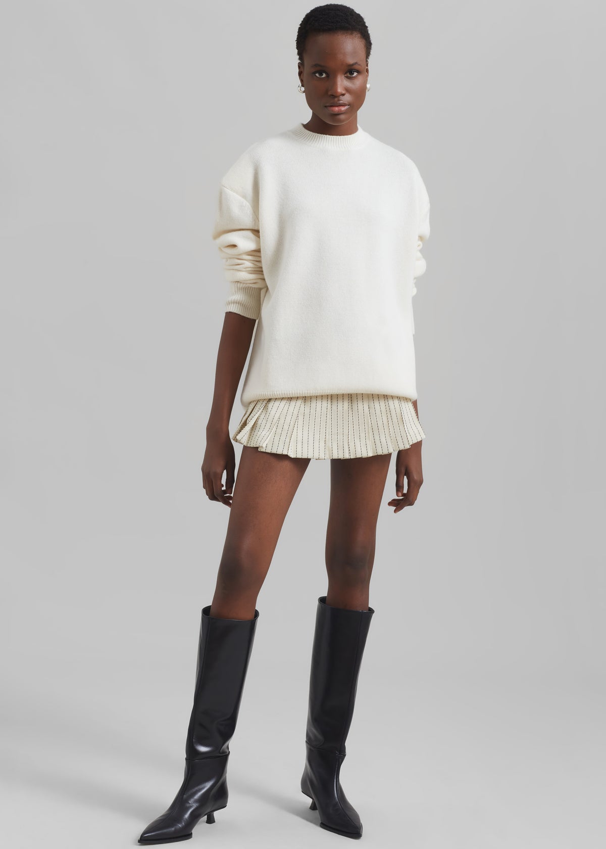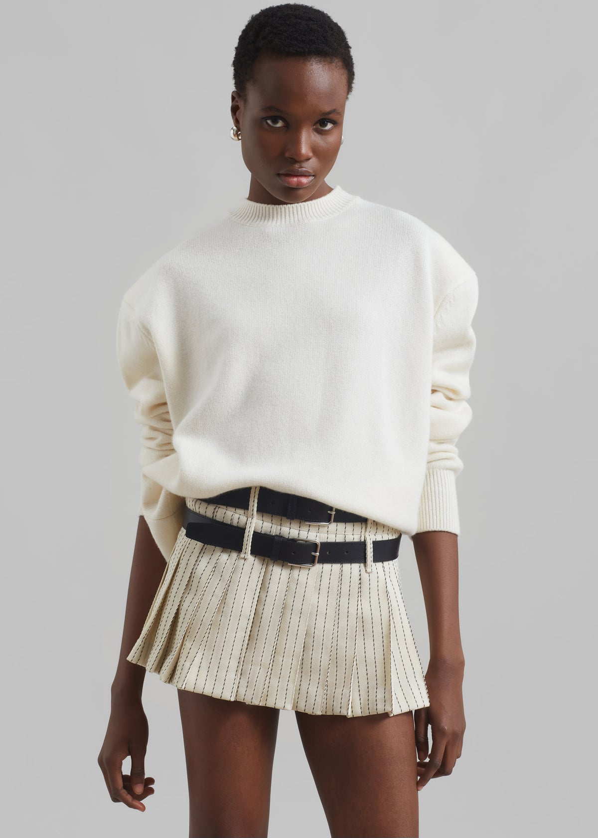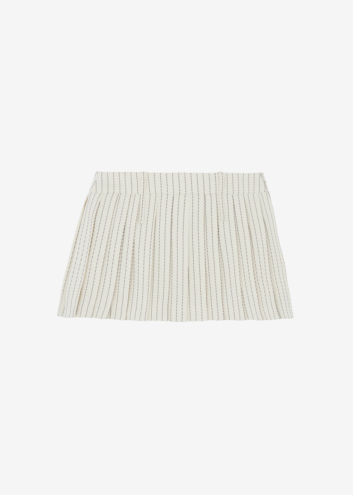 Blake Pleated Twill Mini Skirt - Light Beige/Black Pinstripe