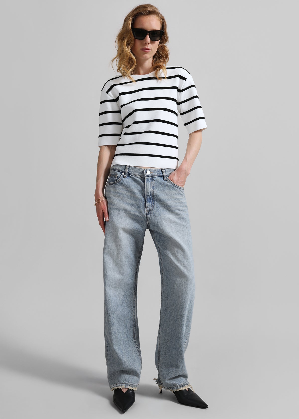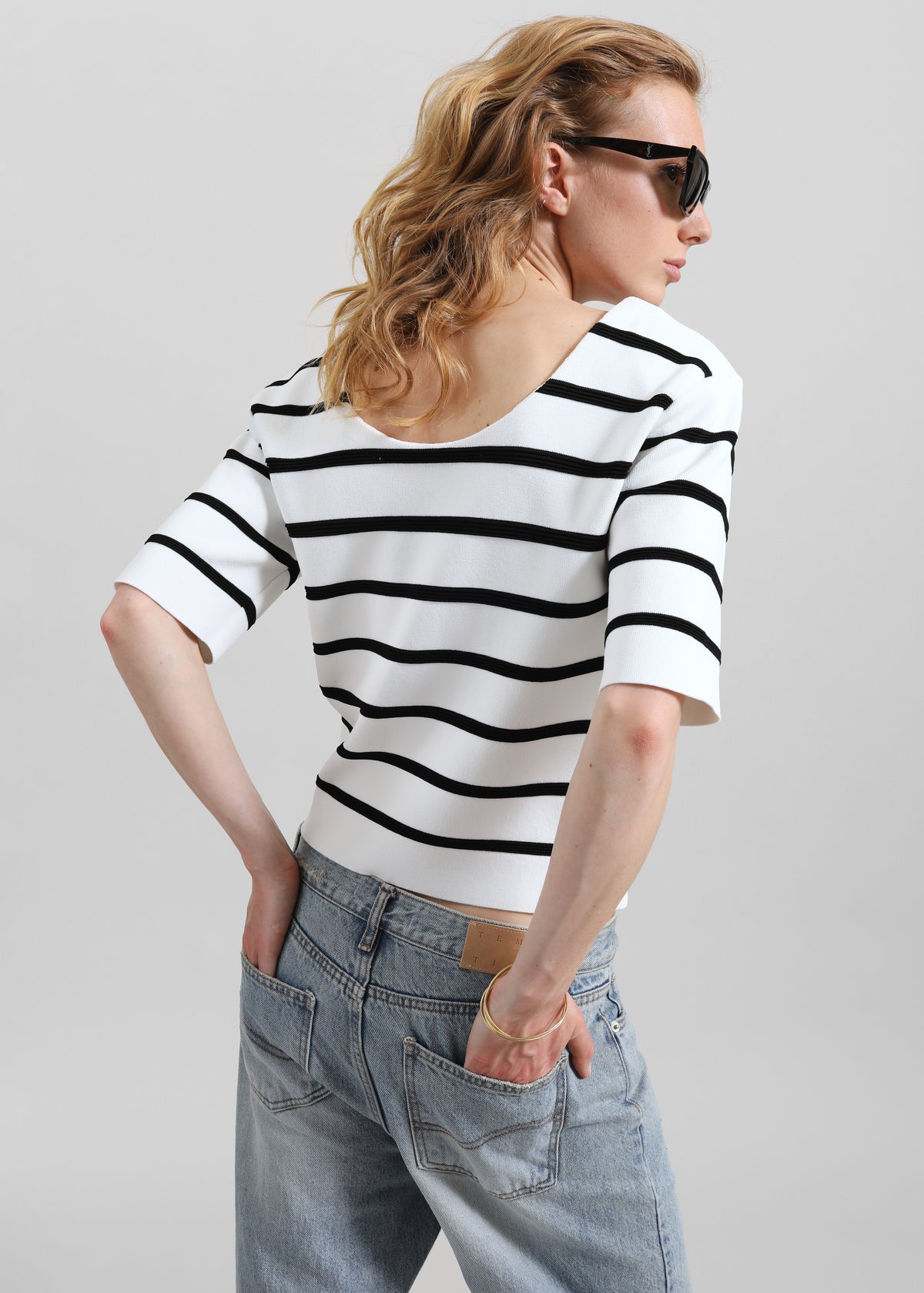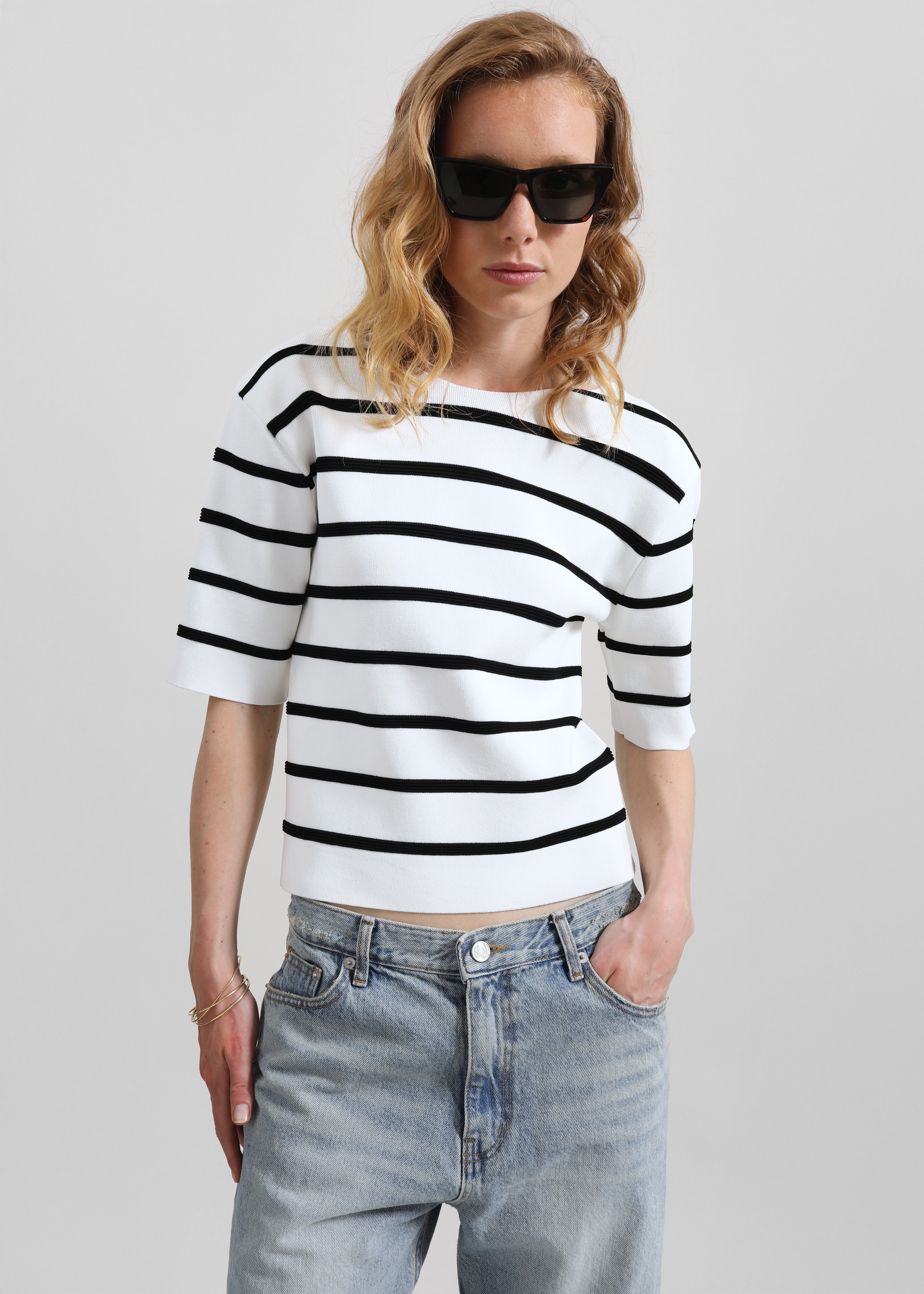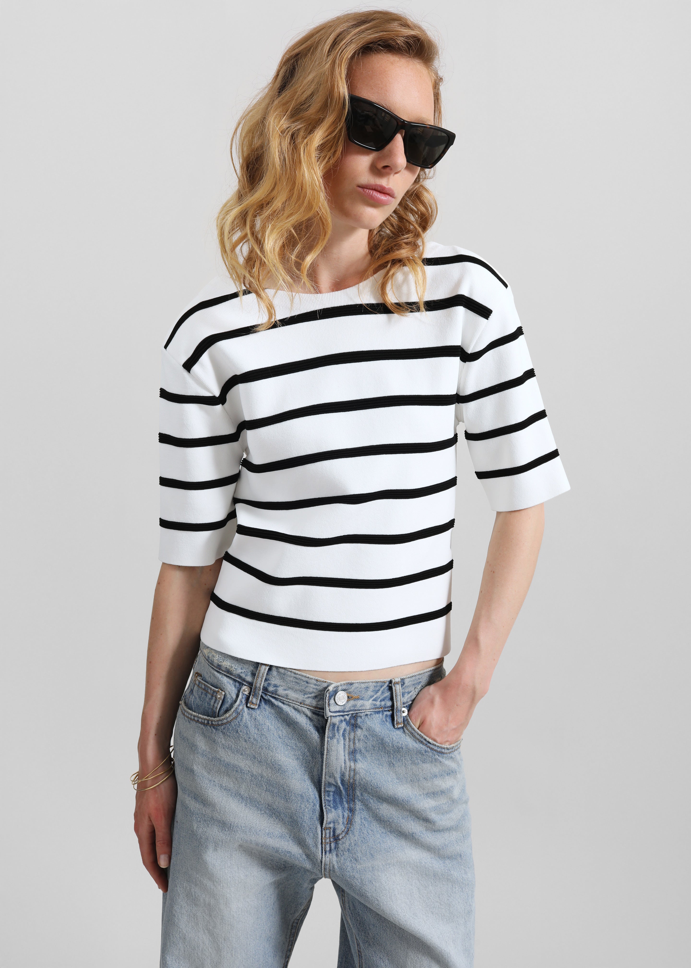 Braye Padded Knit Top - White/Black Stripe