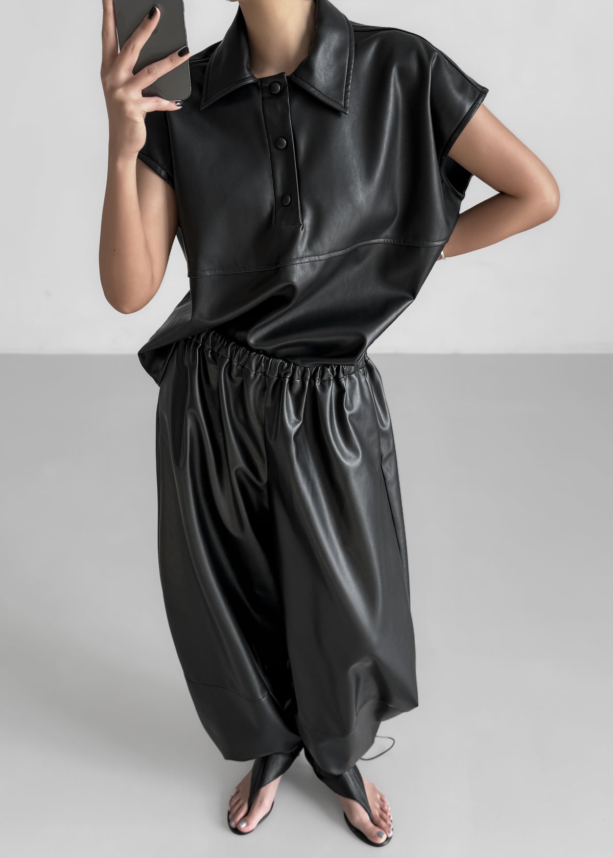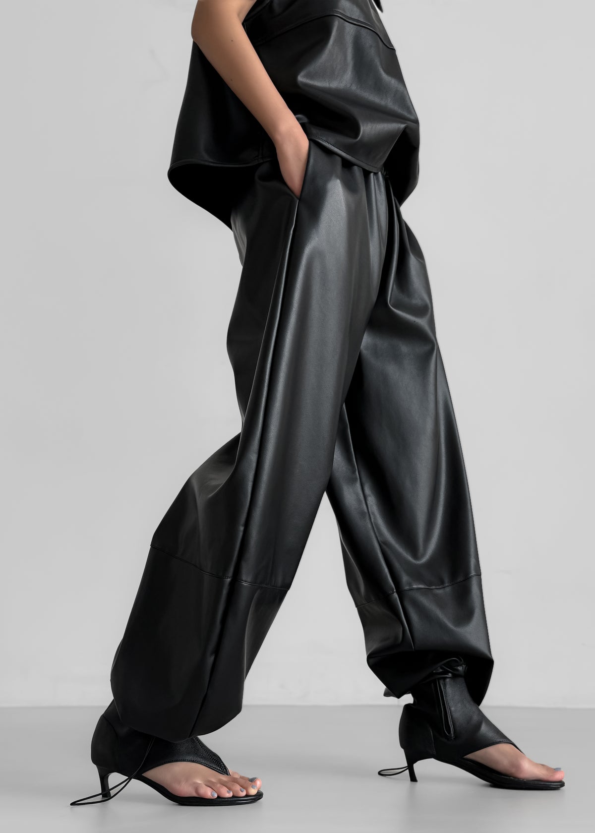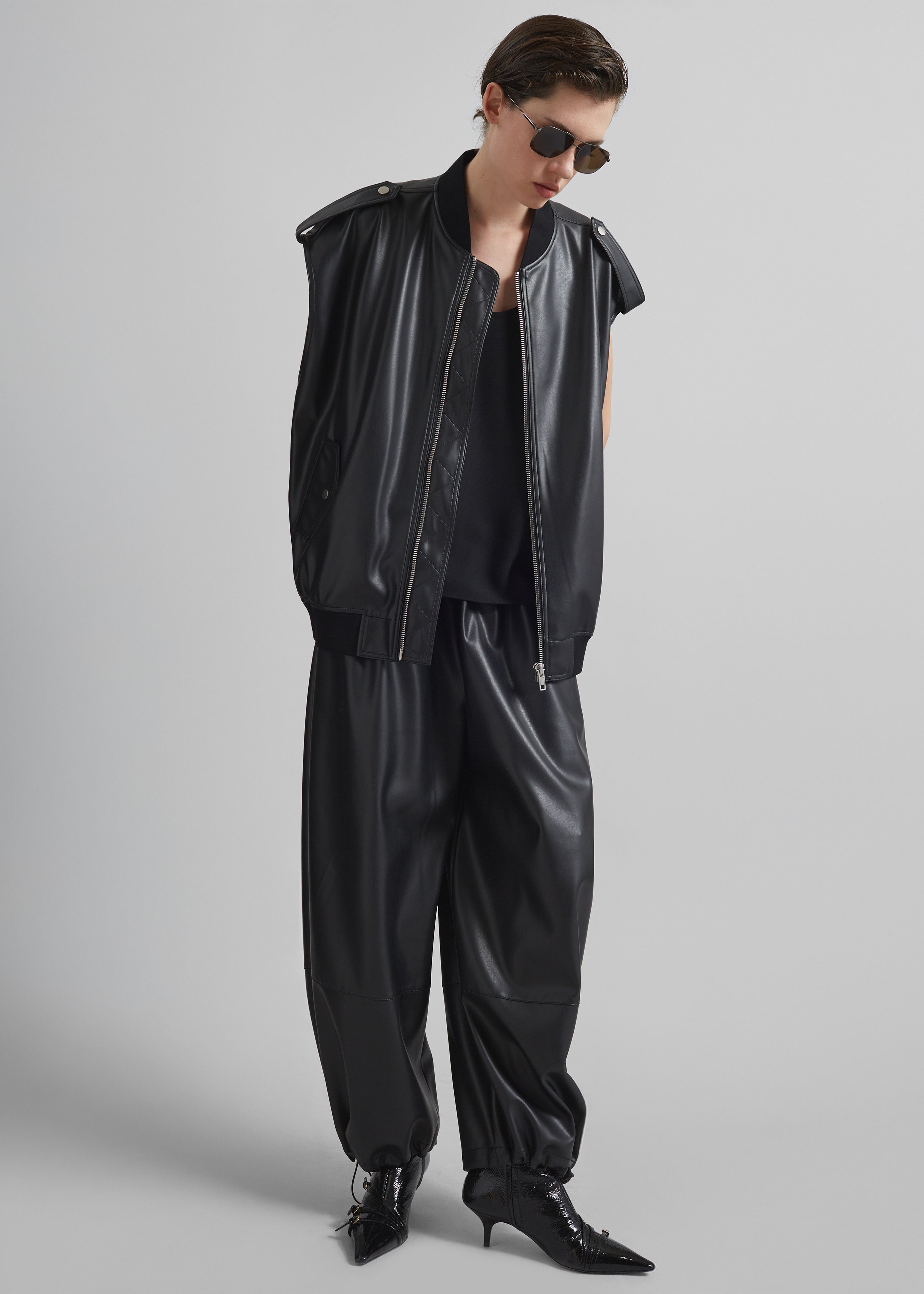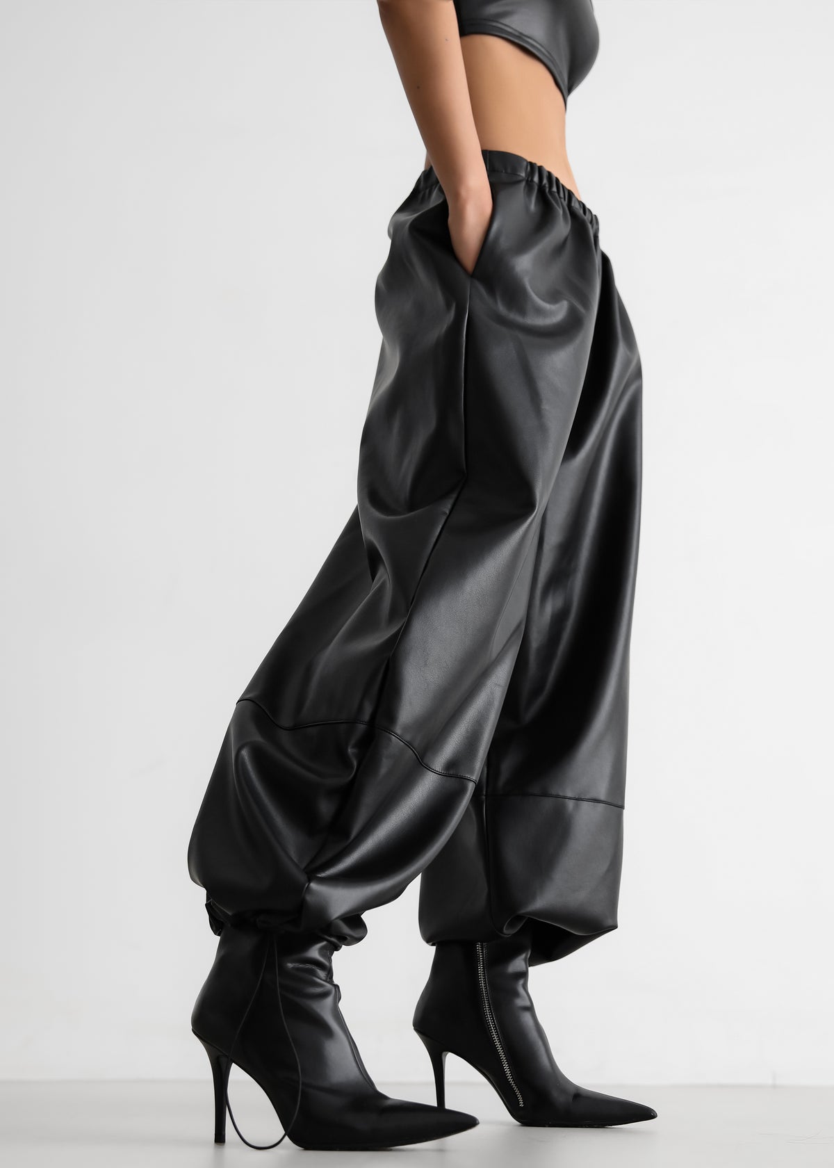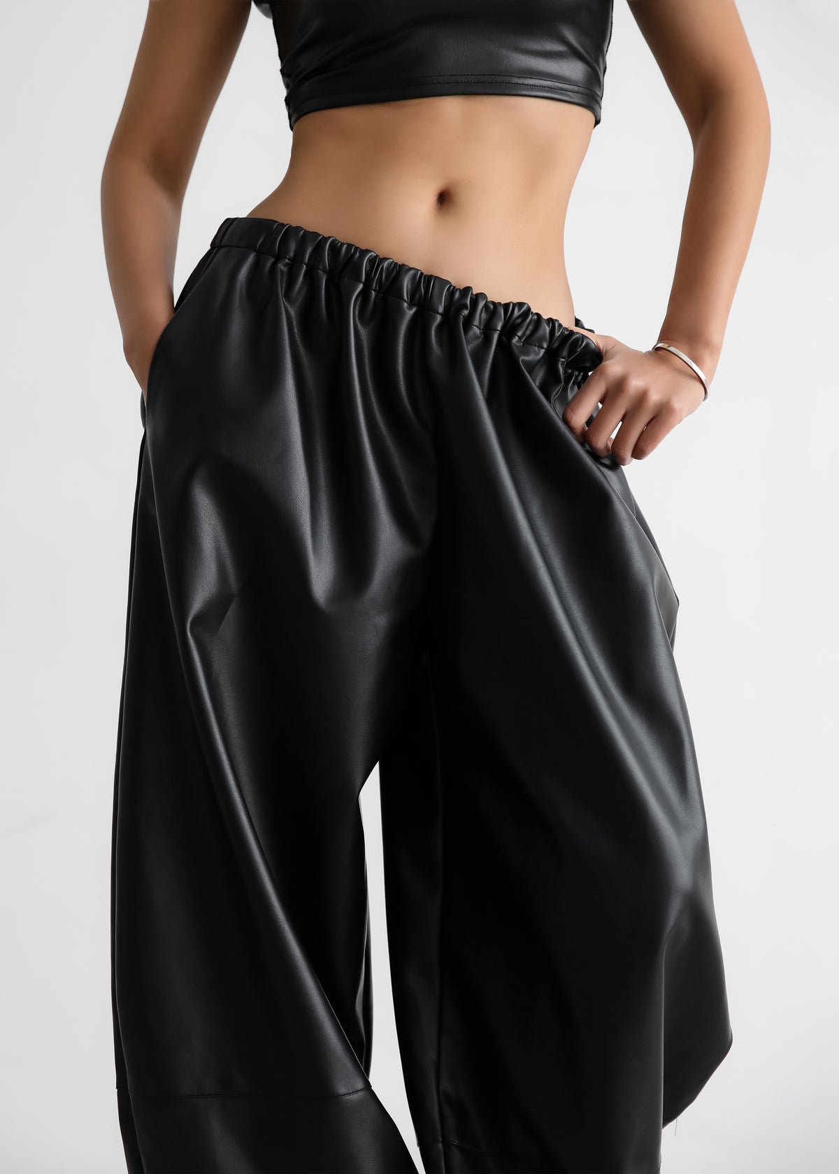 Briar Faux Leather Balloon Pants - Black