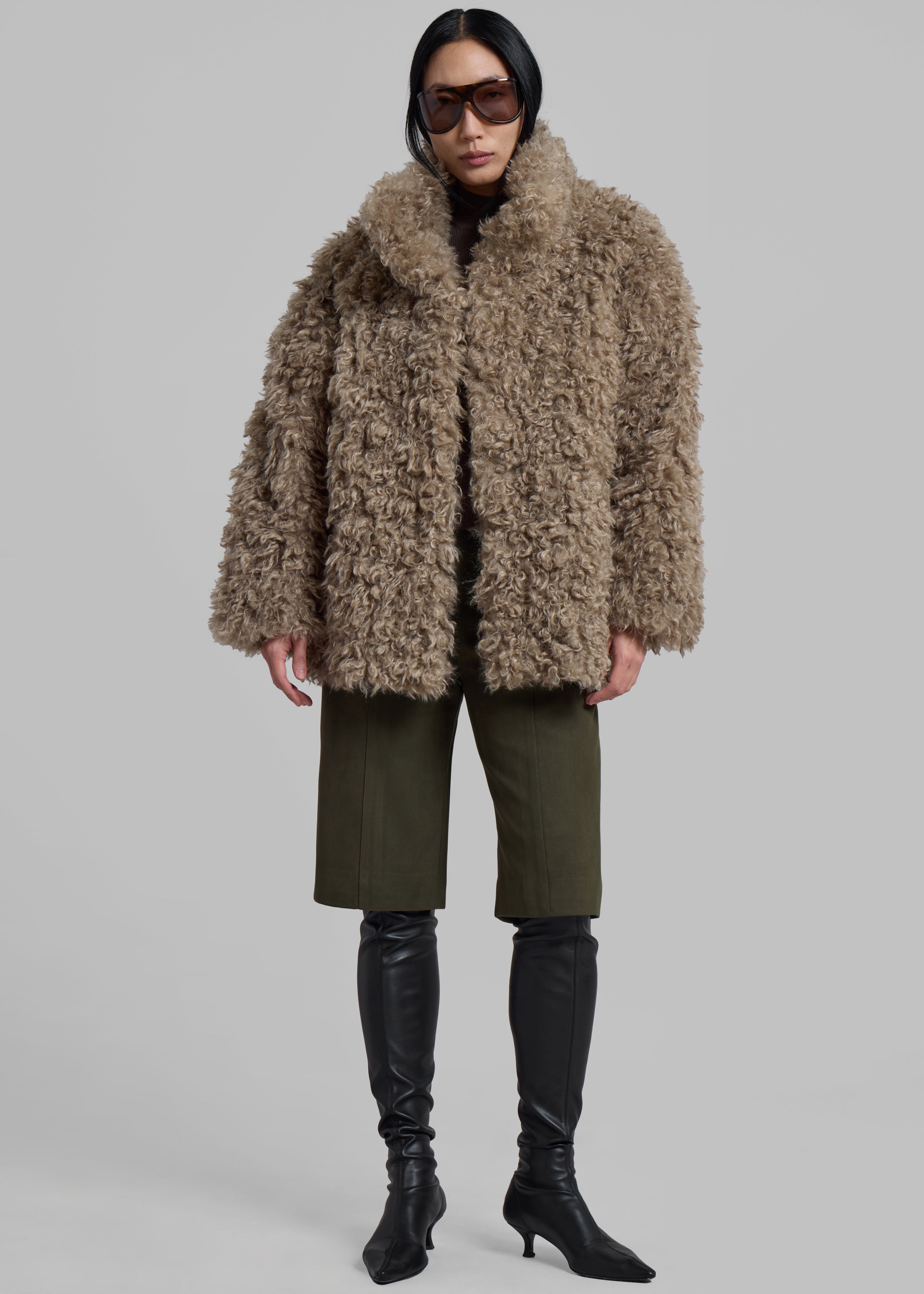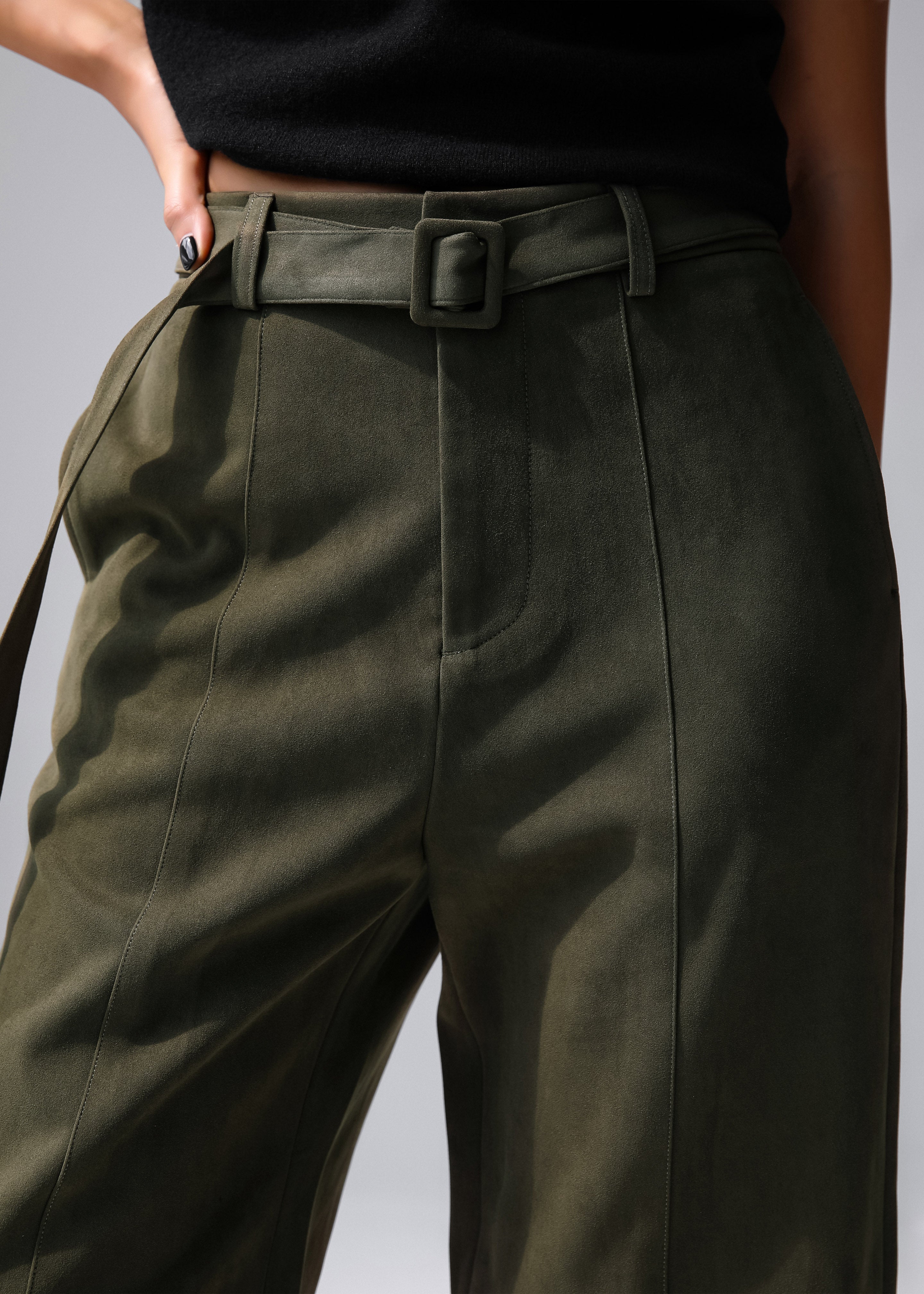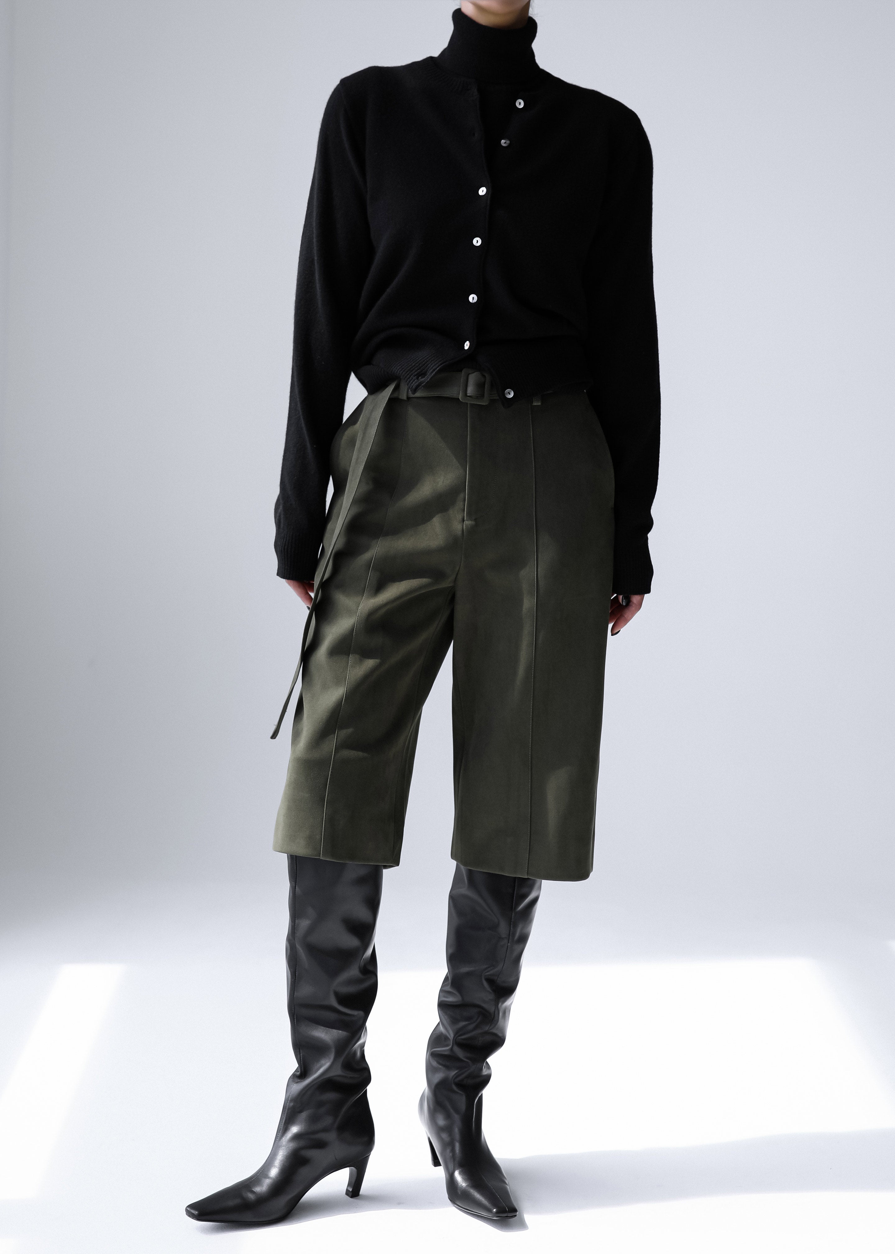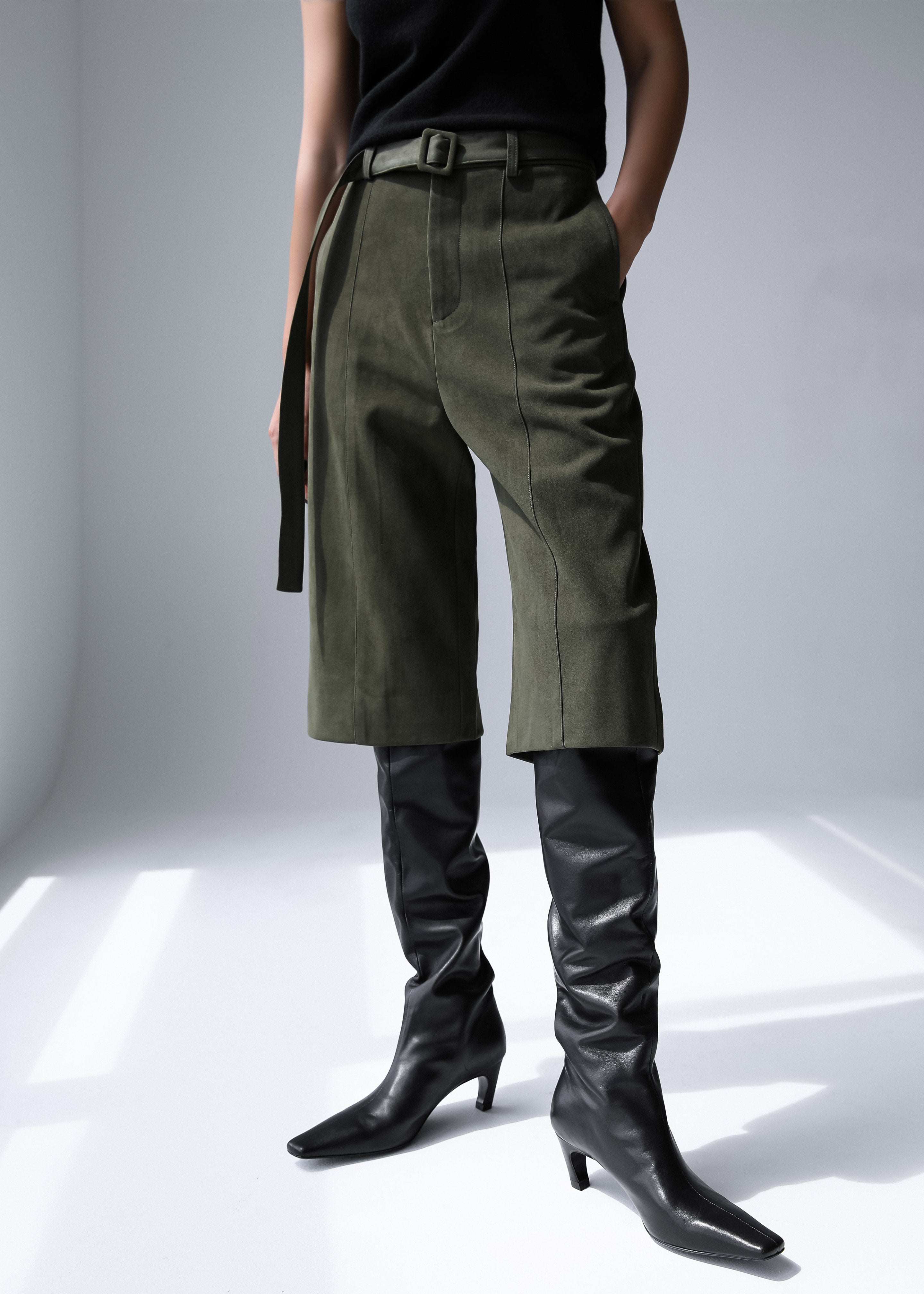 Cambria Faux Suede Bermuda Shorts - Khaki