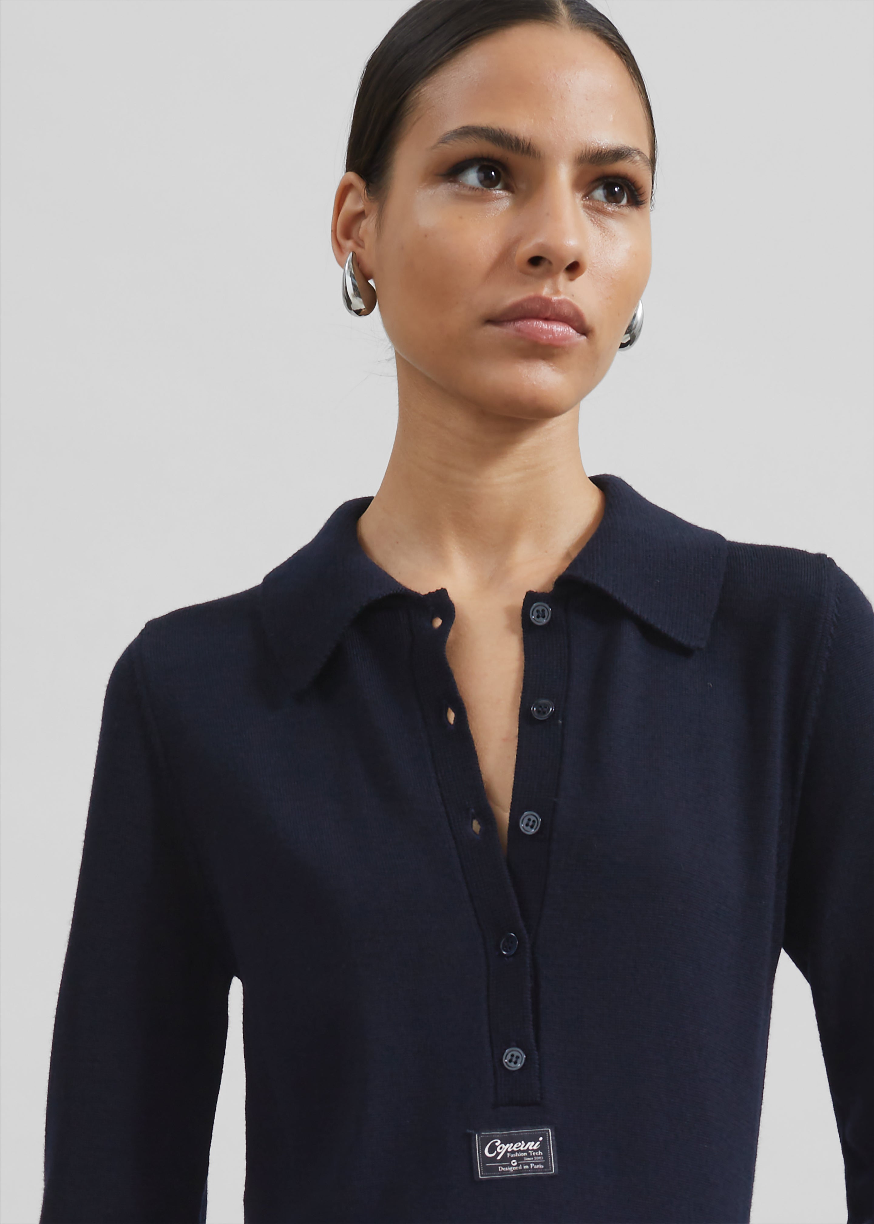 Logo patch below neckline
