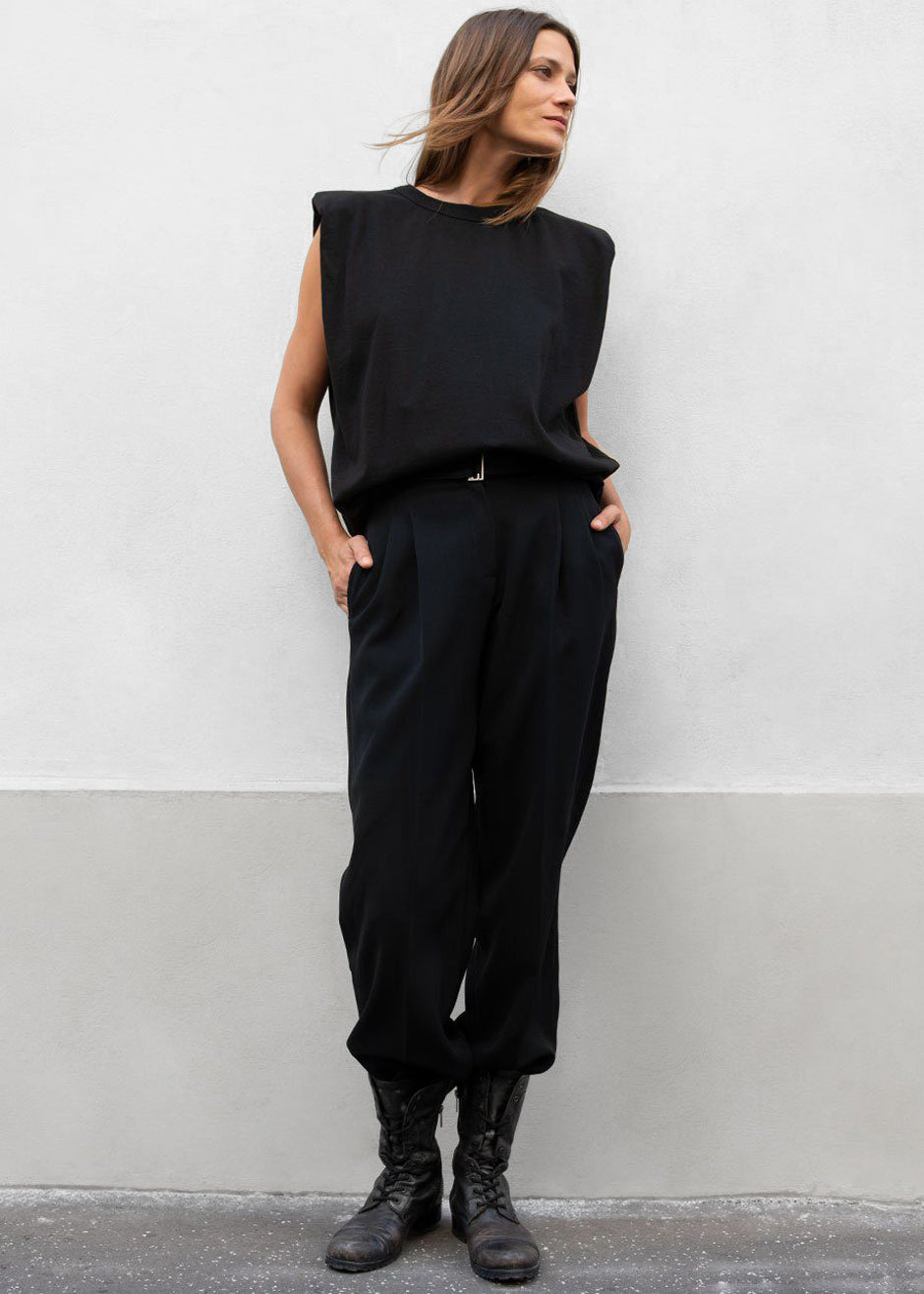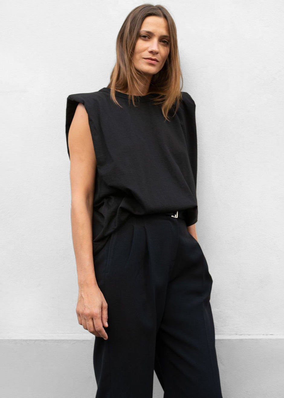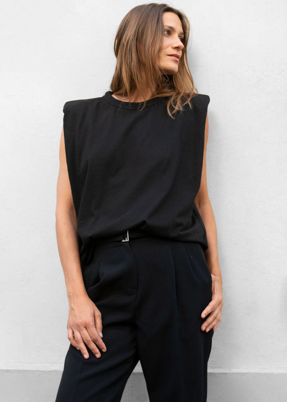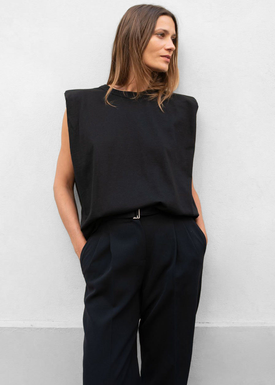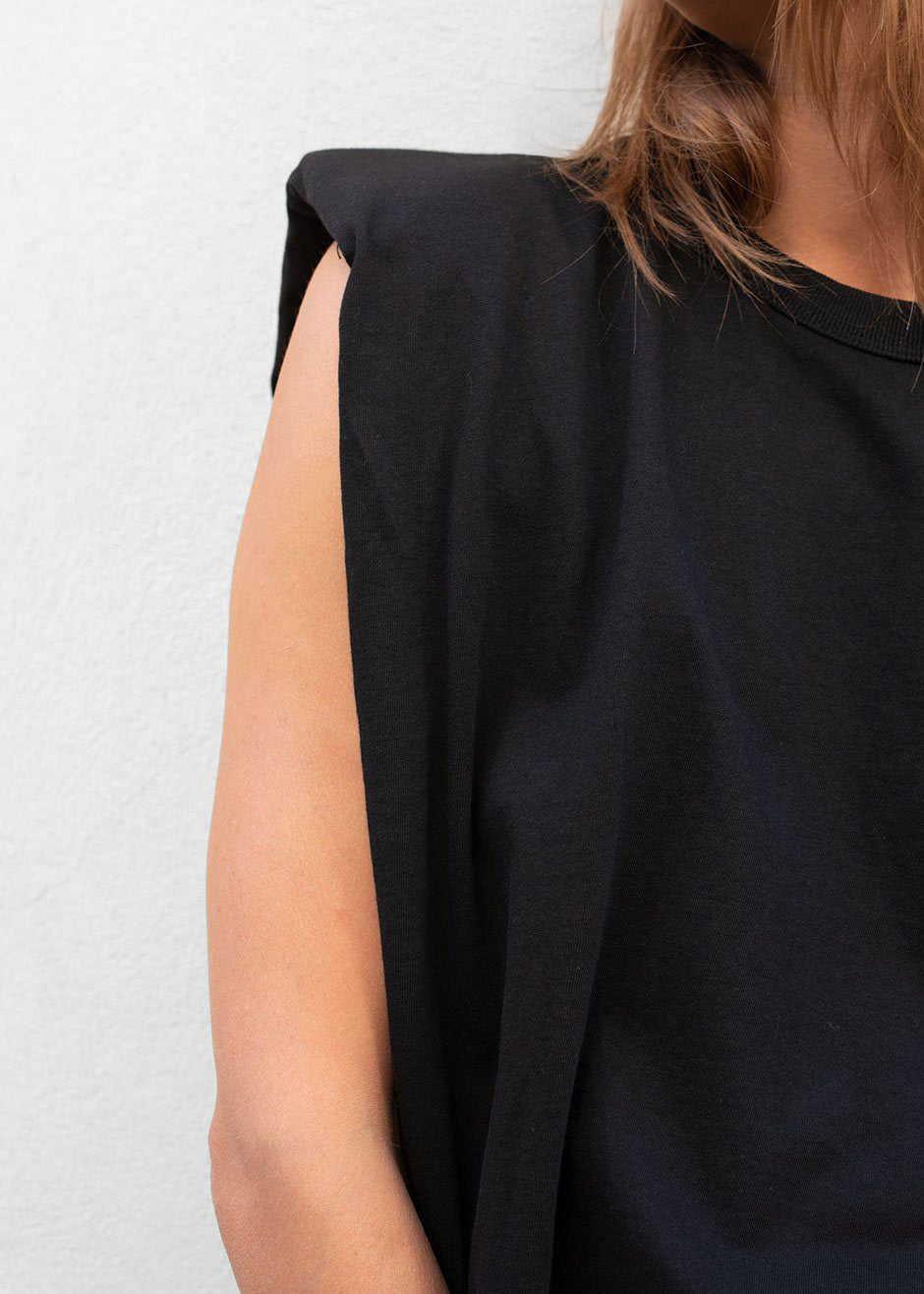 Eva Padded Shoulder Muscle T-Shirt - Black