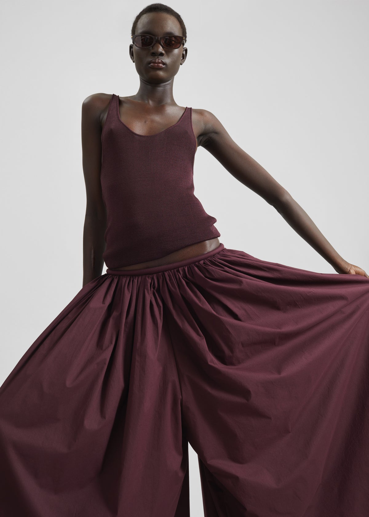 Gaeta Wide Corded Waistband Culottes - Burgundy