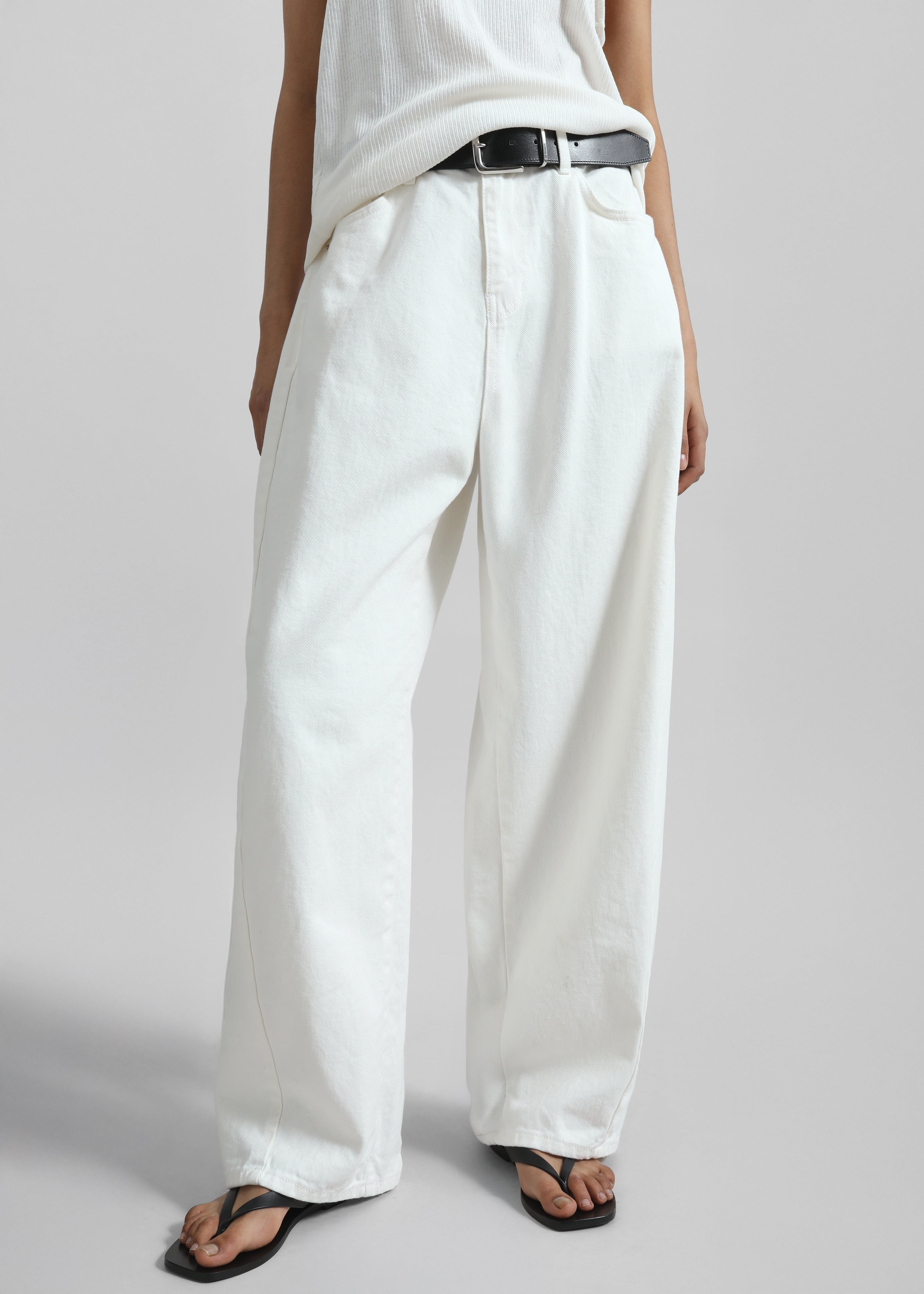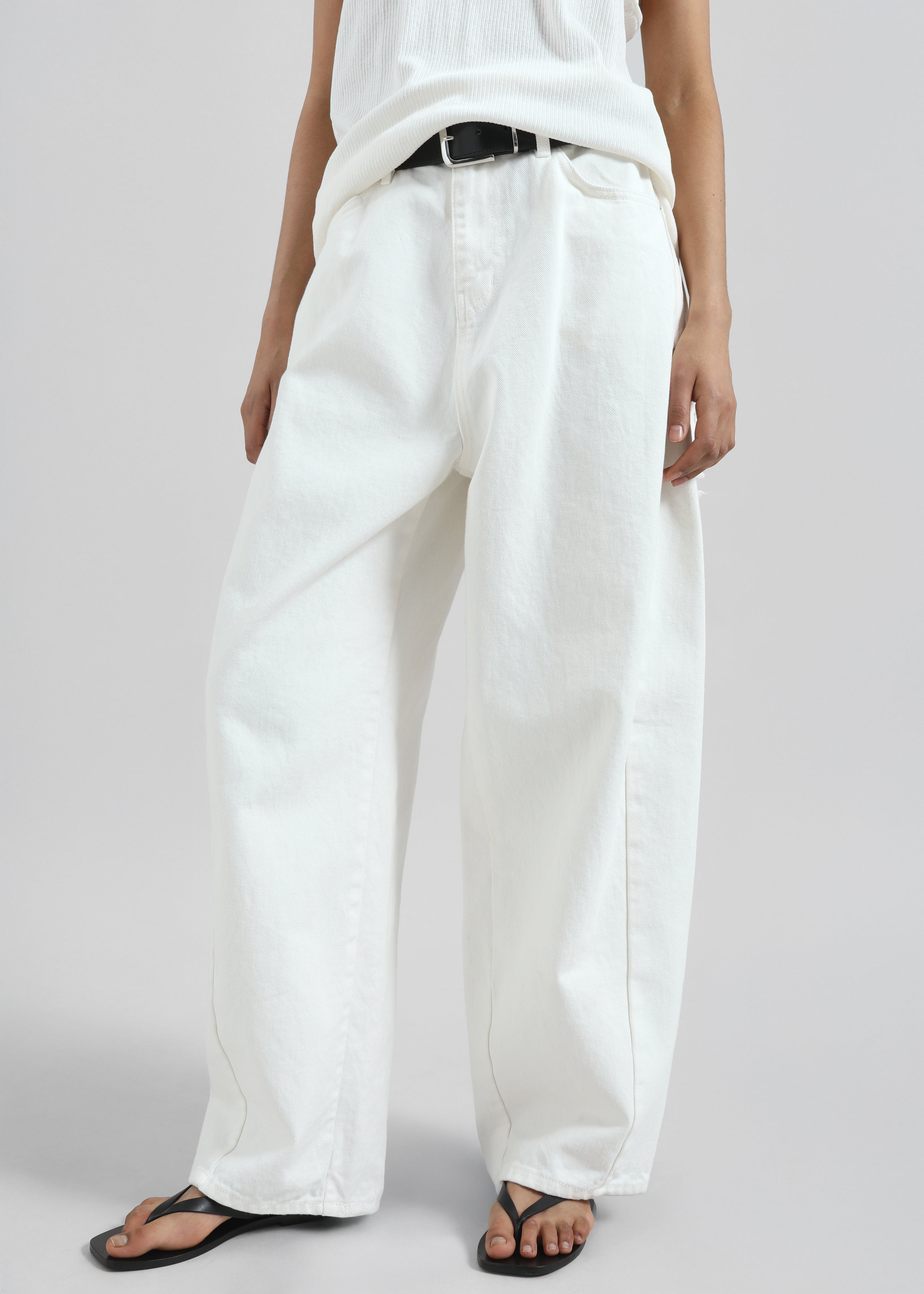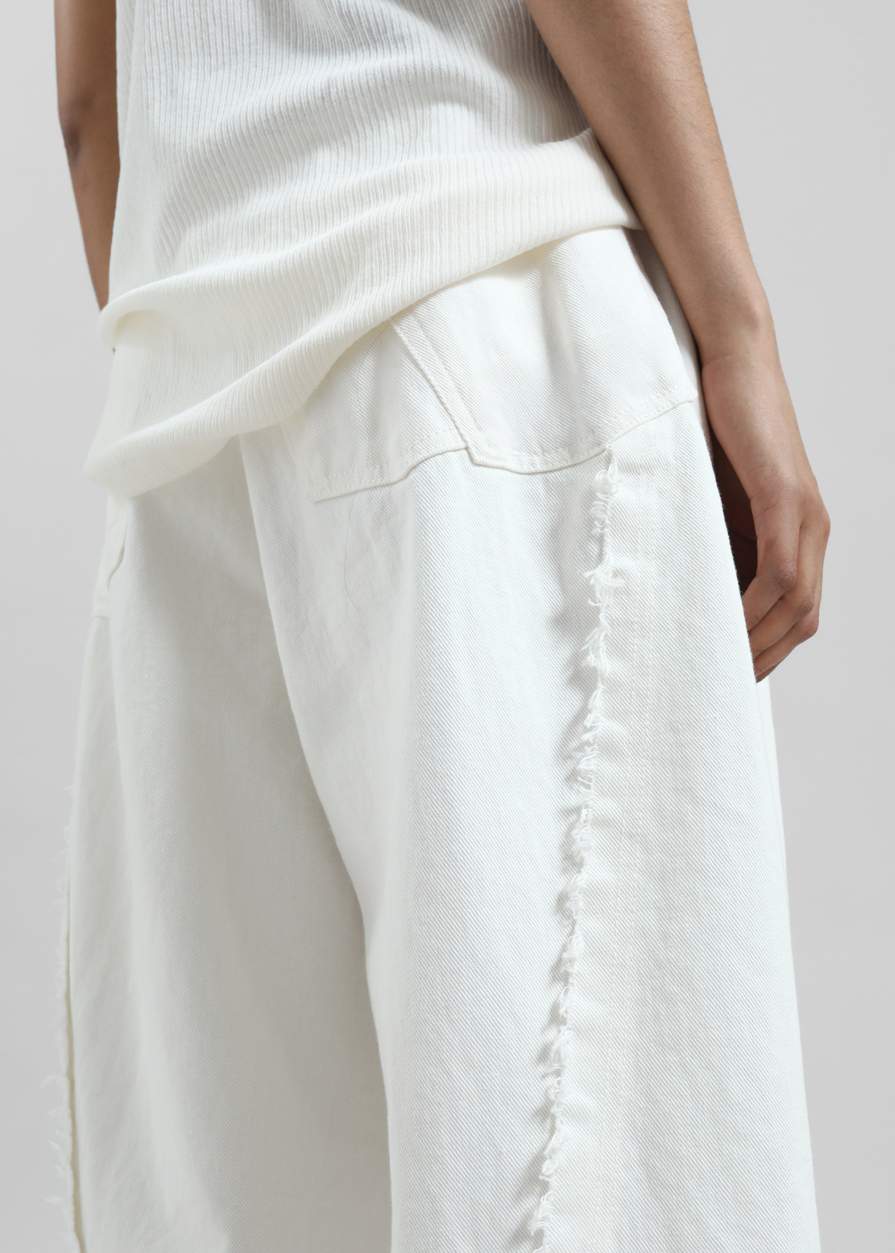 Halgar Frayed Seam Barrel-Leg Jeans - White