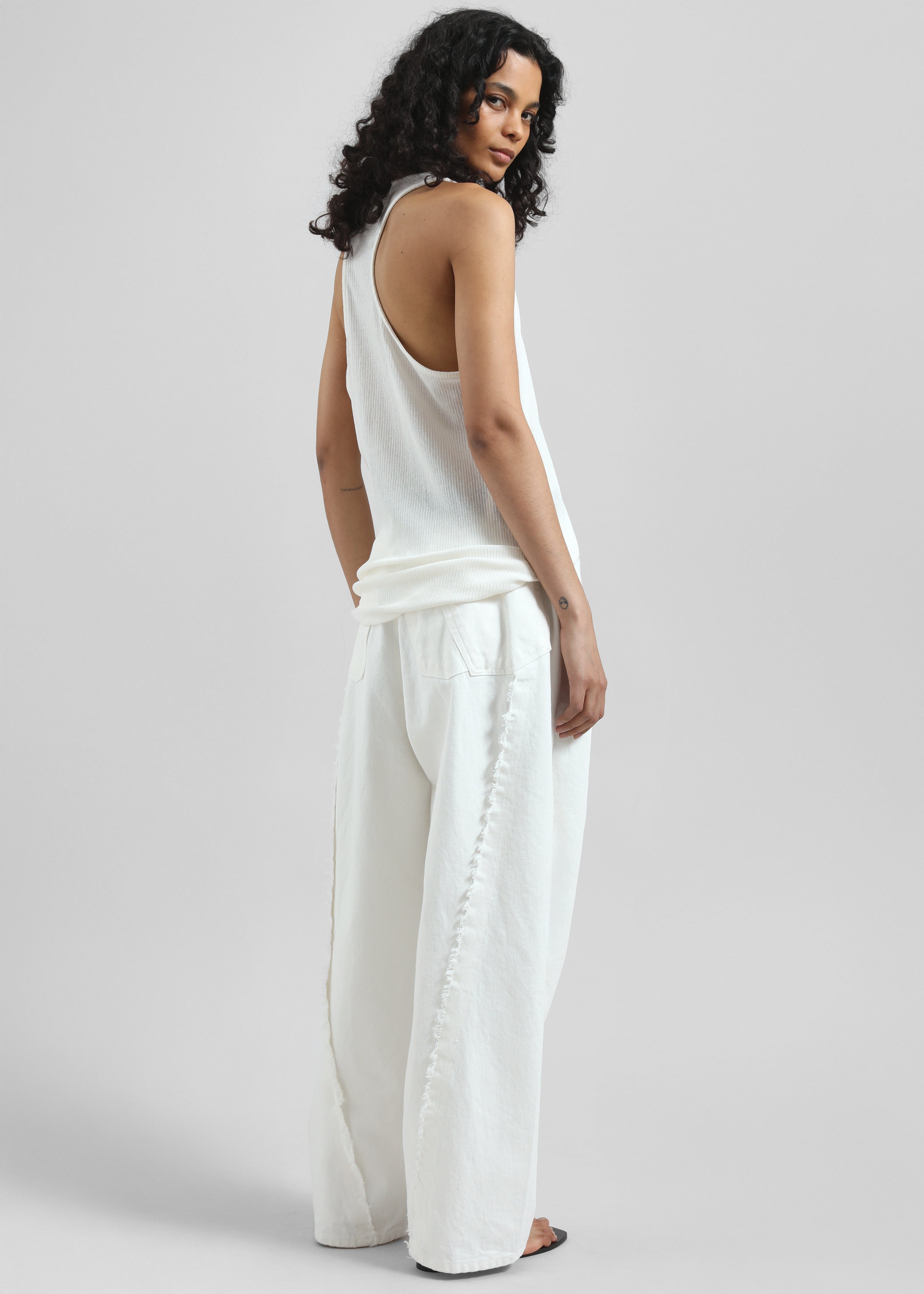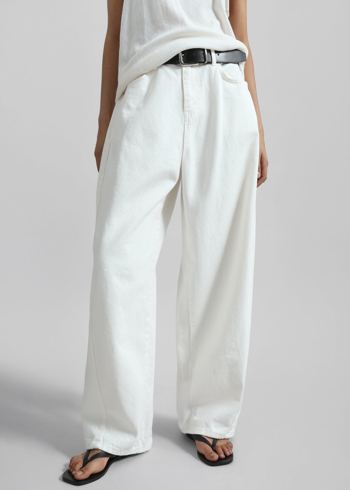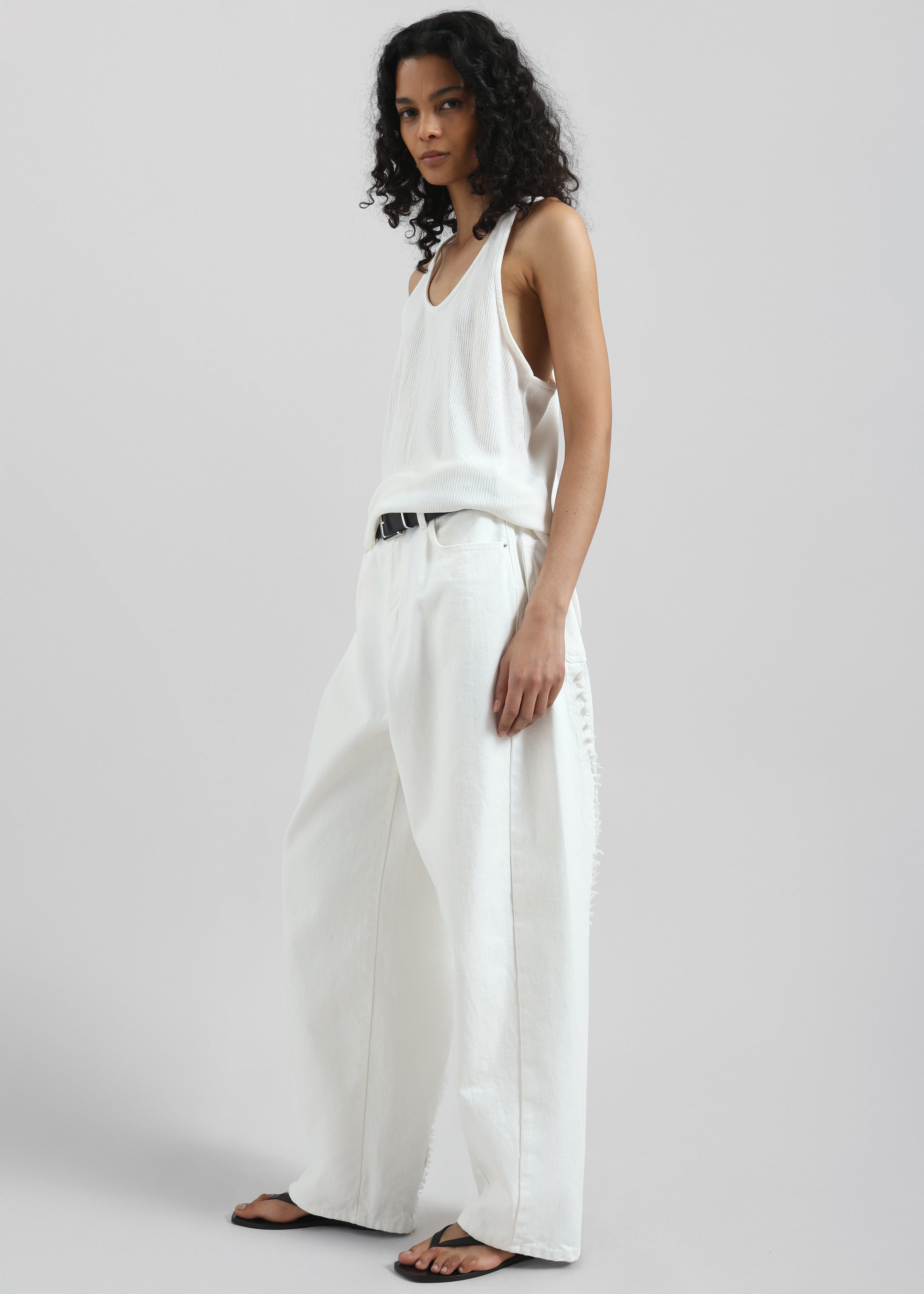 Halgar Frayed Seam Barrel-Leg Jeans - White