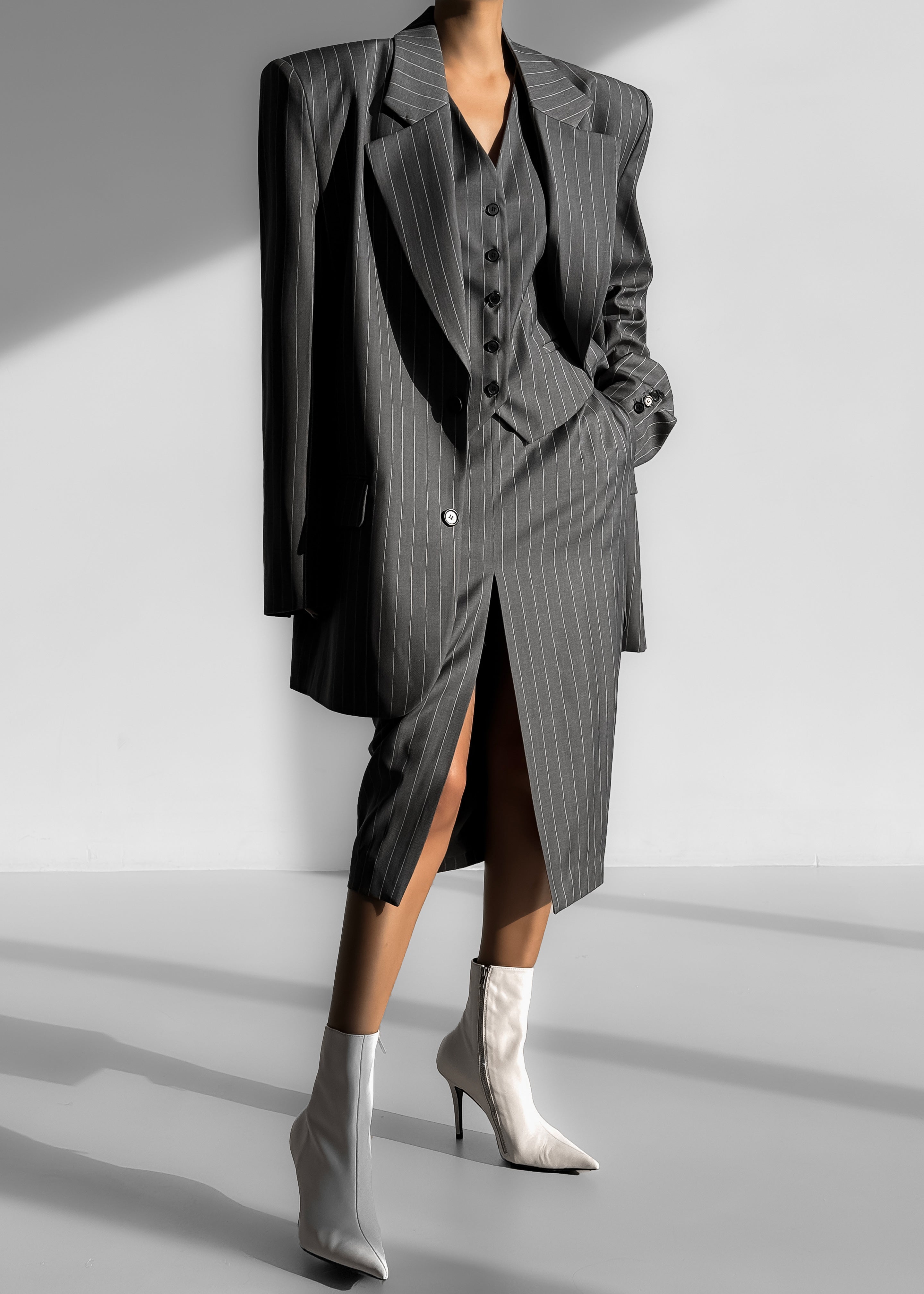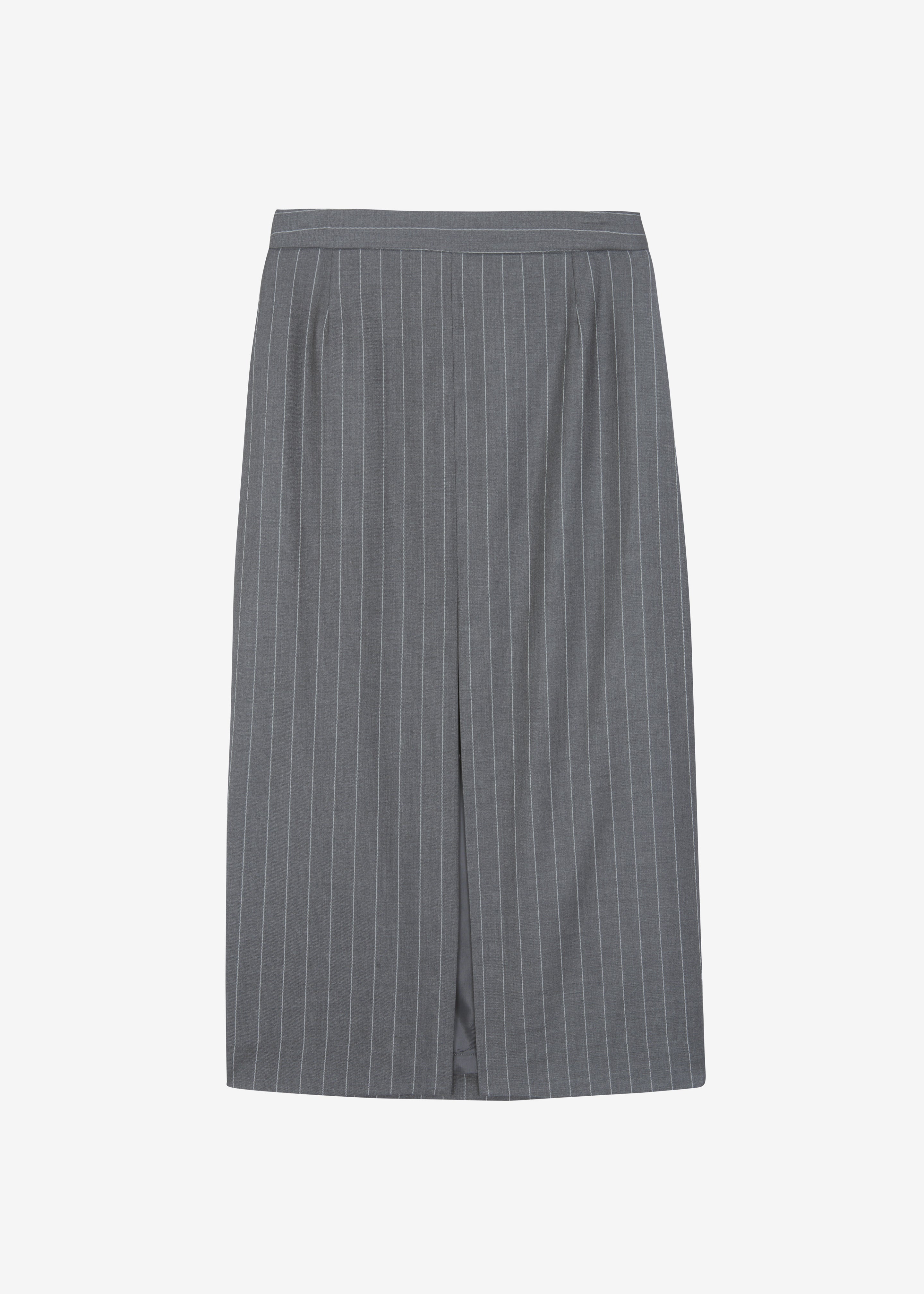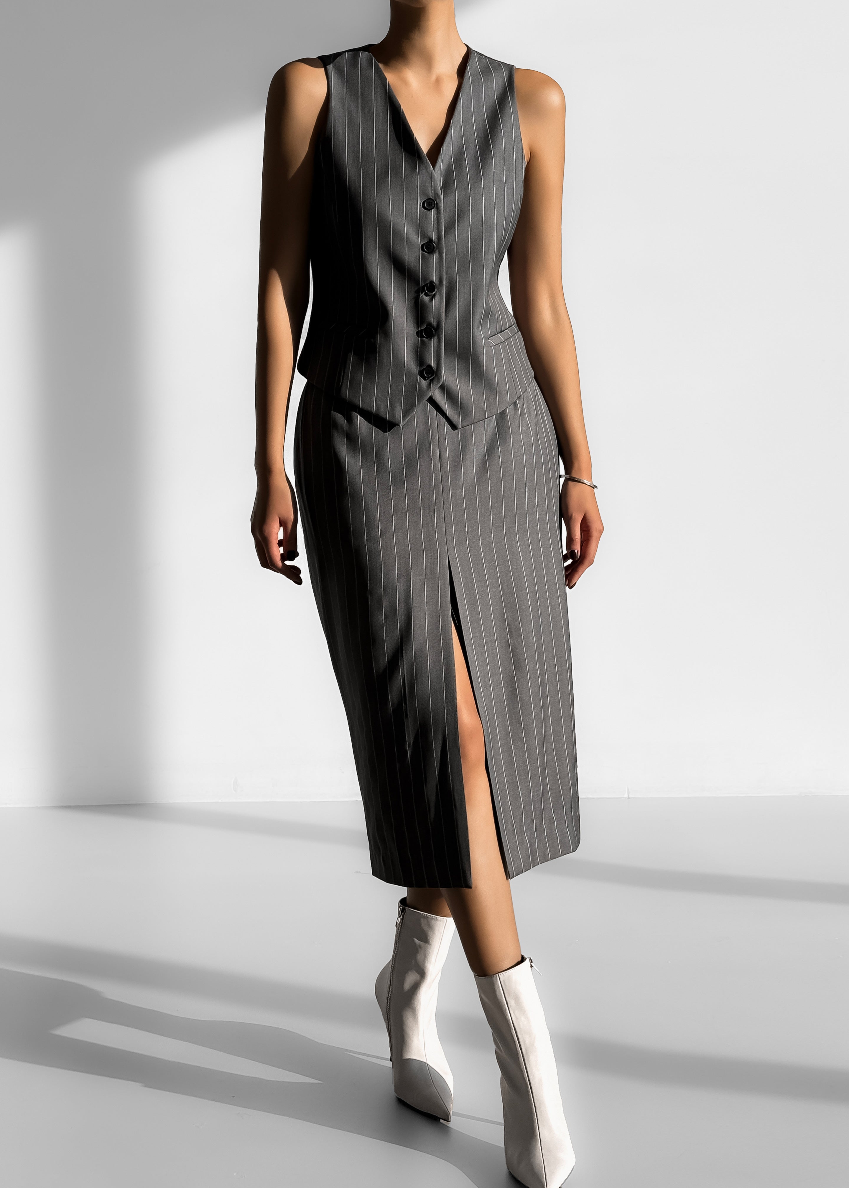 Holland Midi Slit Skirt - Charcoal/White Pinstripe