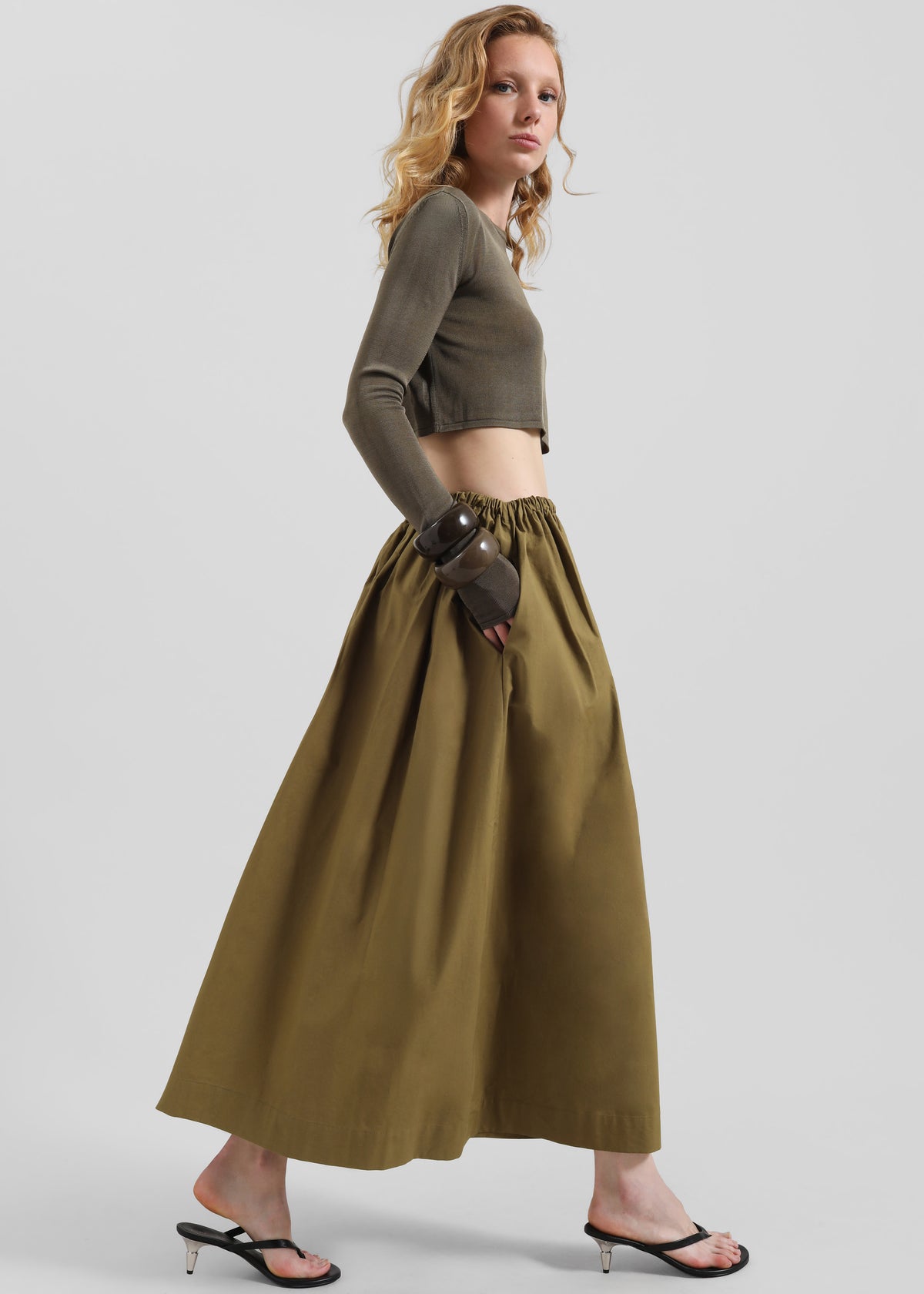 Jalev Gathered Cotton Skirt - Martini Olive