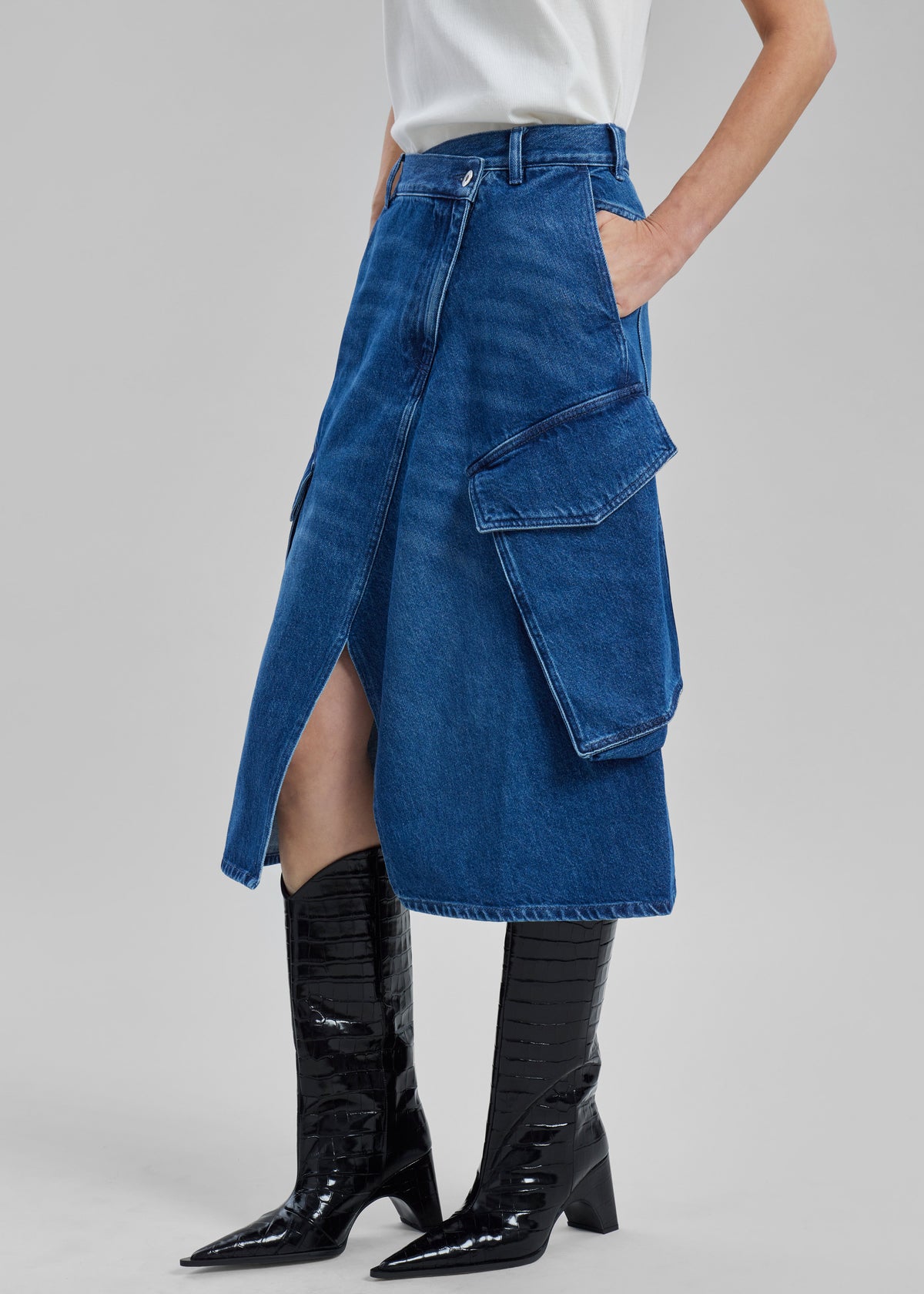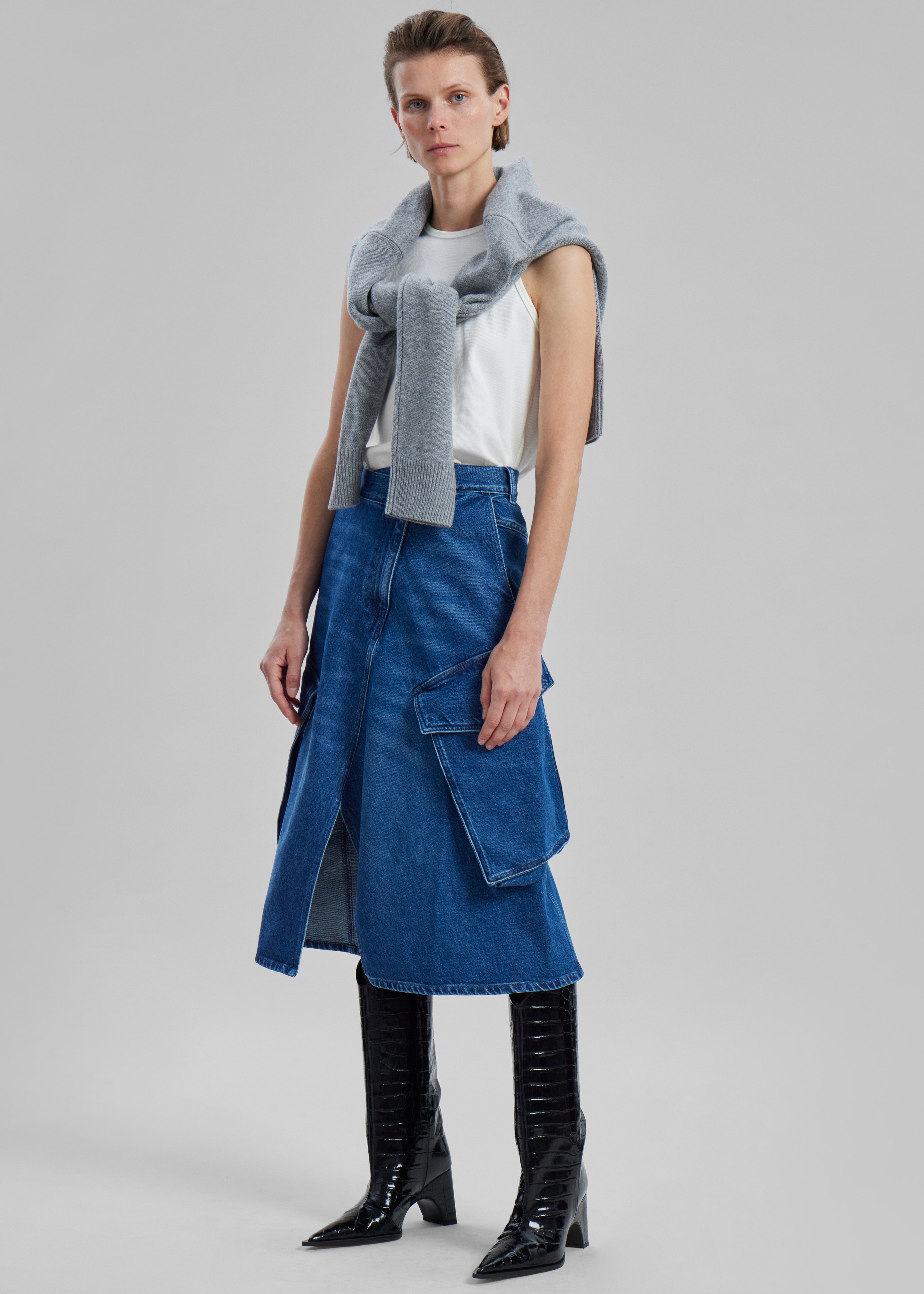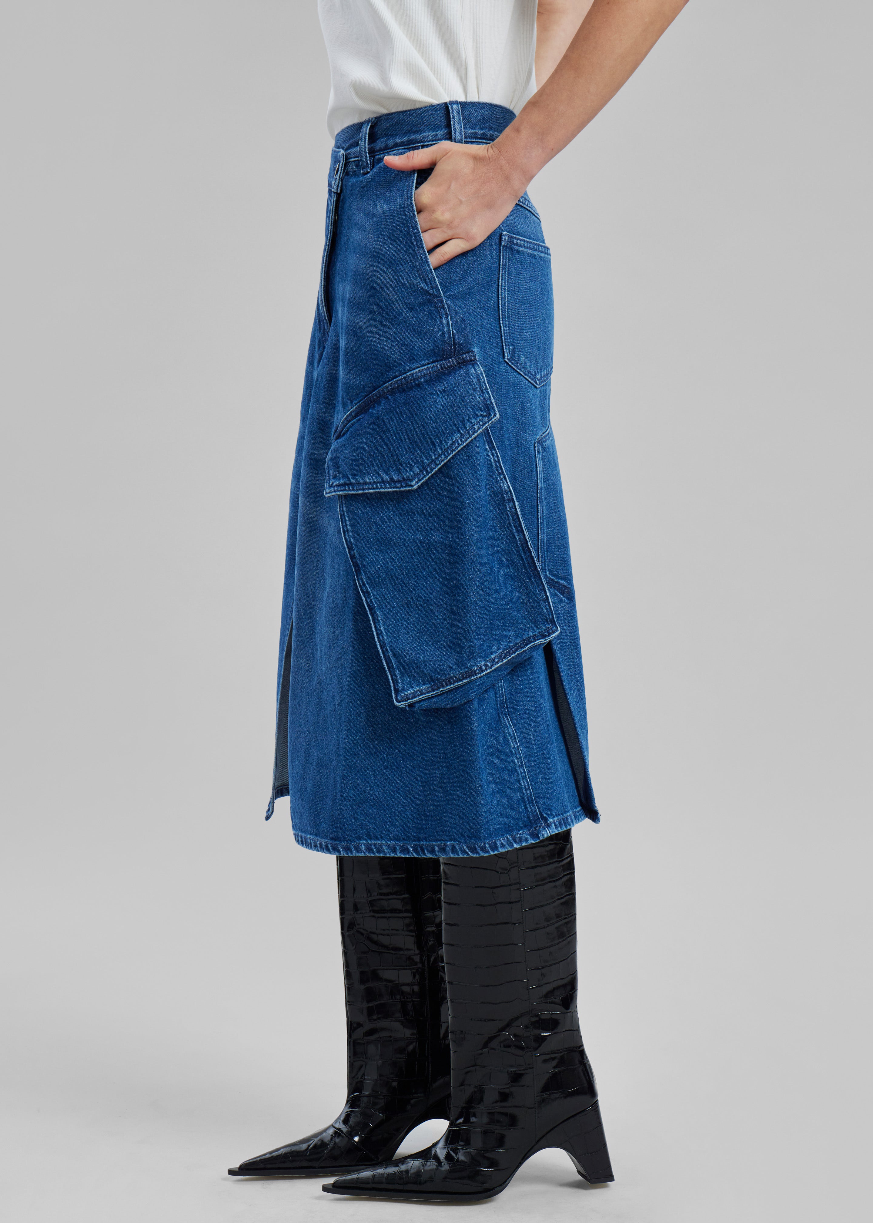 JW Anderson Cargo Midi Denim Skirt - Blue