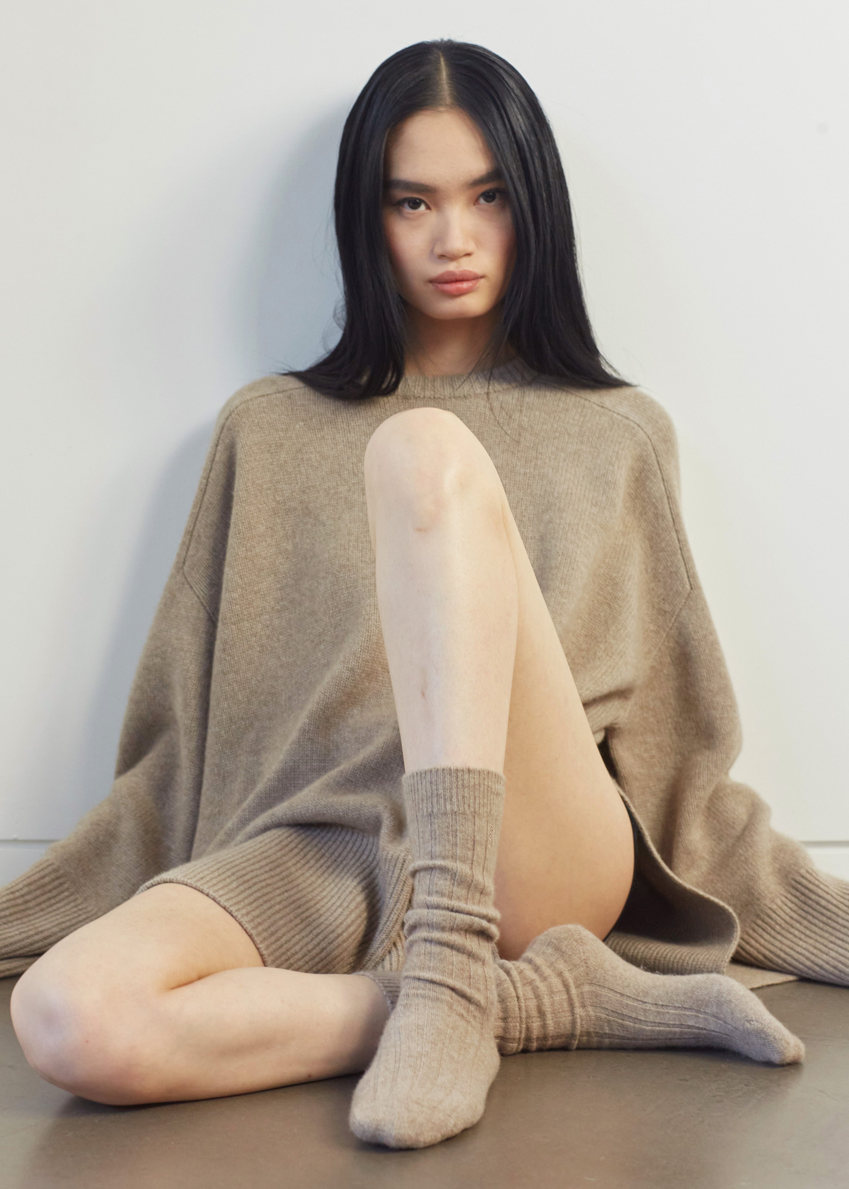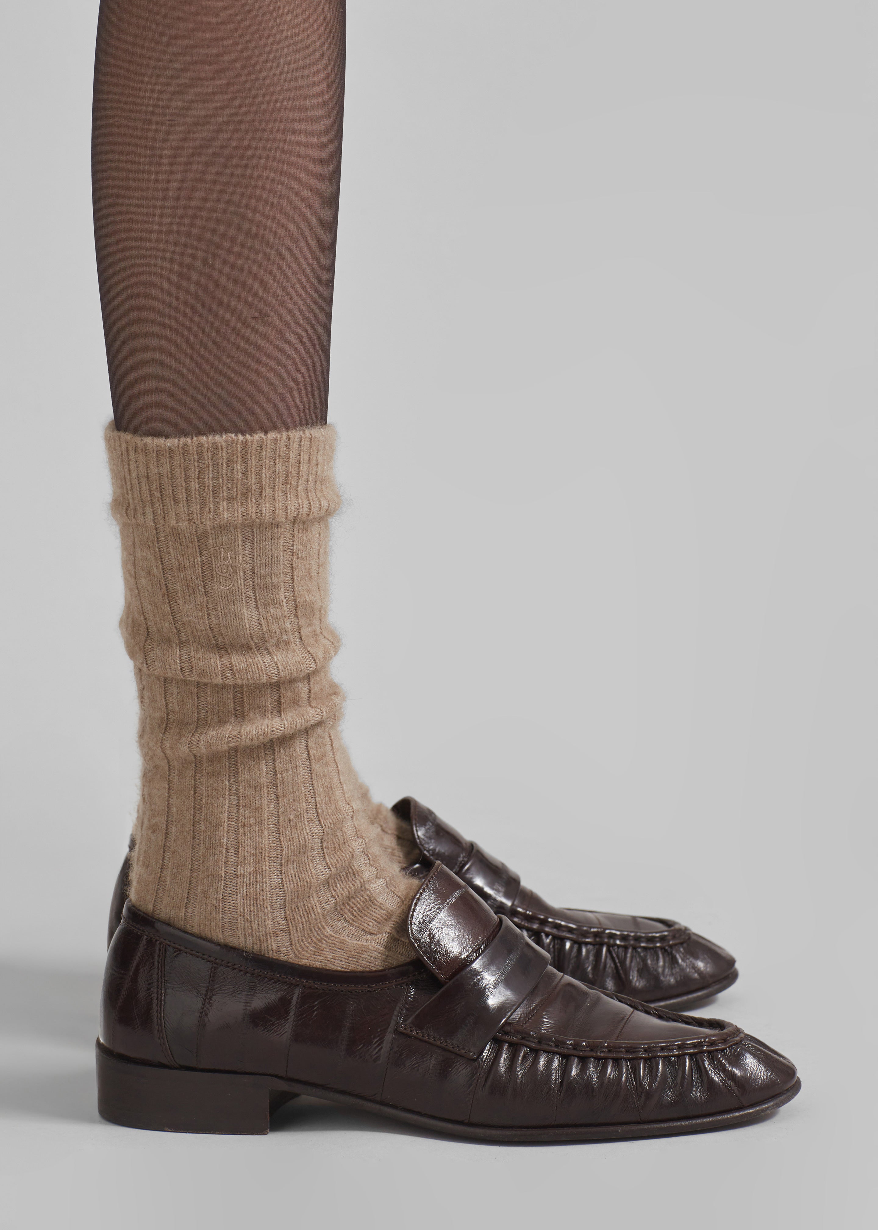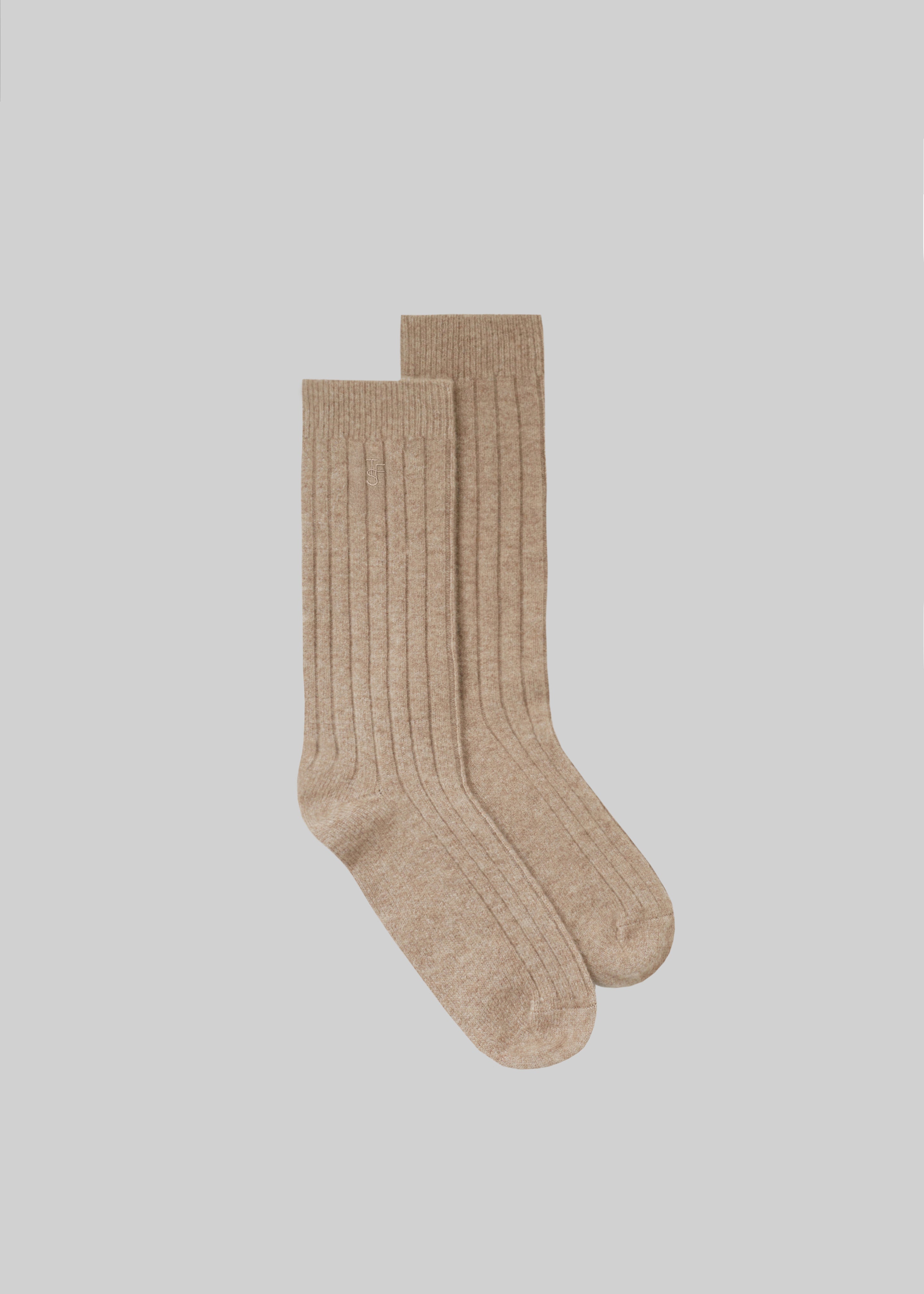 Kano Cashmere Ribbed Socks - Taupe