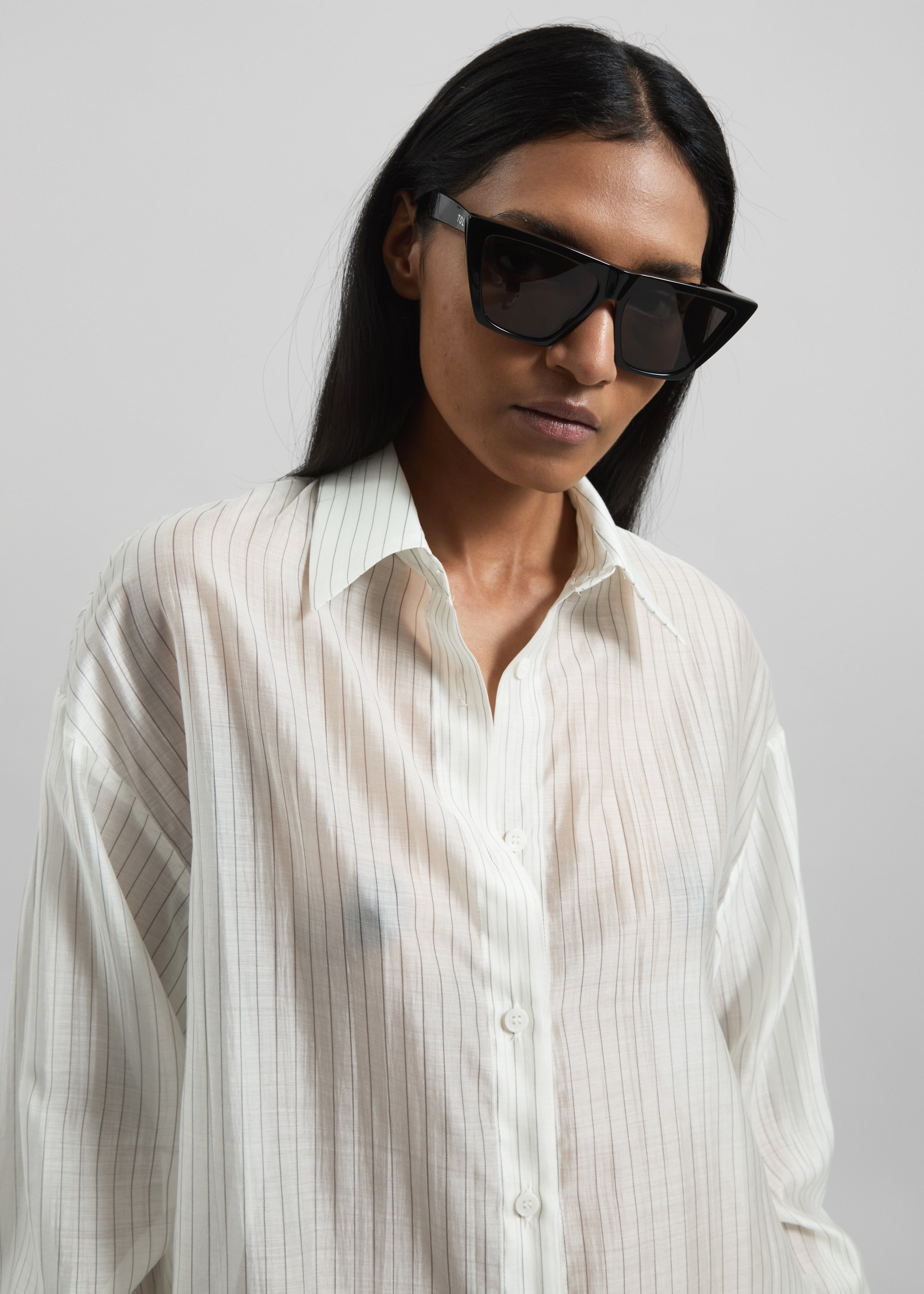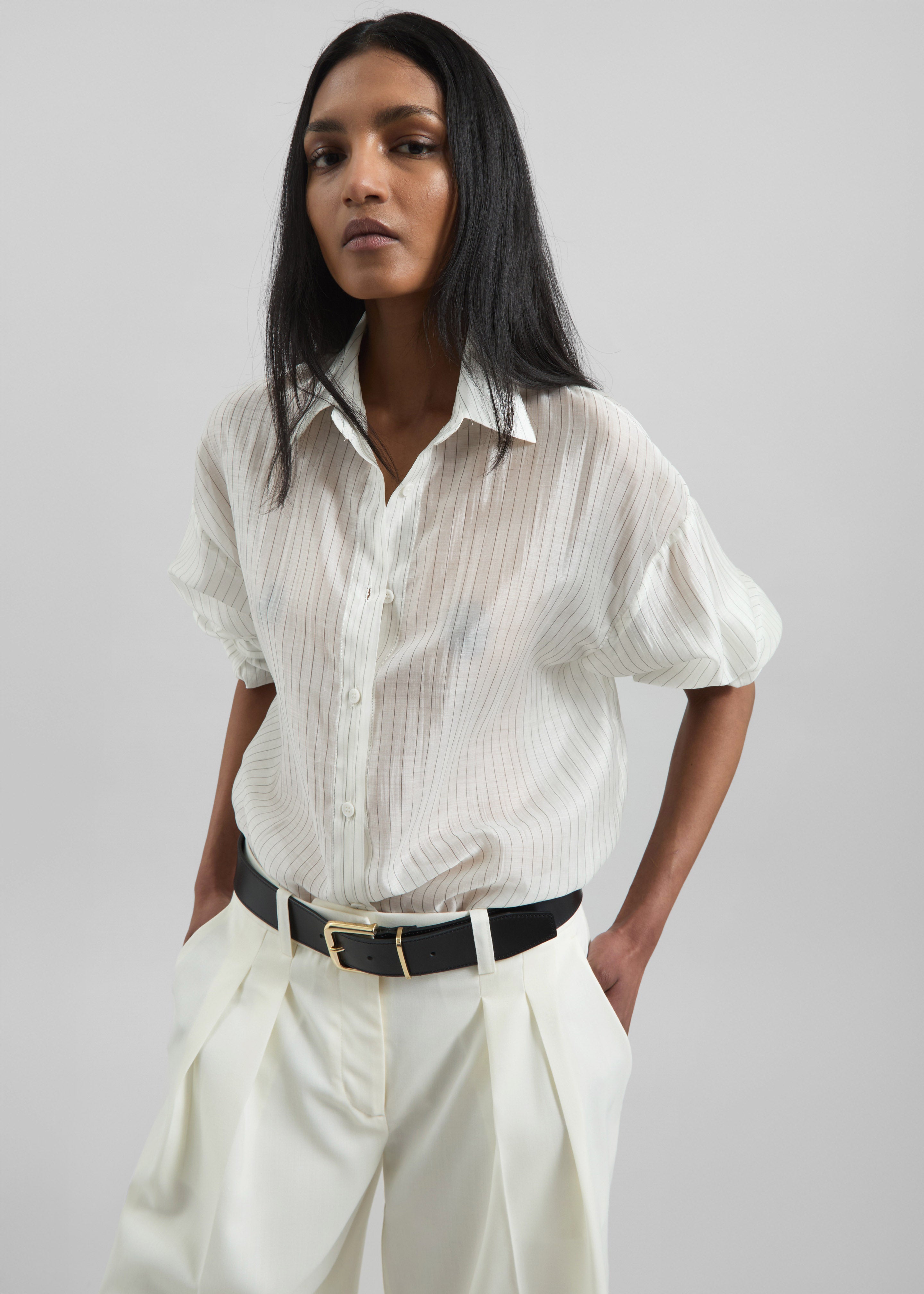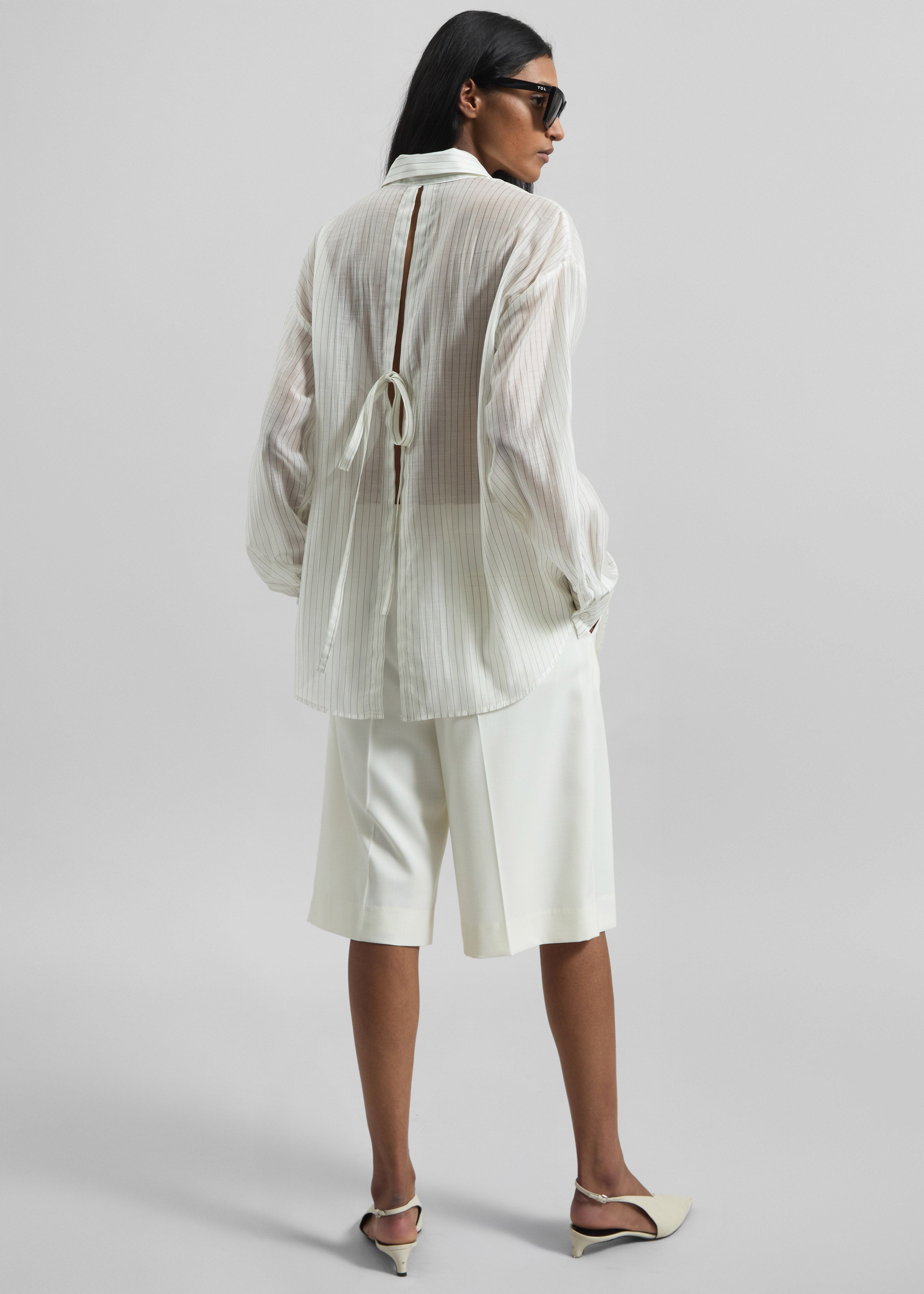 Kesin Open Back Shirt - White/Grey Stripe