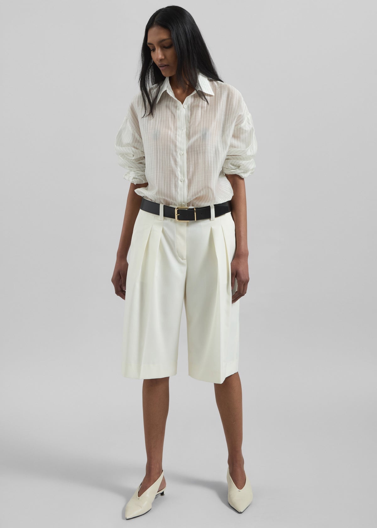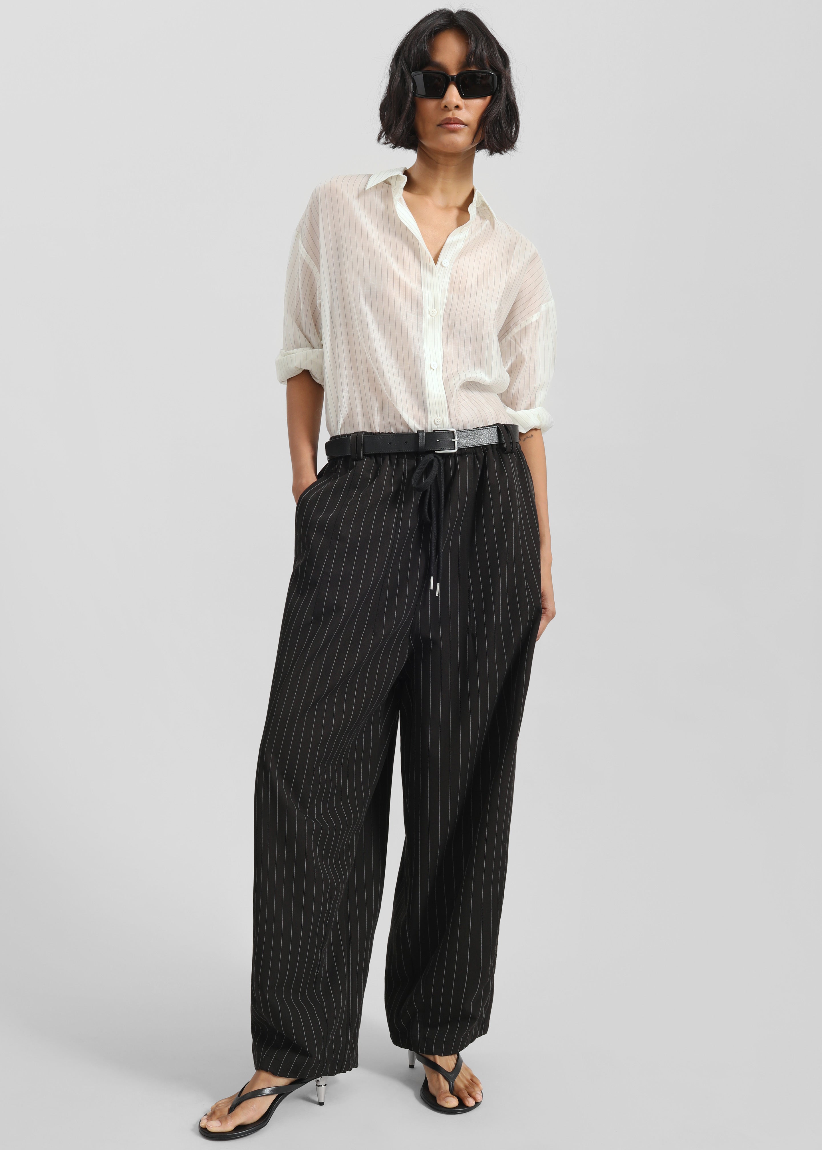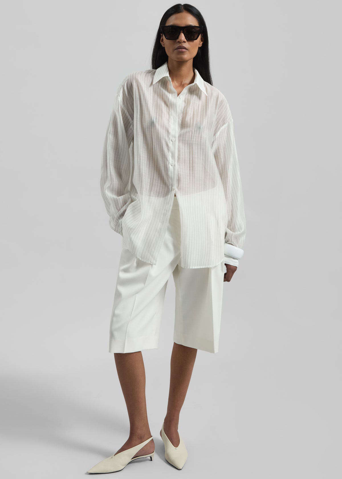 Kesin Open Back Shirt - White/Grey Stripe