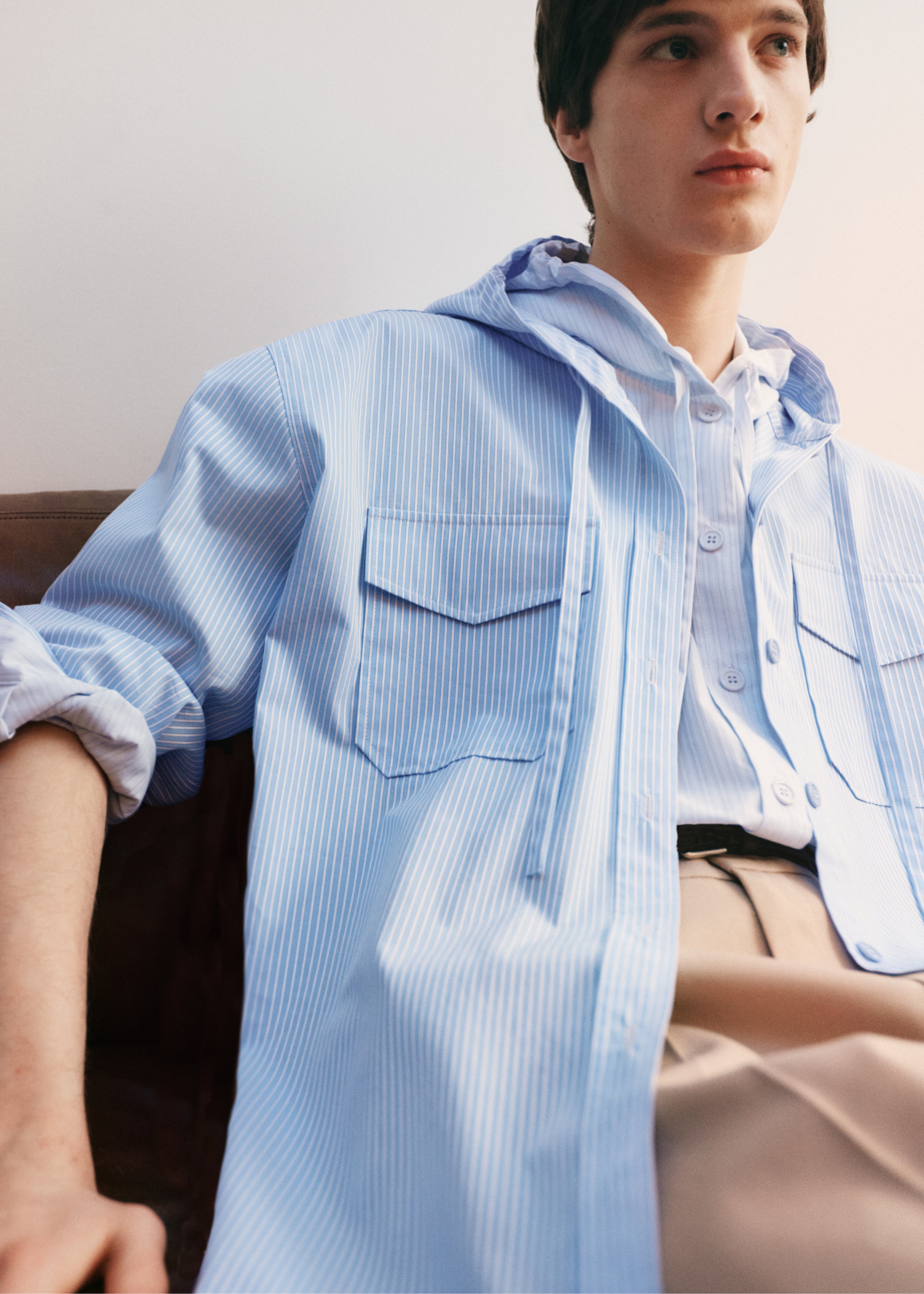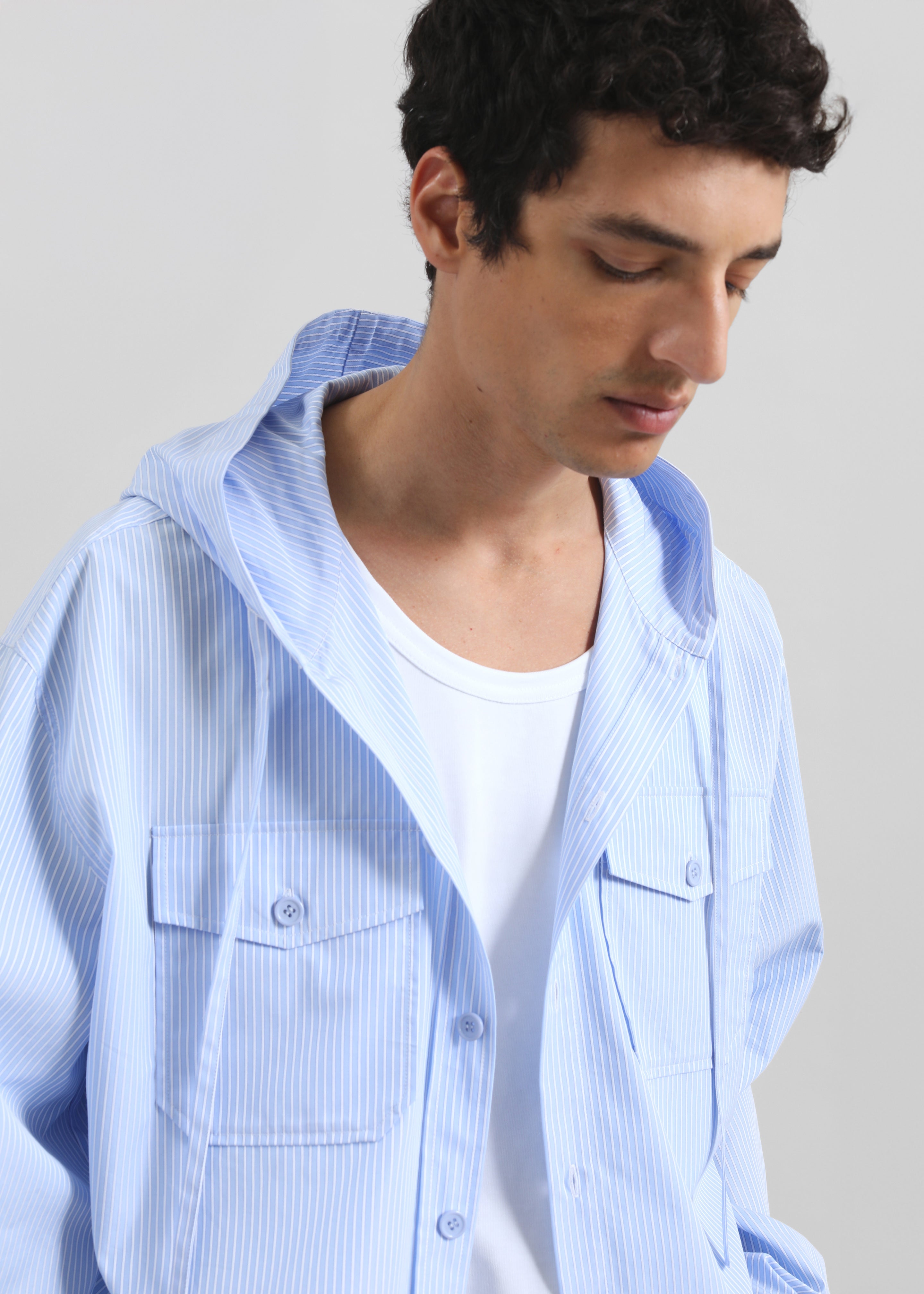 Lars Hooded Striped Jacket - Blue/White Stripe
