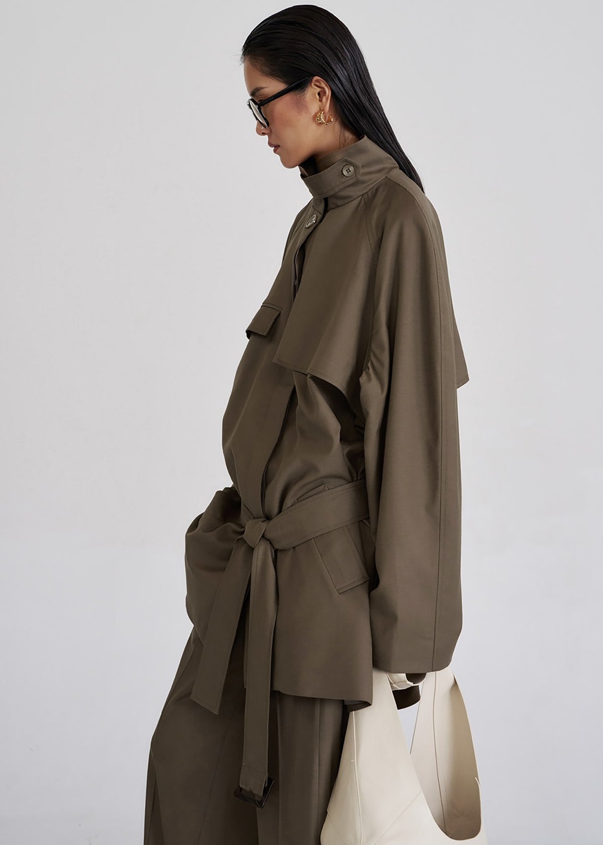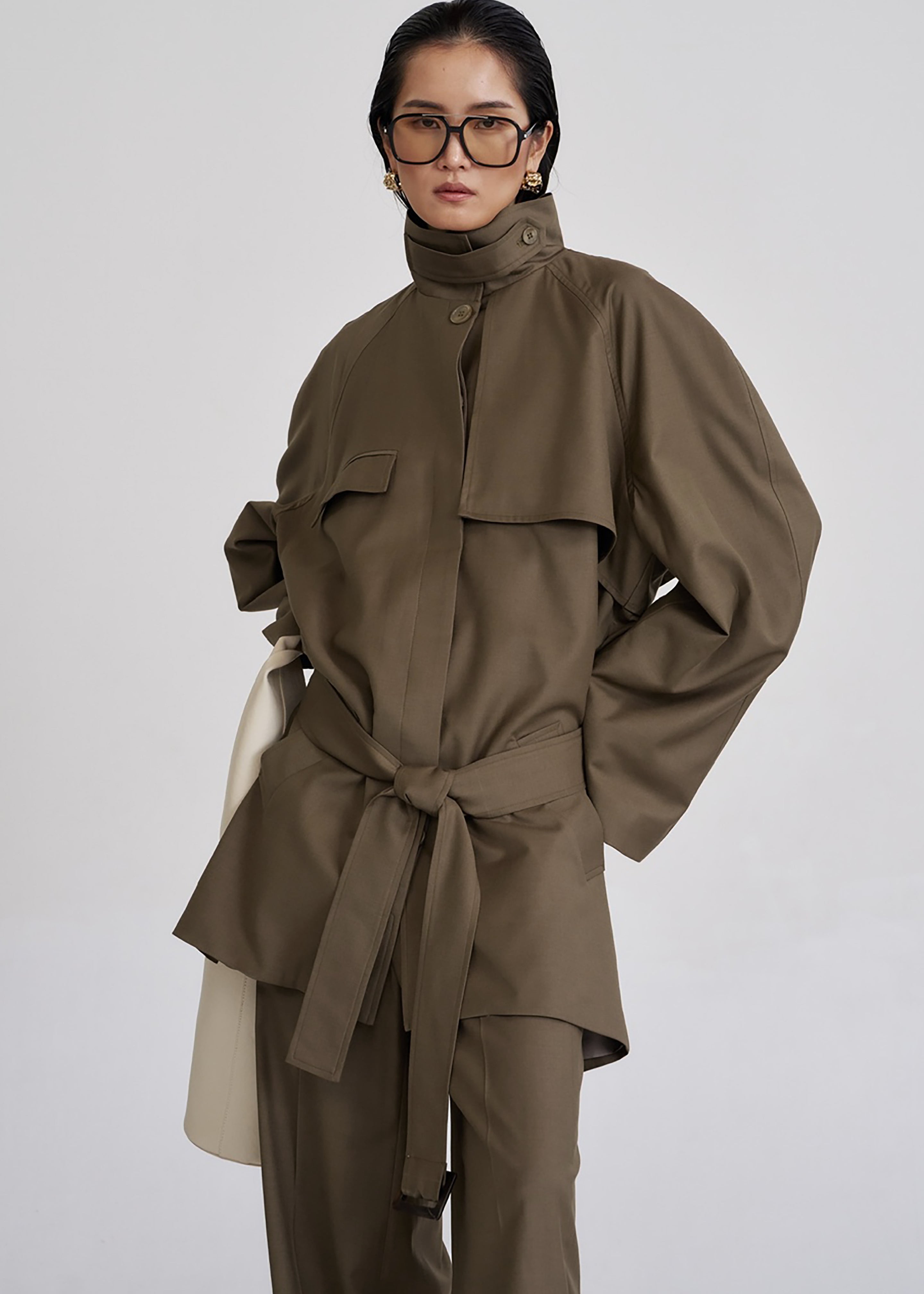 High collar with tab detail
