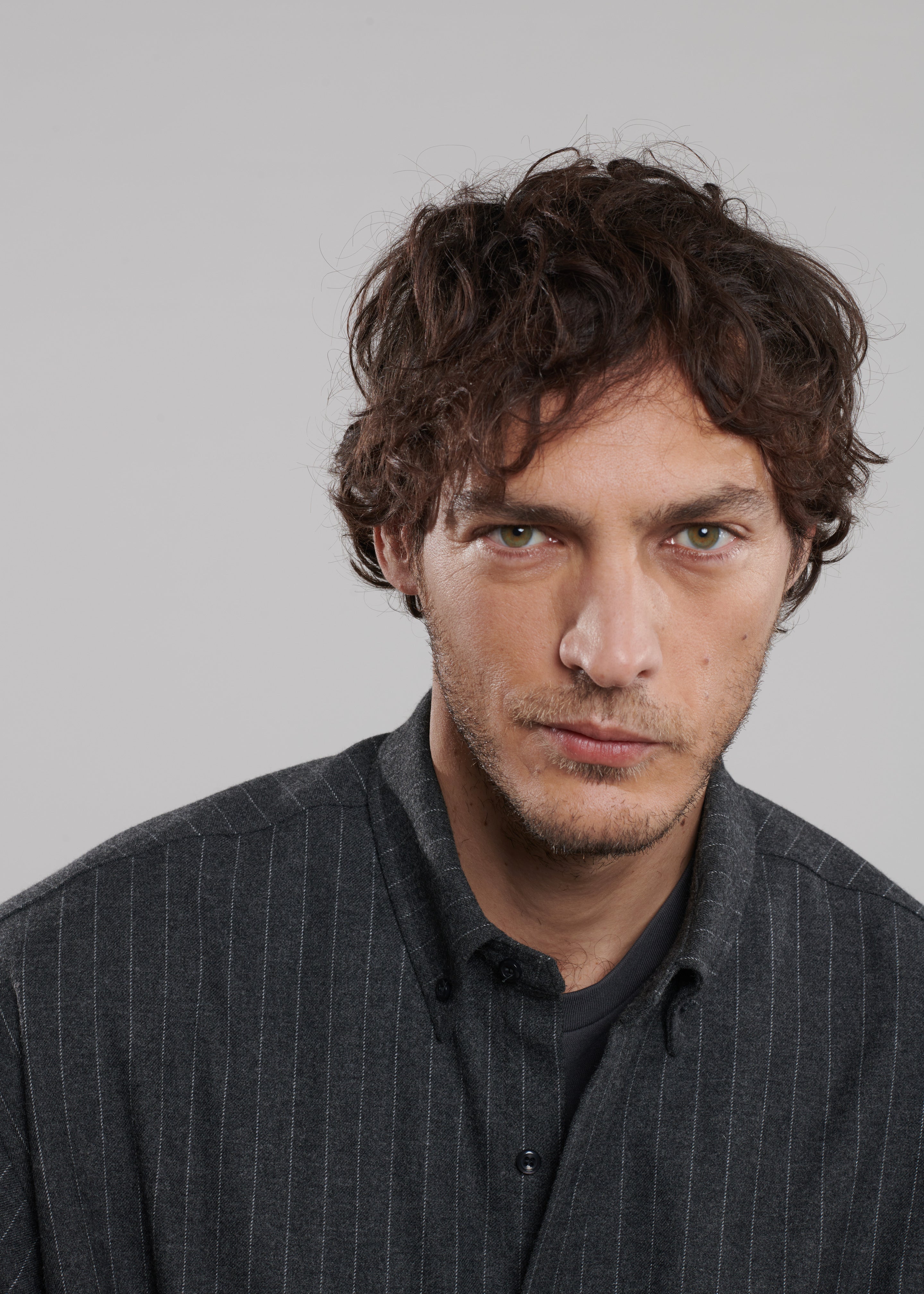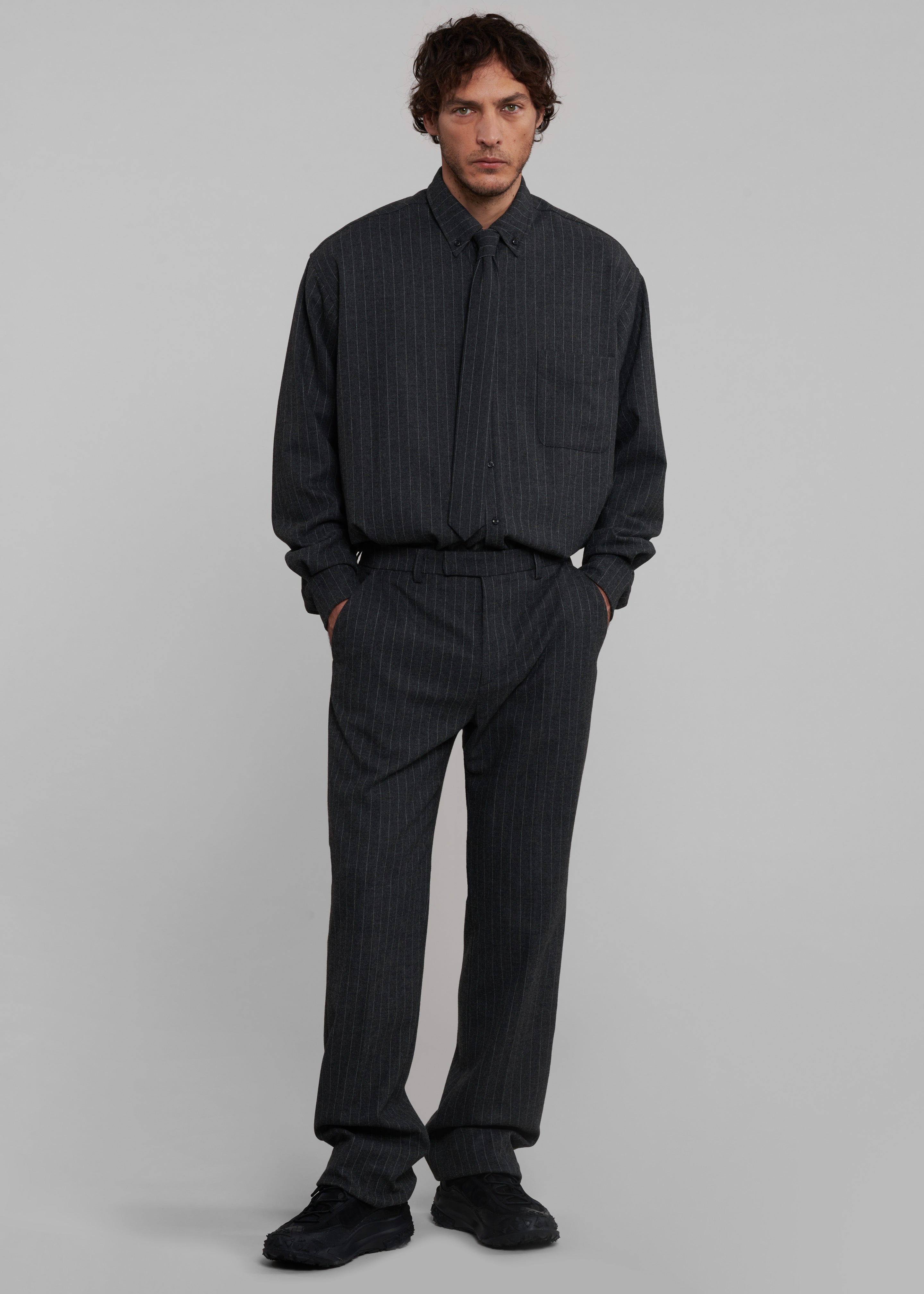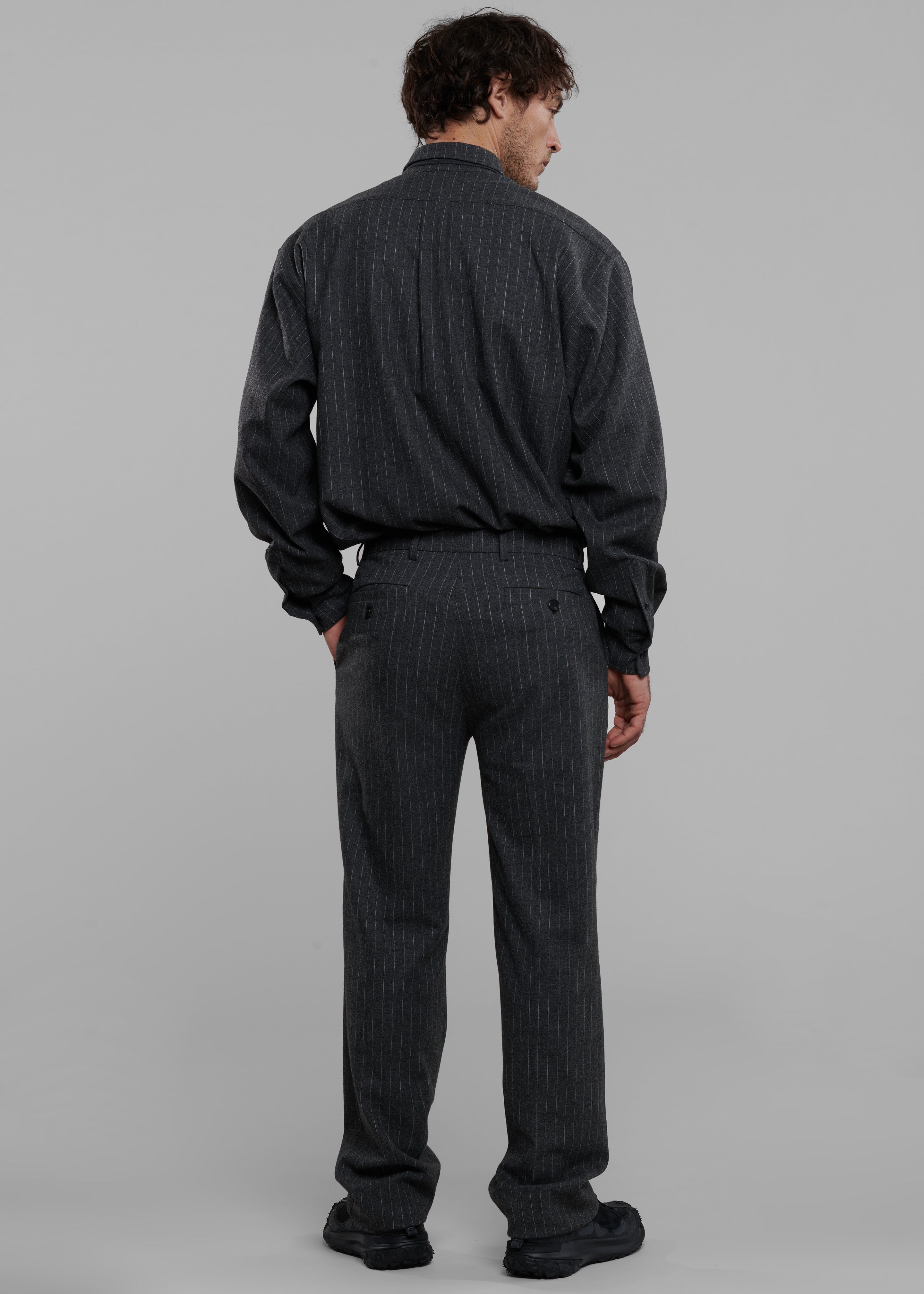 Mason Wool Button Up Shirt - Dark Grey/White Pinstripe