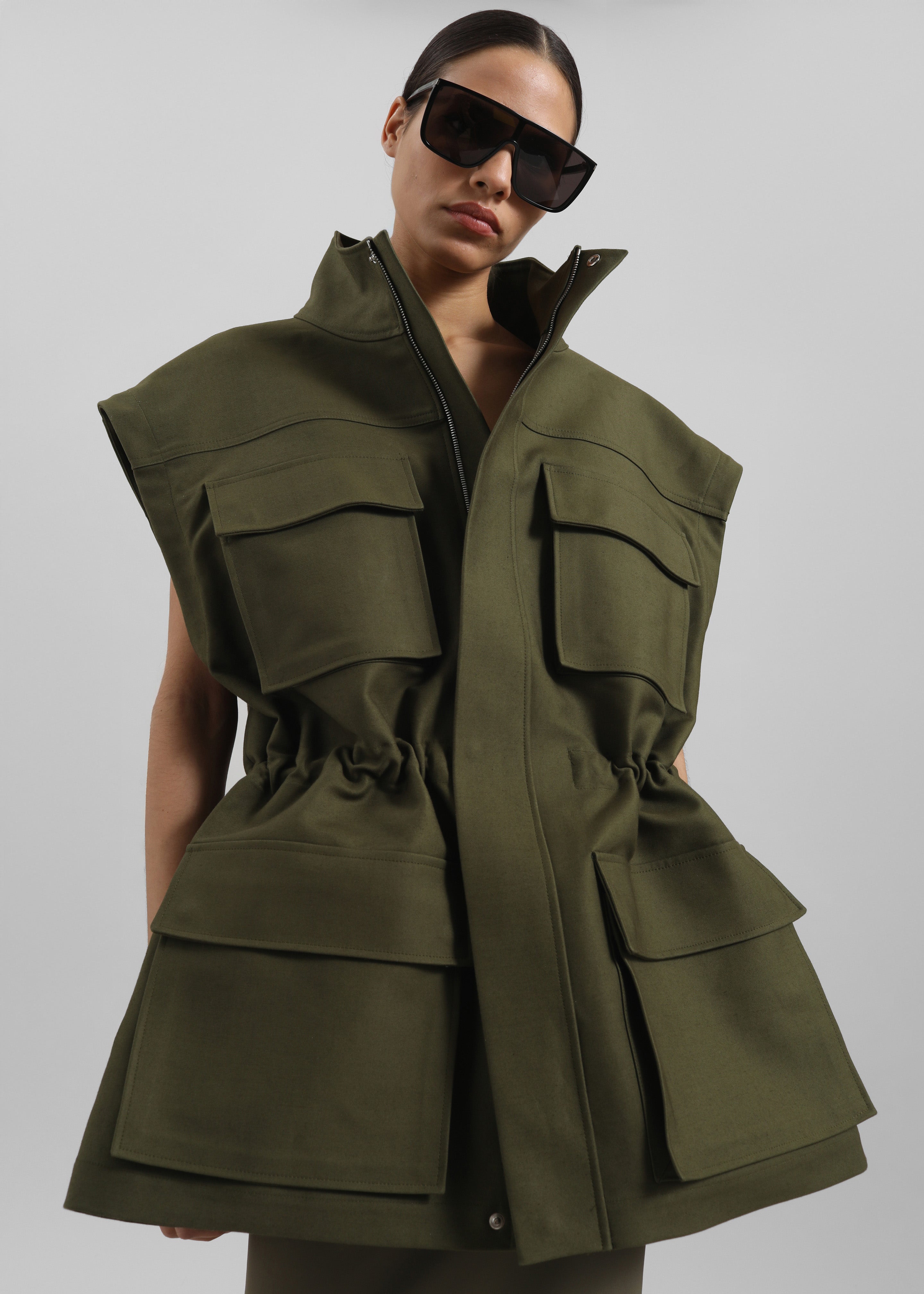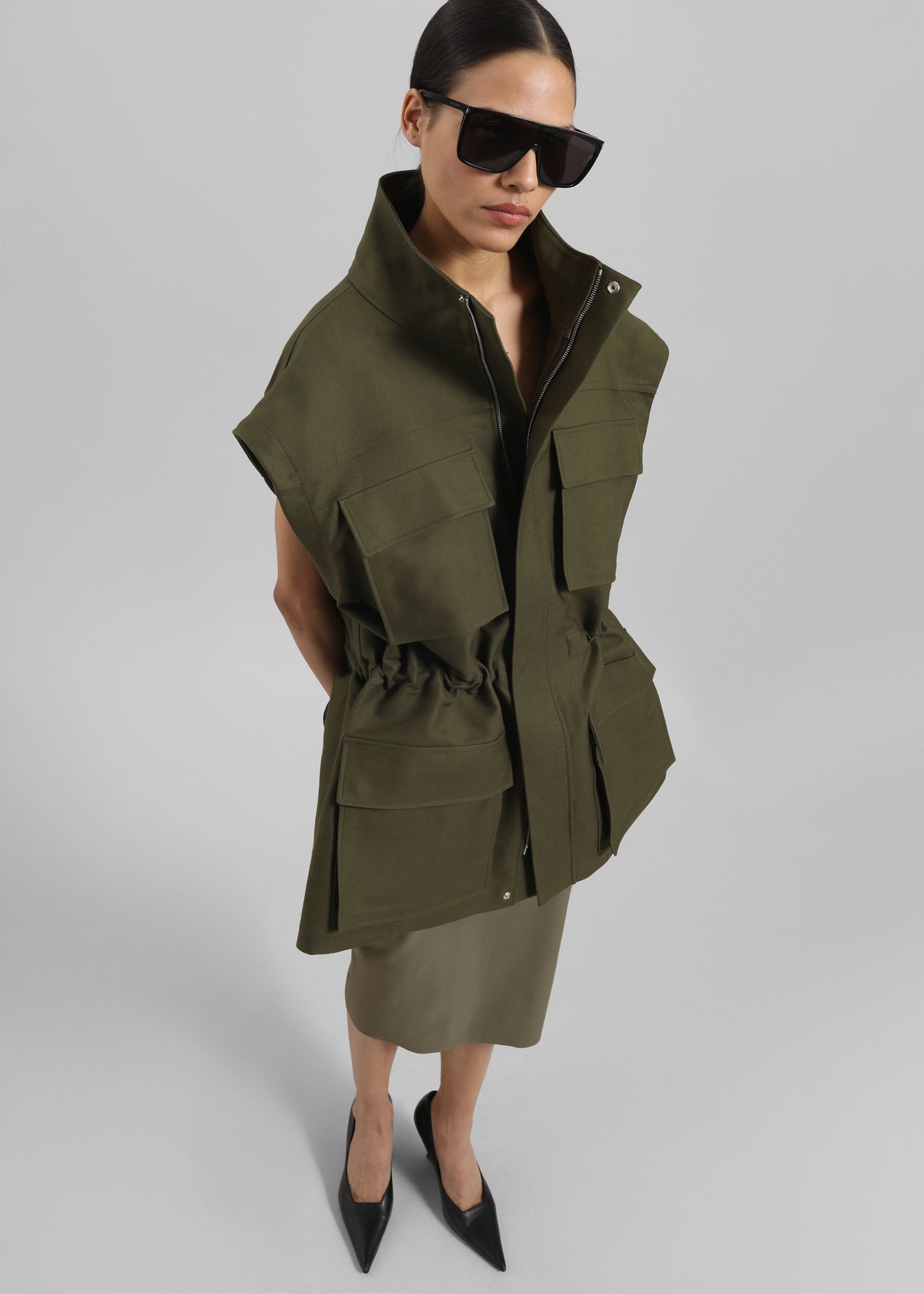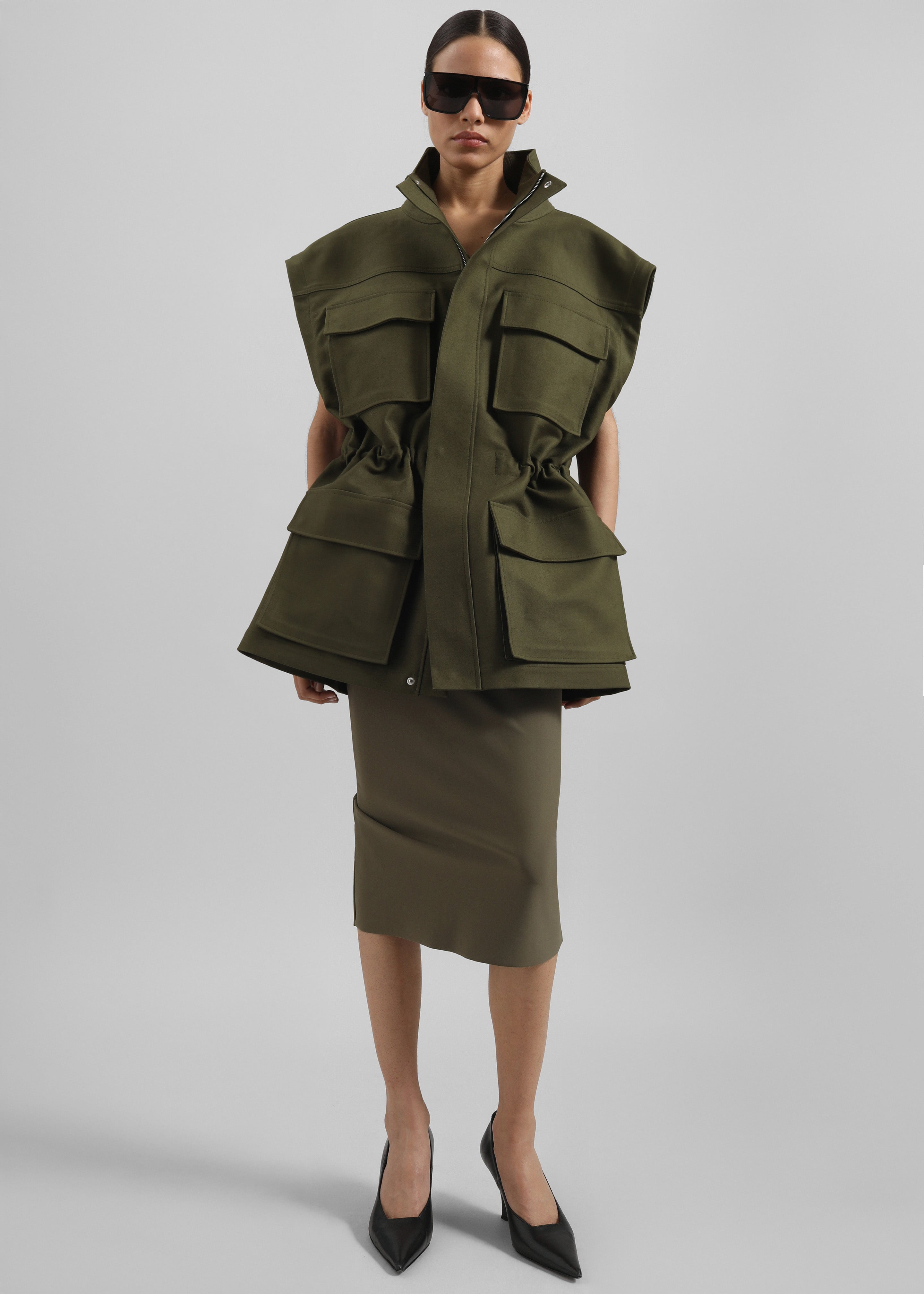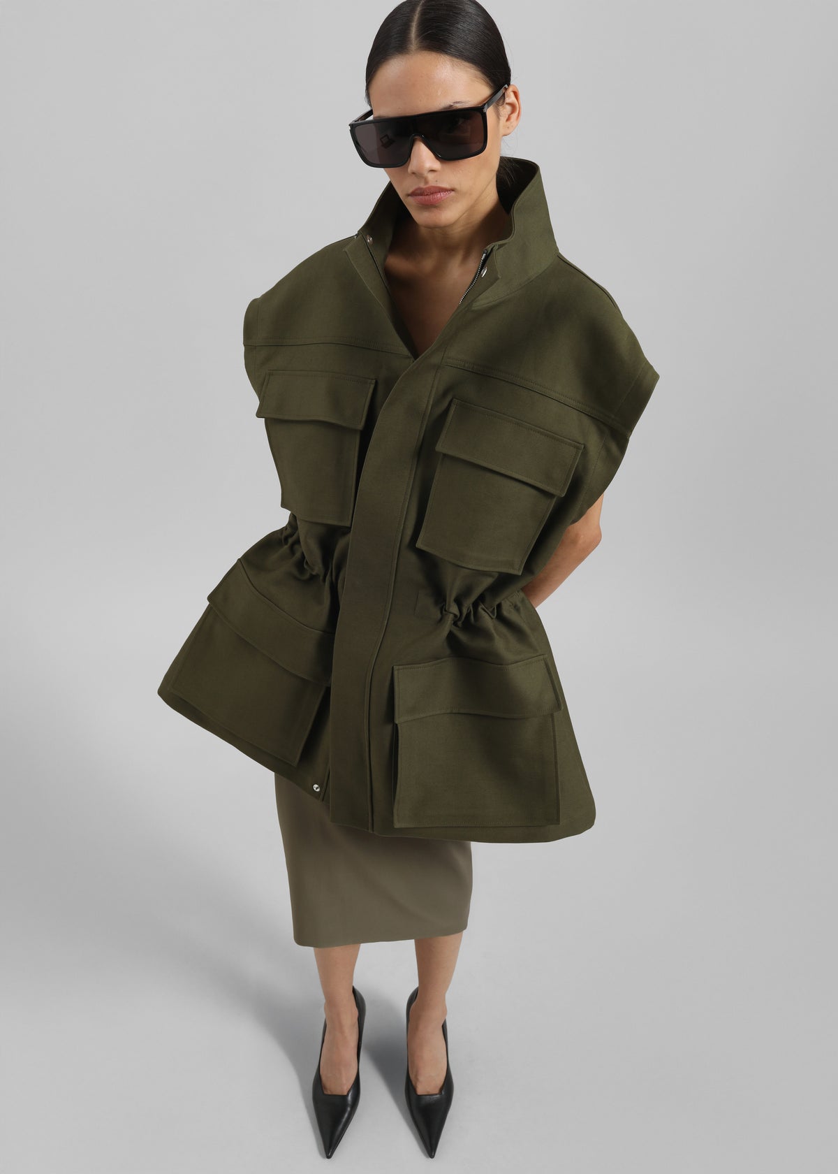 Melton Detachable Sleeve Cargo Jacket - Khaki
