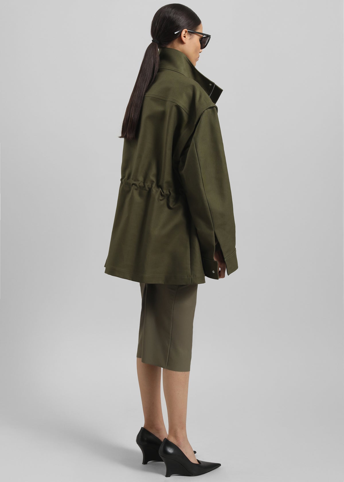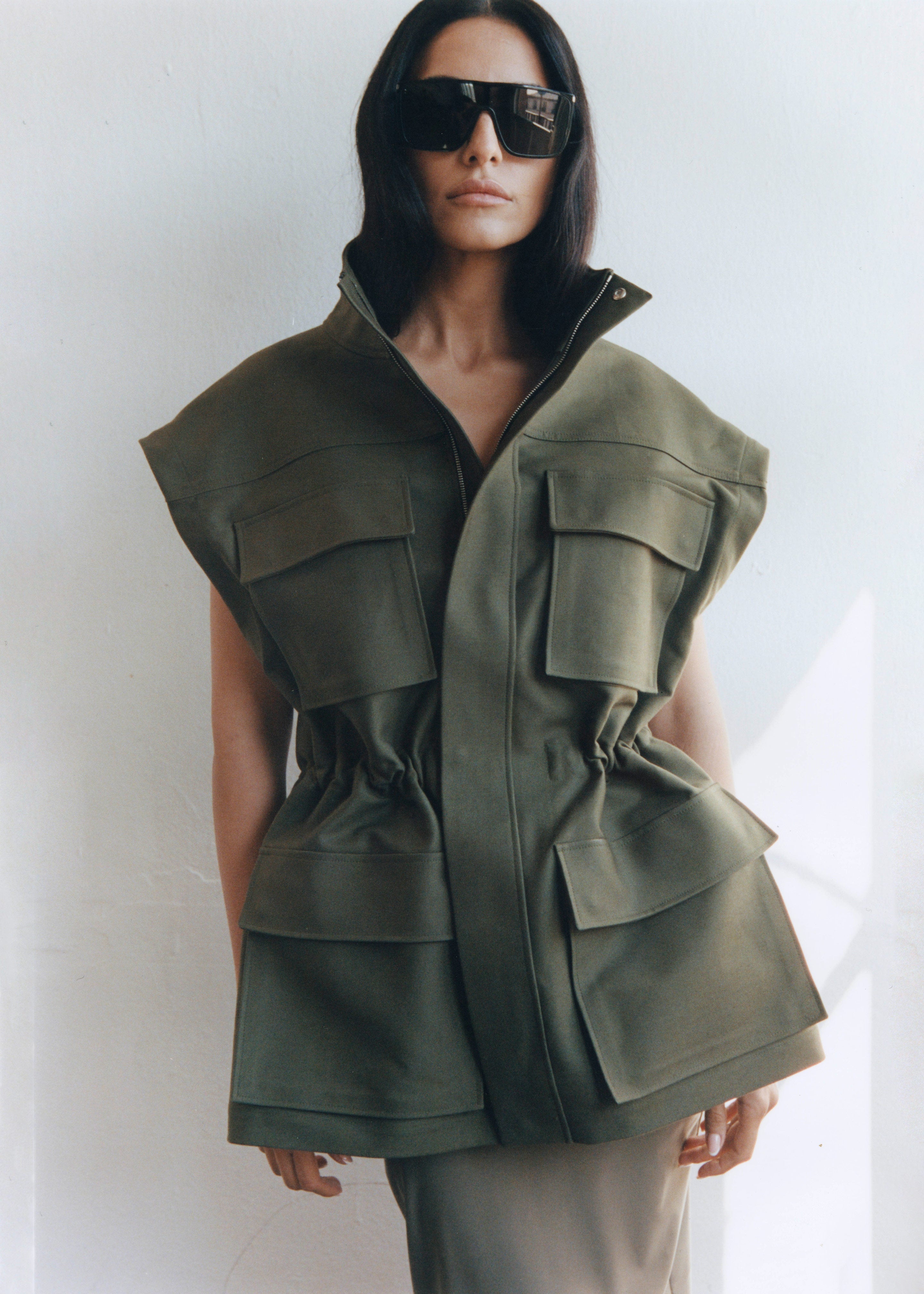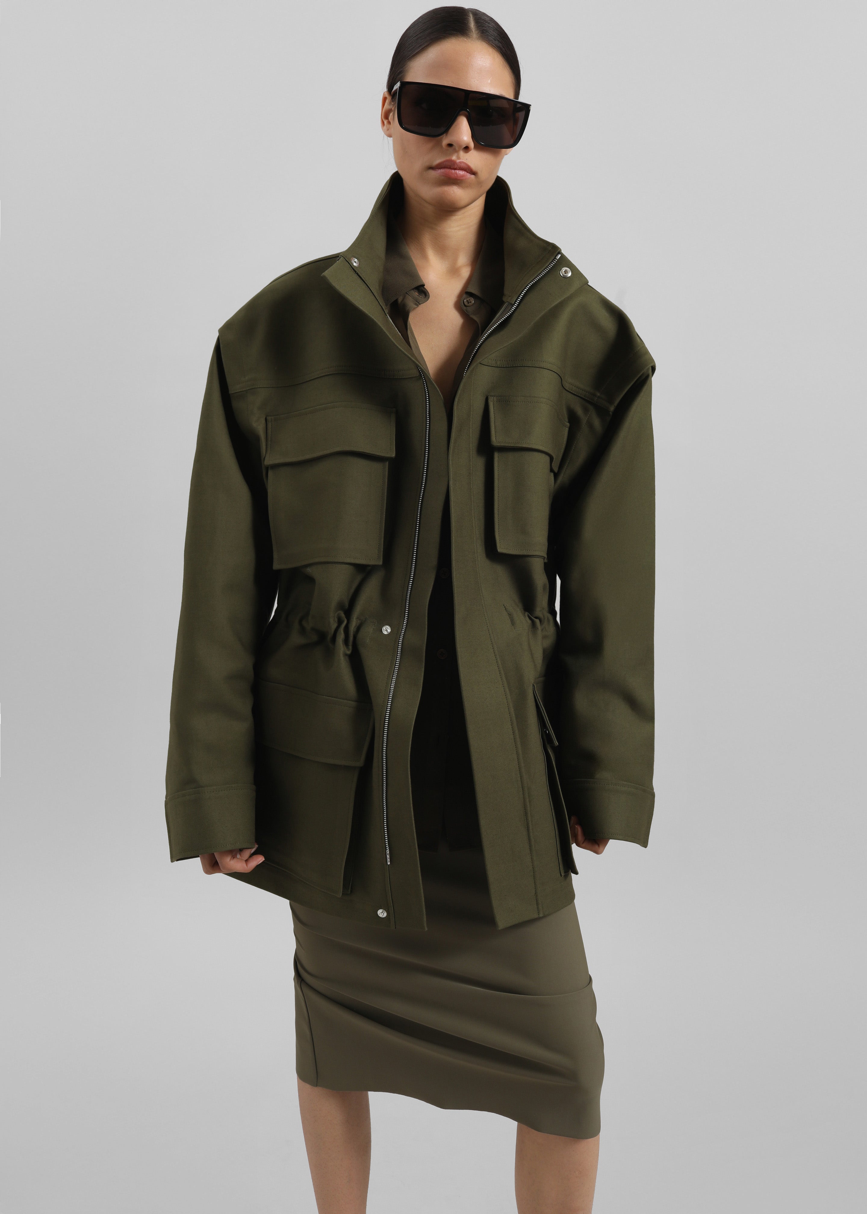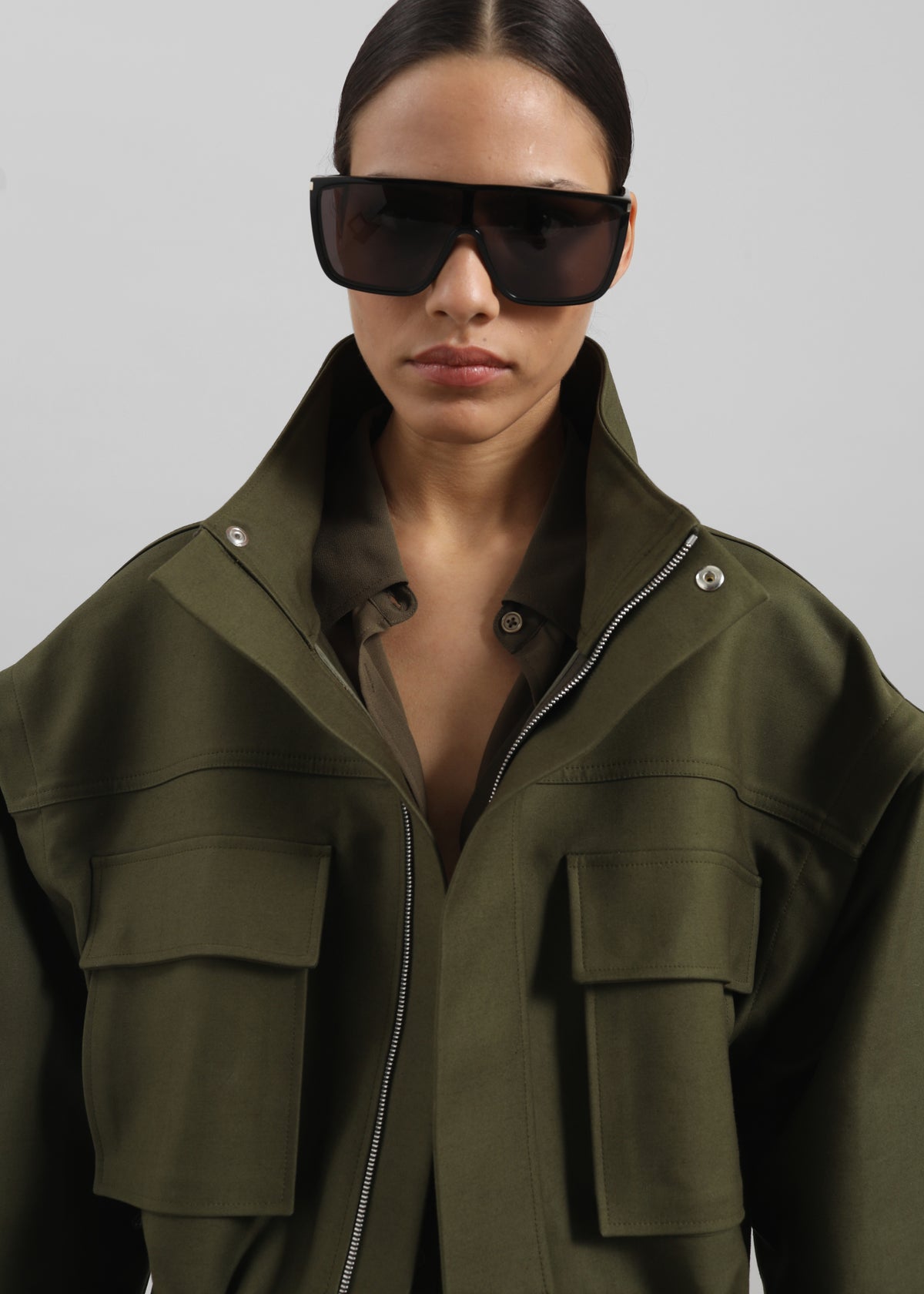 Melton Detachable Sleeve Cargo Jacket - Khaki