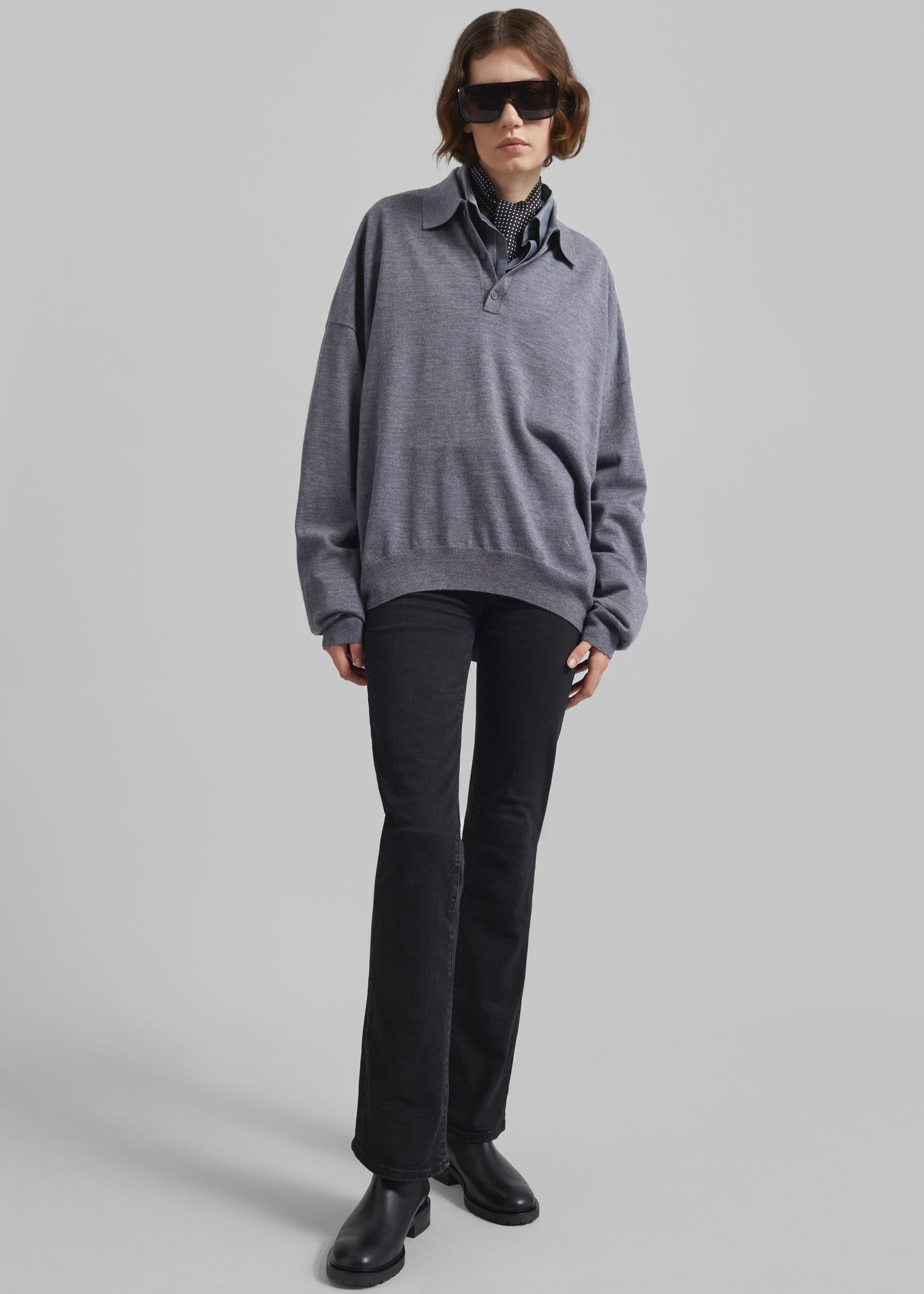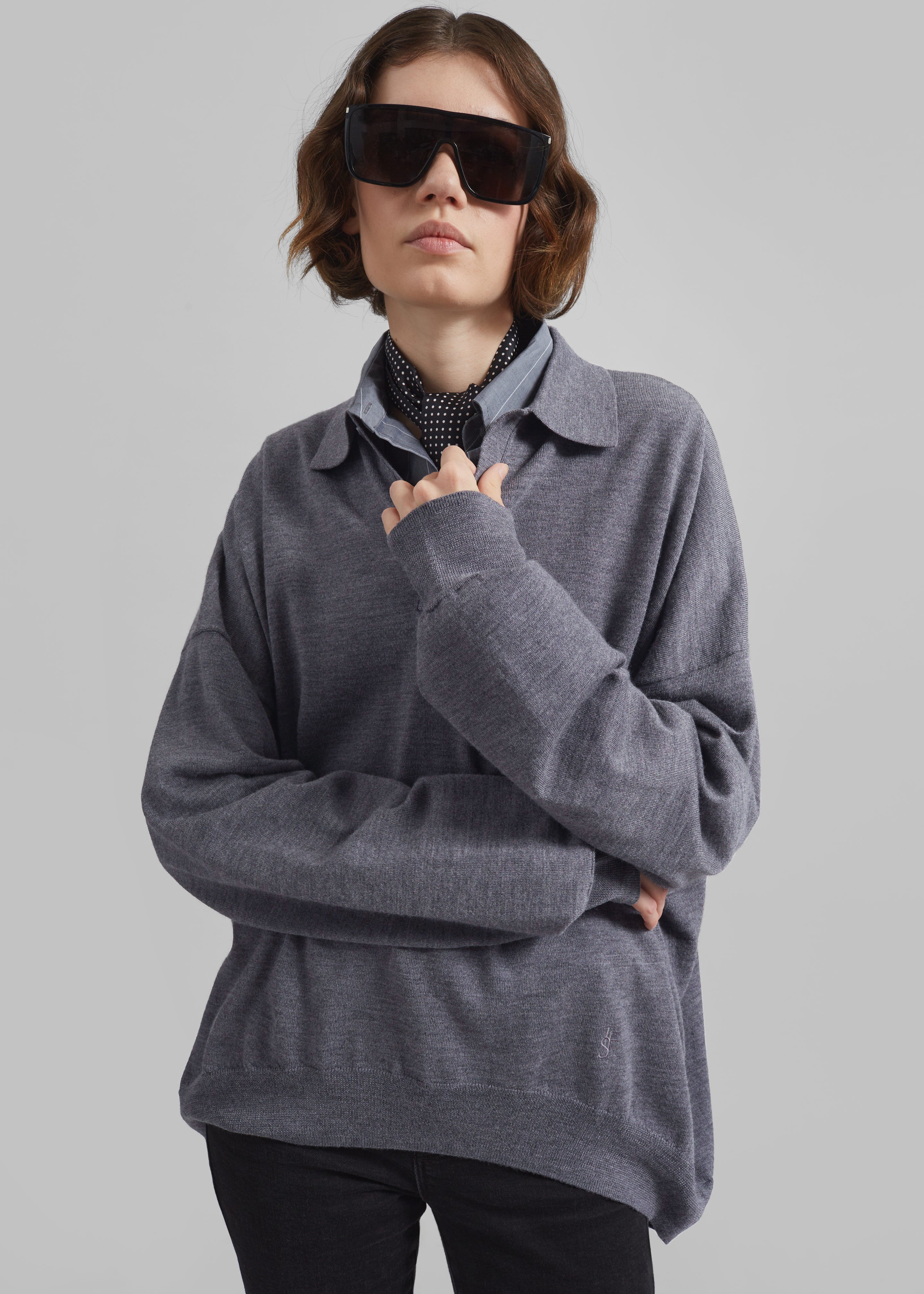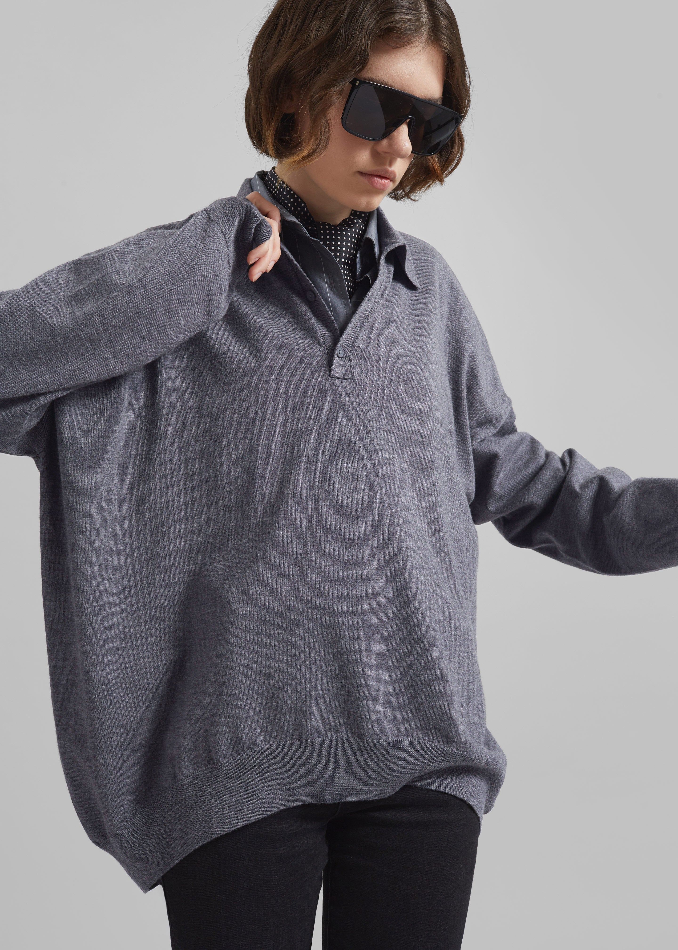 Meriel Wool Polo Sweater - Grey