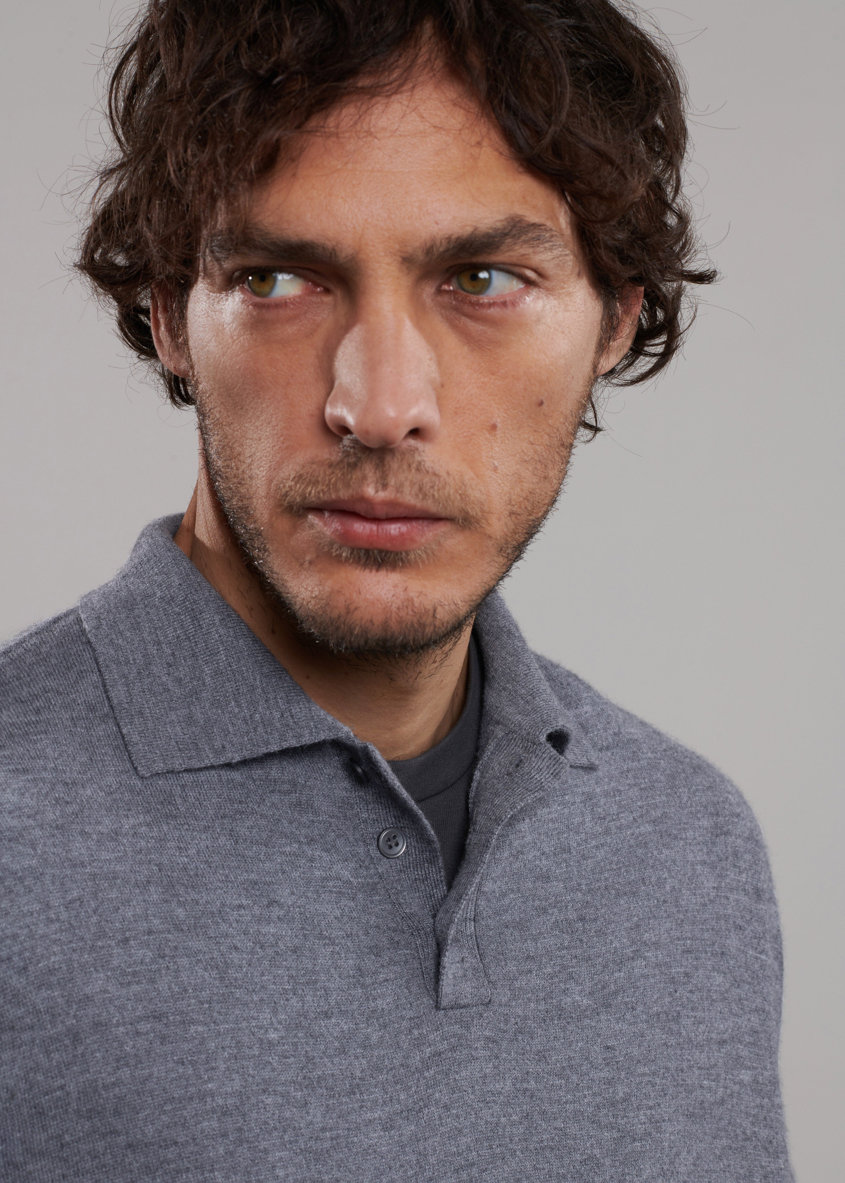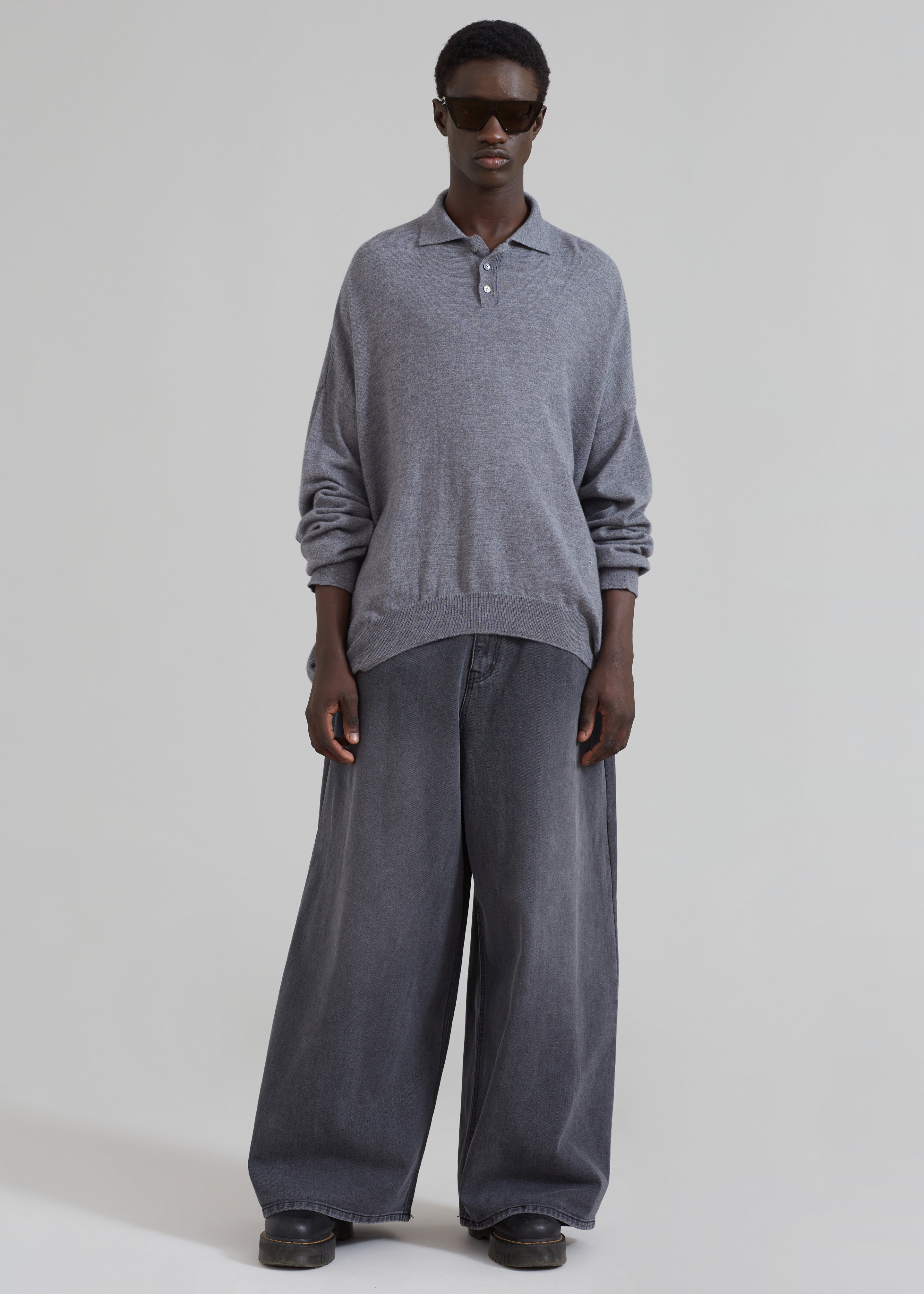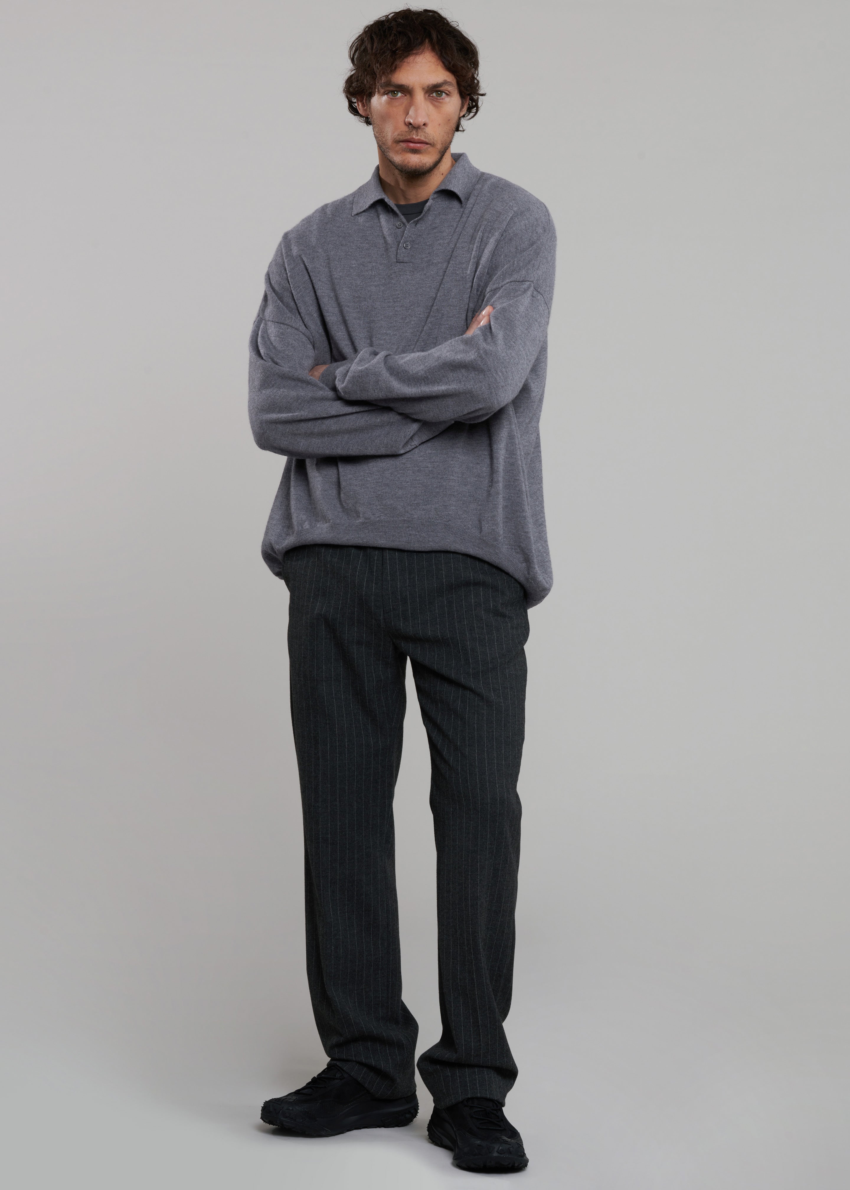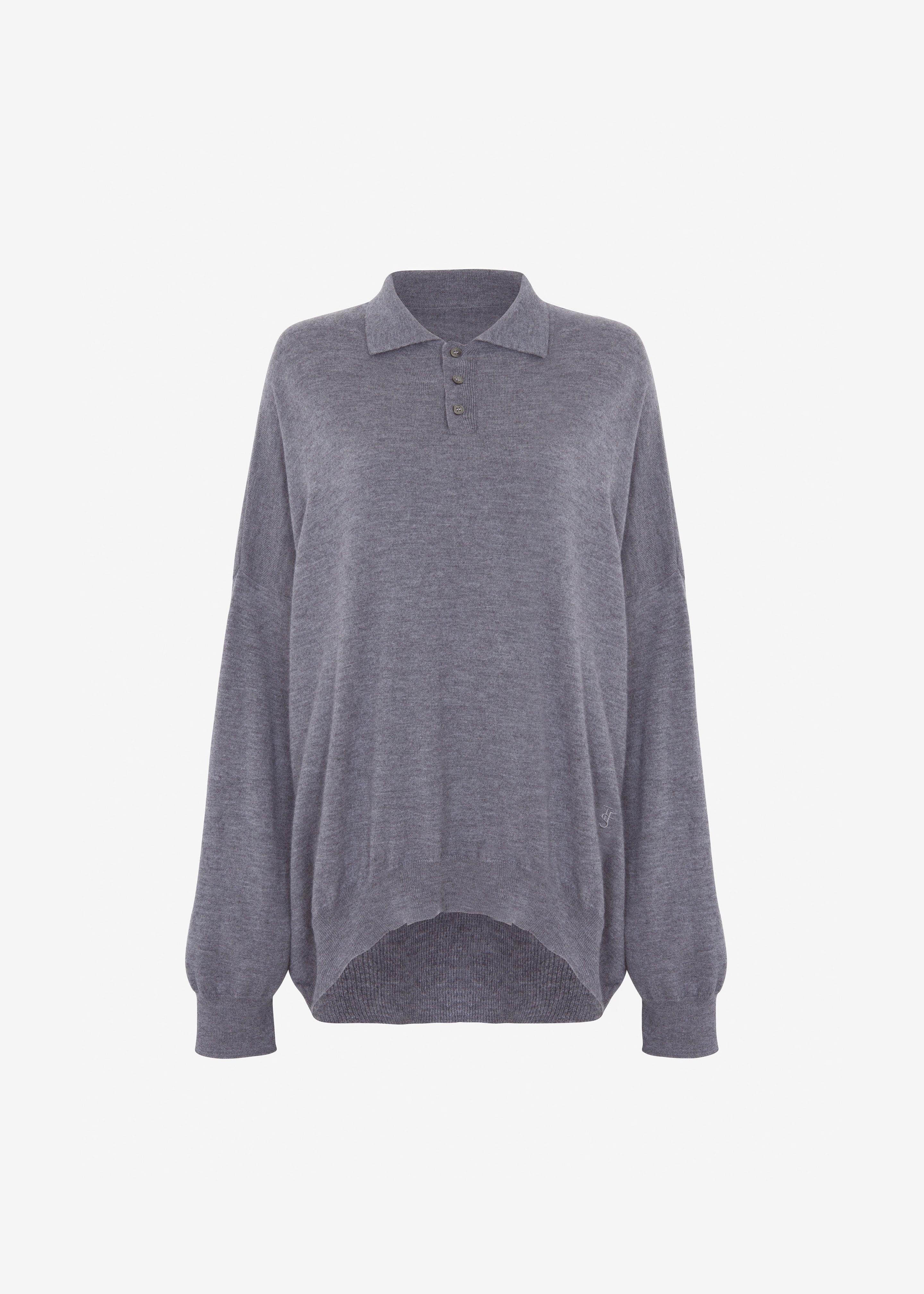 Meriel Wool Polo Sweater - Grey