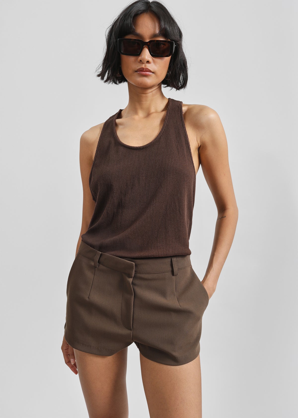 Nox Ribbed Tank Top - Brown