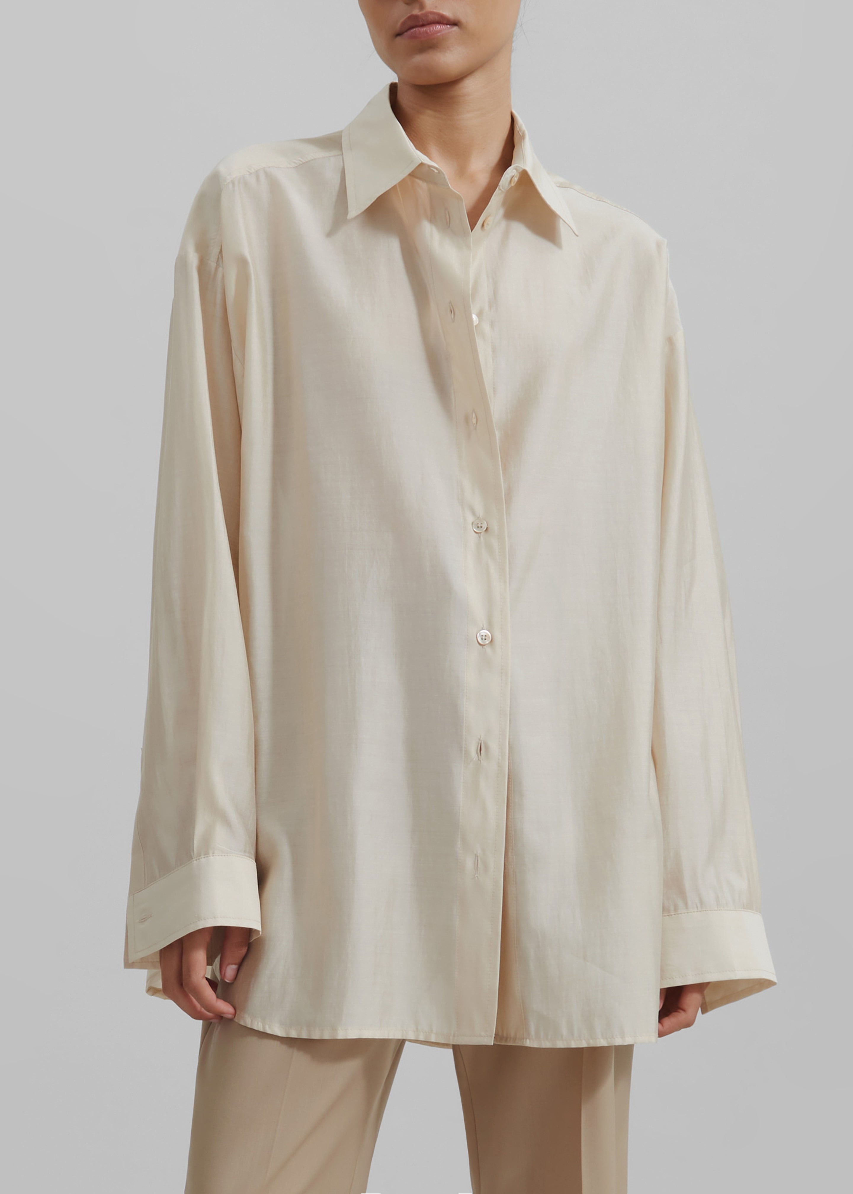 Ola Semi-Sheer Button Up Shirt - Ivory