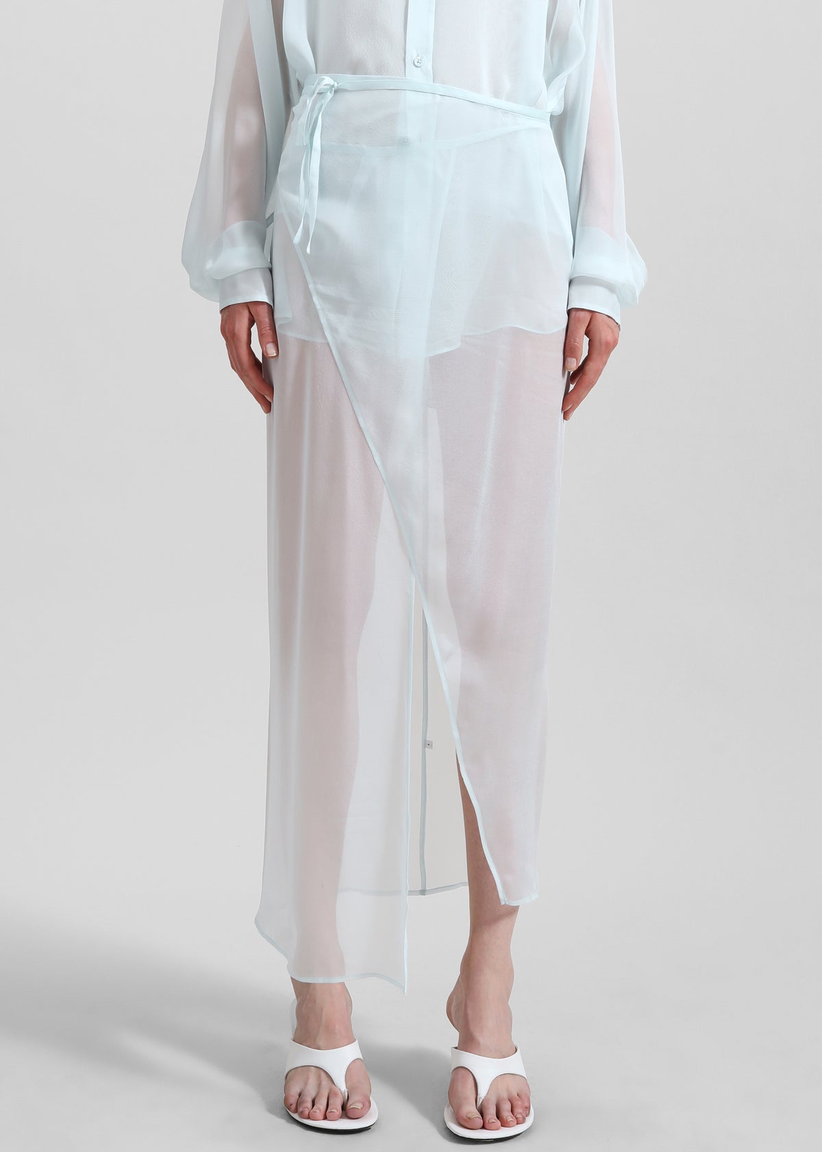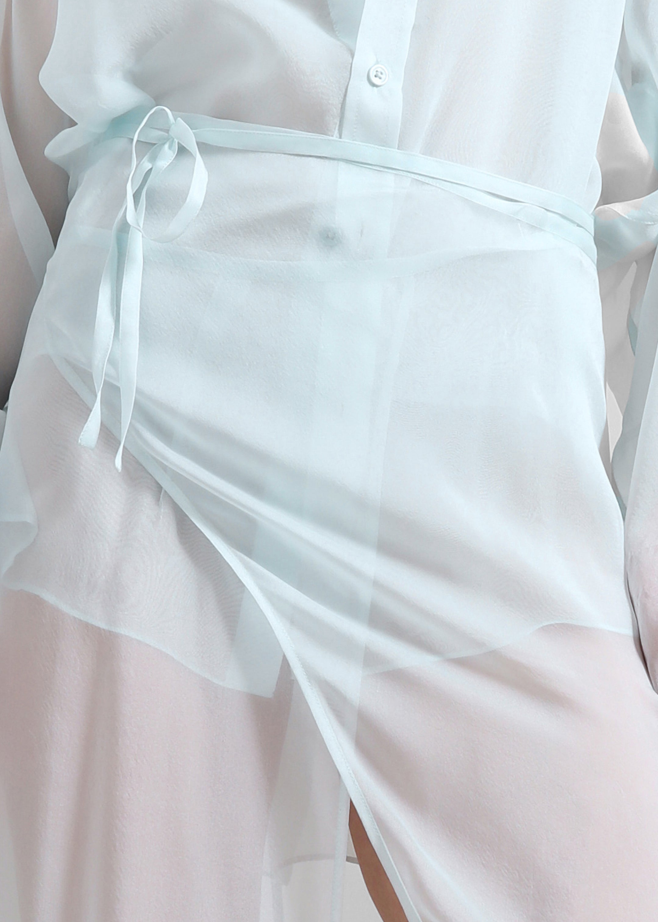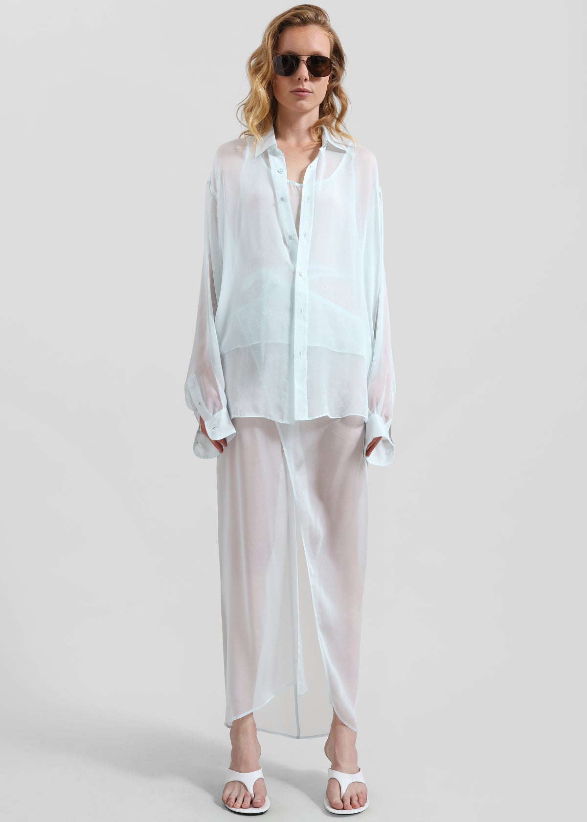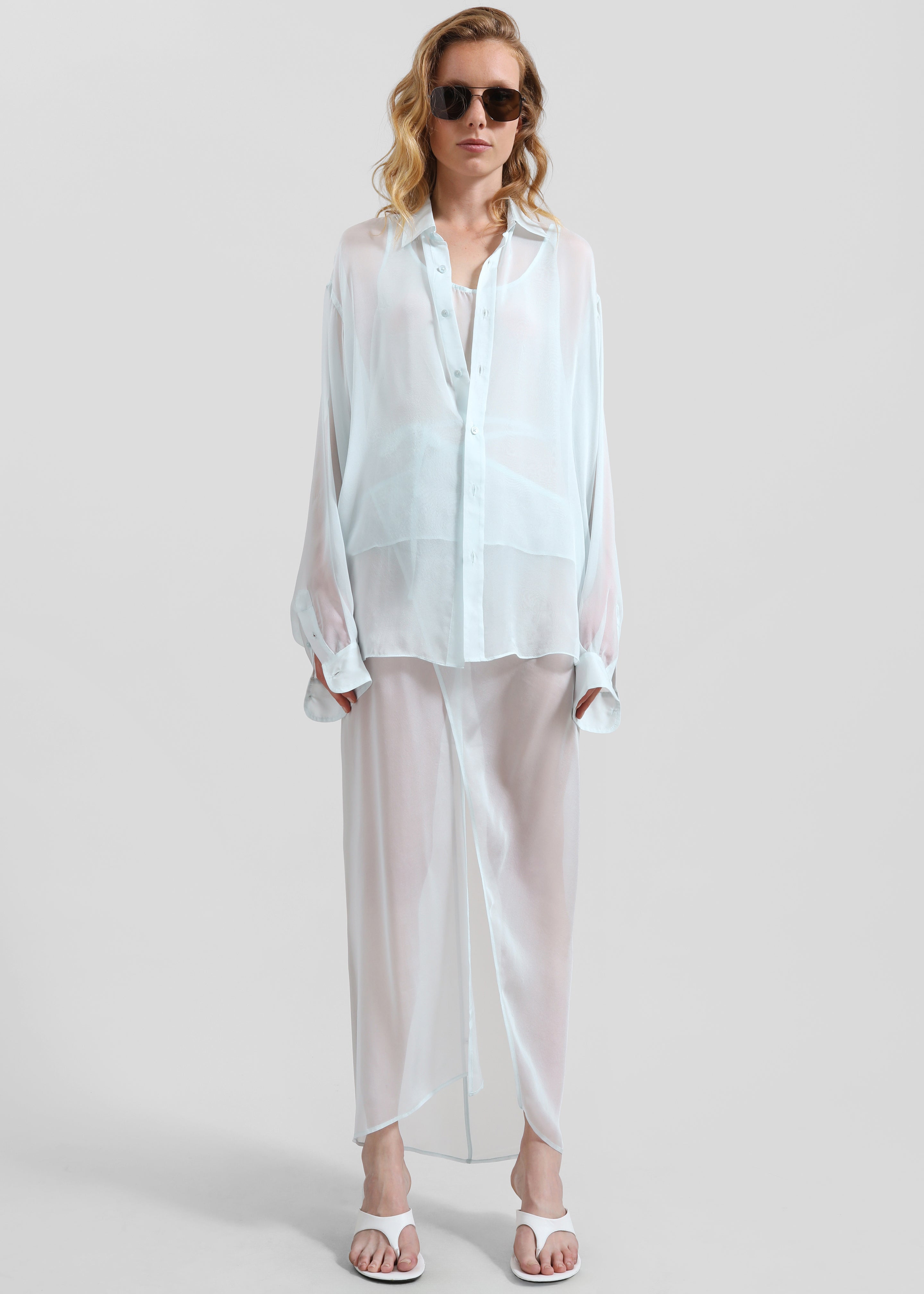 Oria Sheer Silk Chiffon Wrap Skirt - Pale Blue
