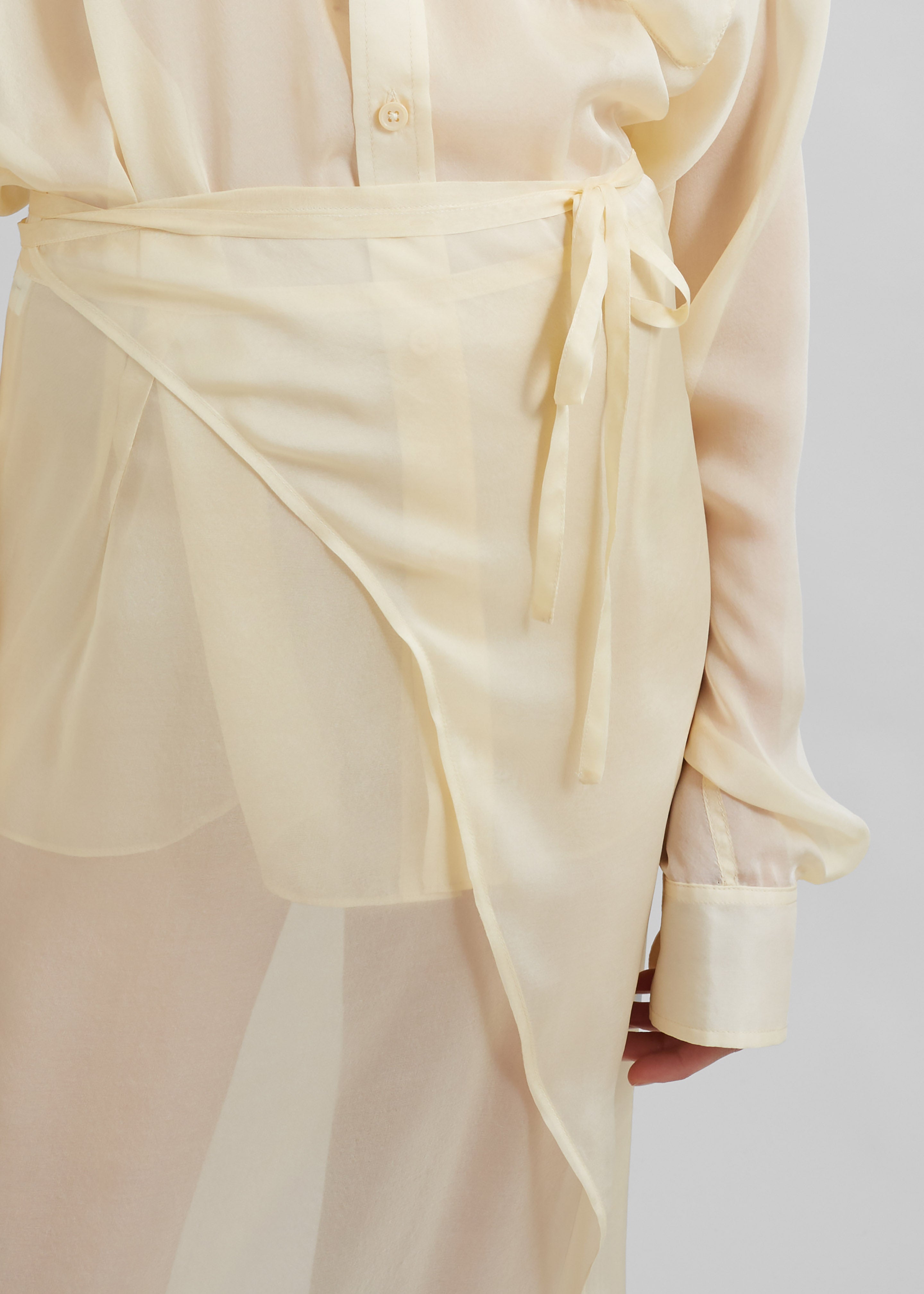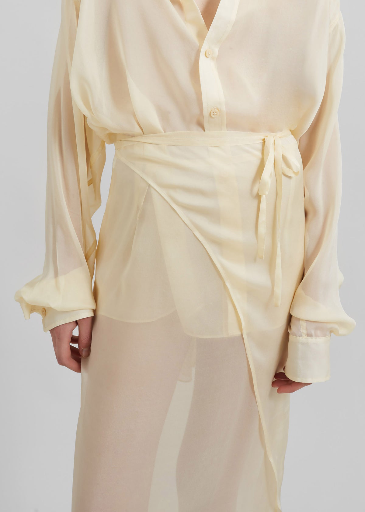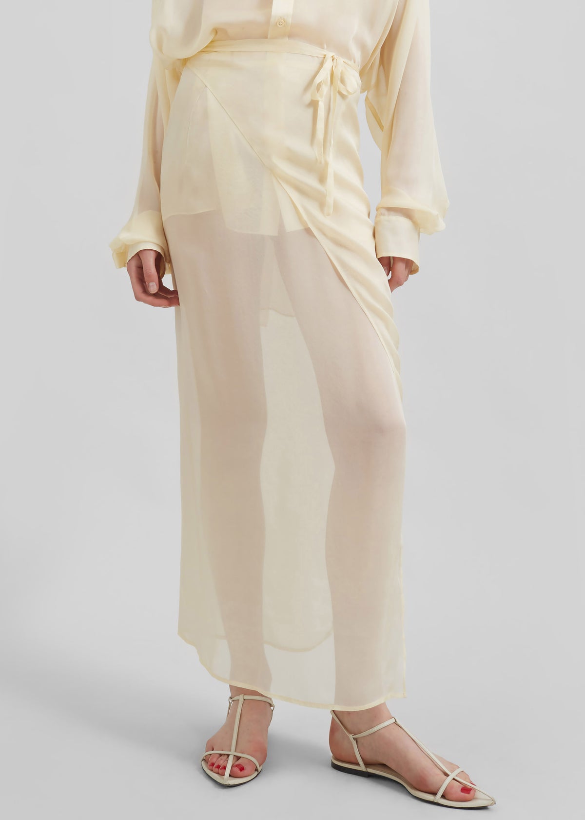 Oria Sheer Silk Chiffon Wrap Skirt - Pale Yellow