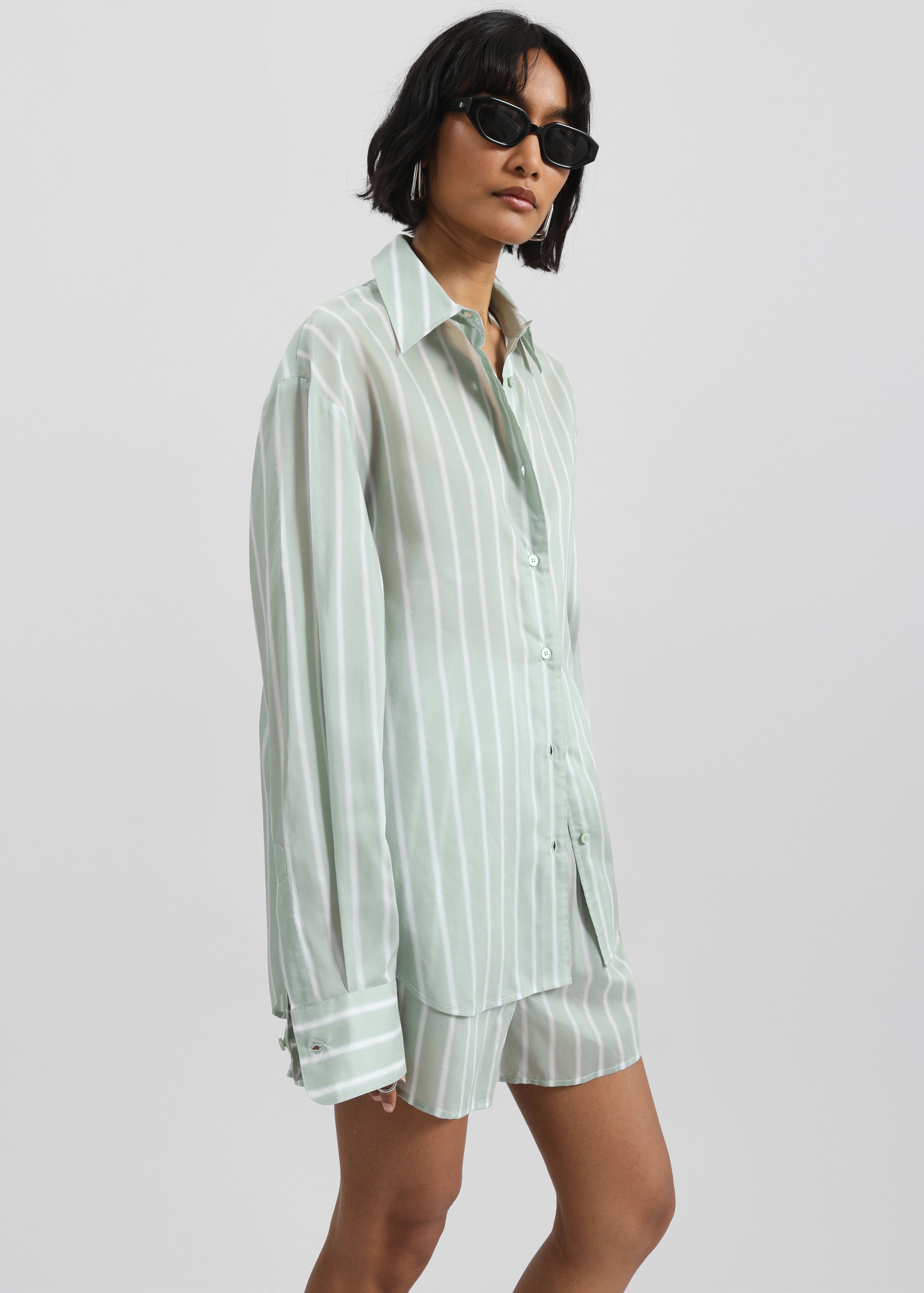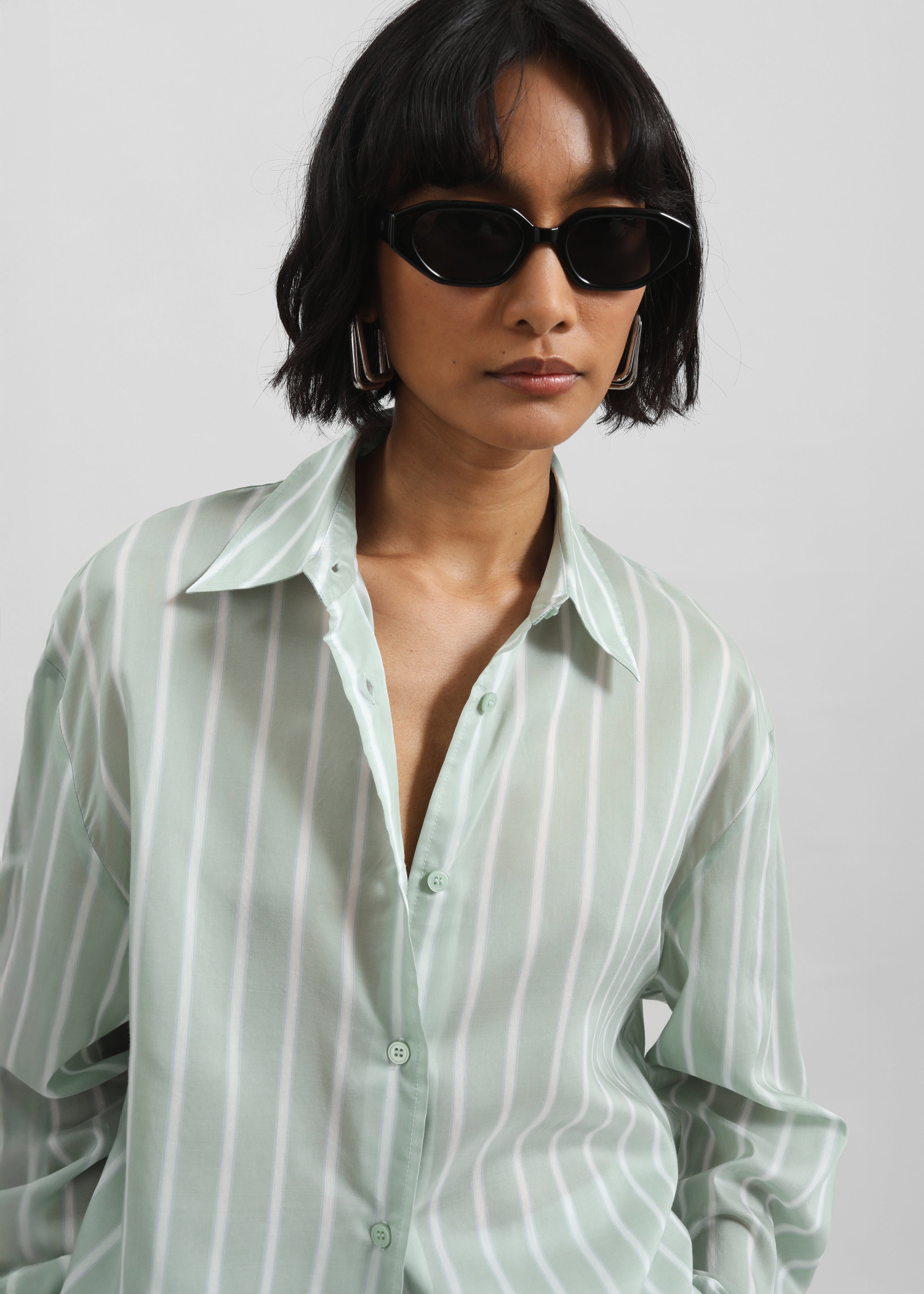 Peri Silk Shirt - Green Stripe