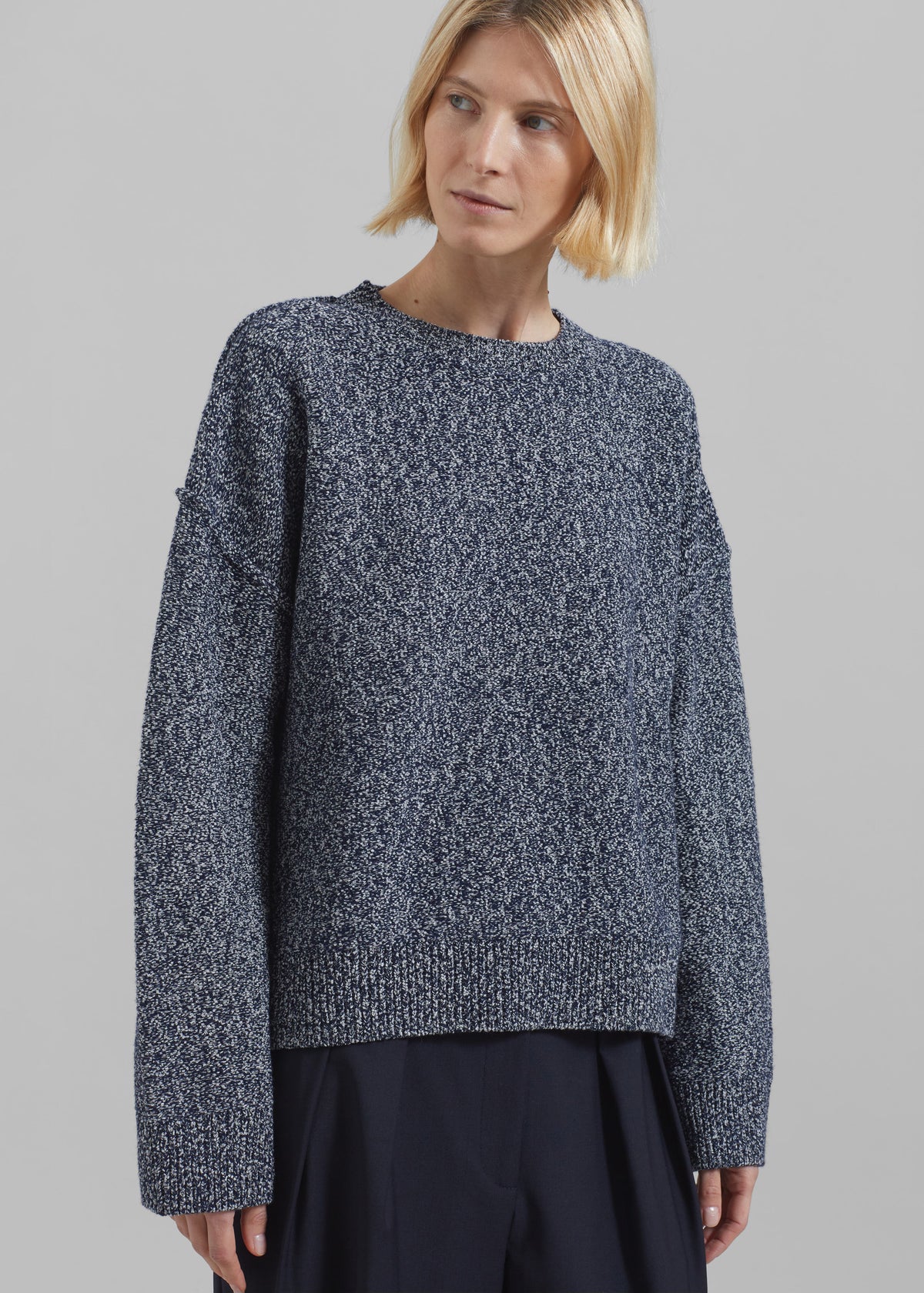 Proenza Schouler White Label Remy Sweater In Marled Knits - Dark Blue/Off White