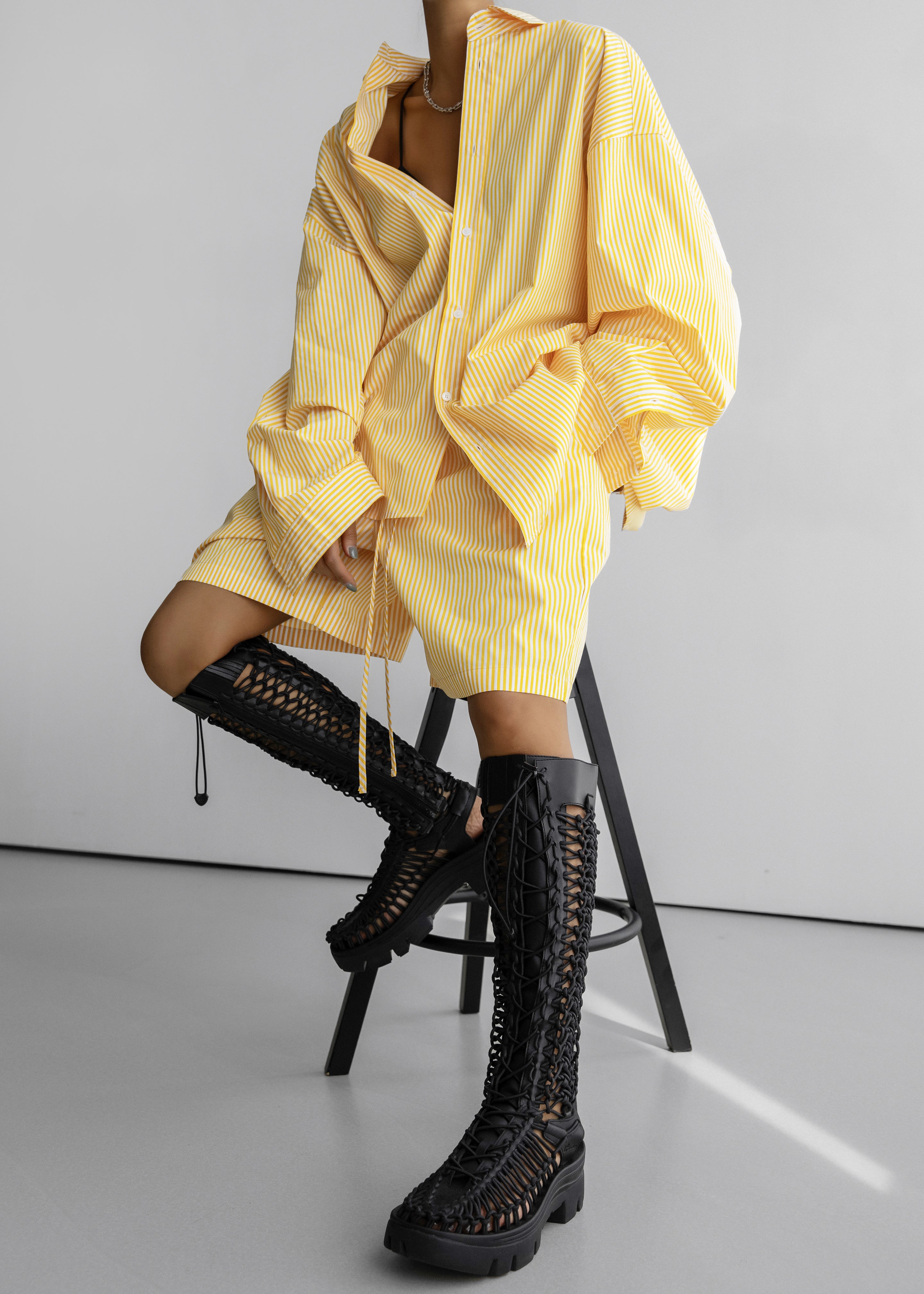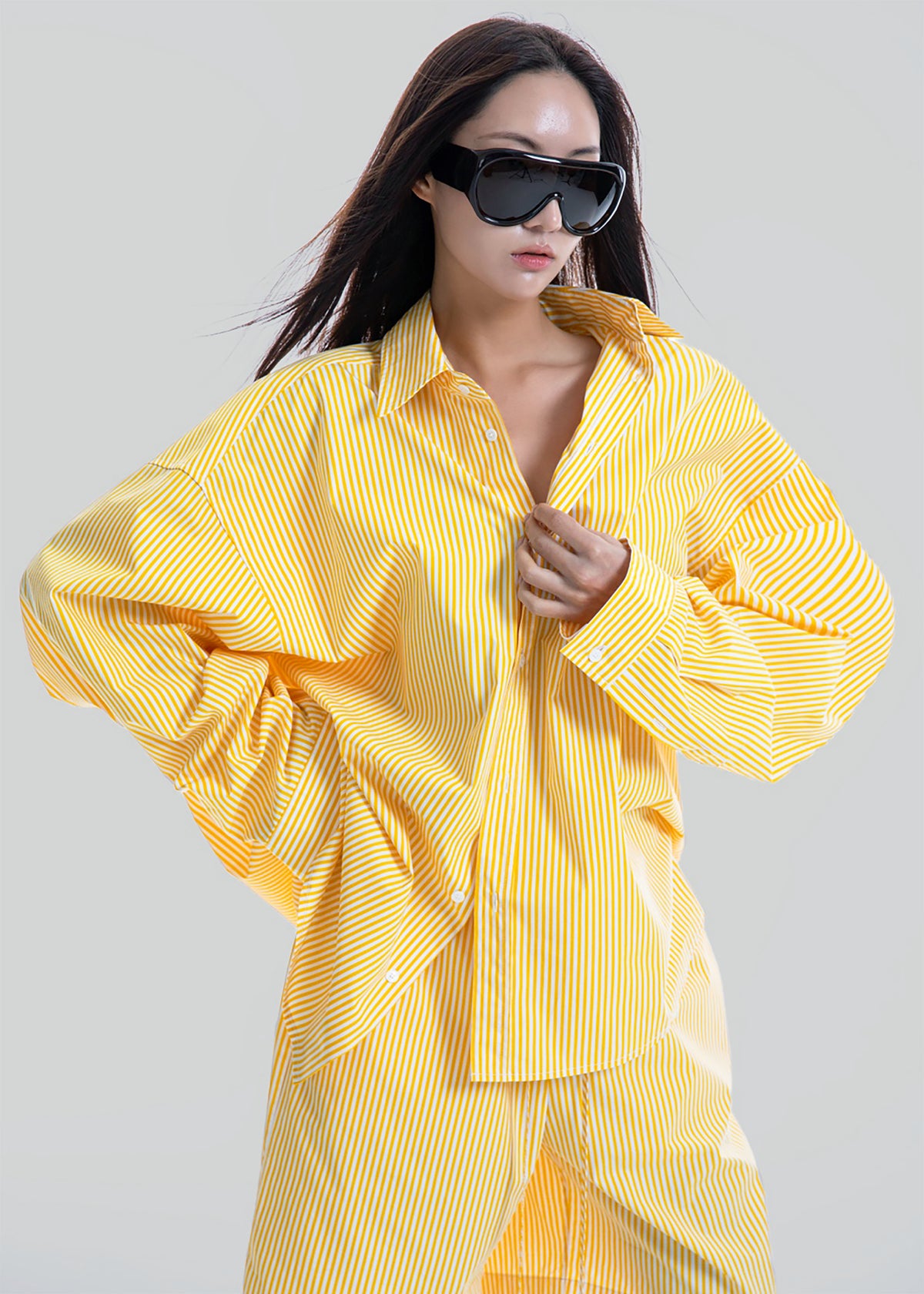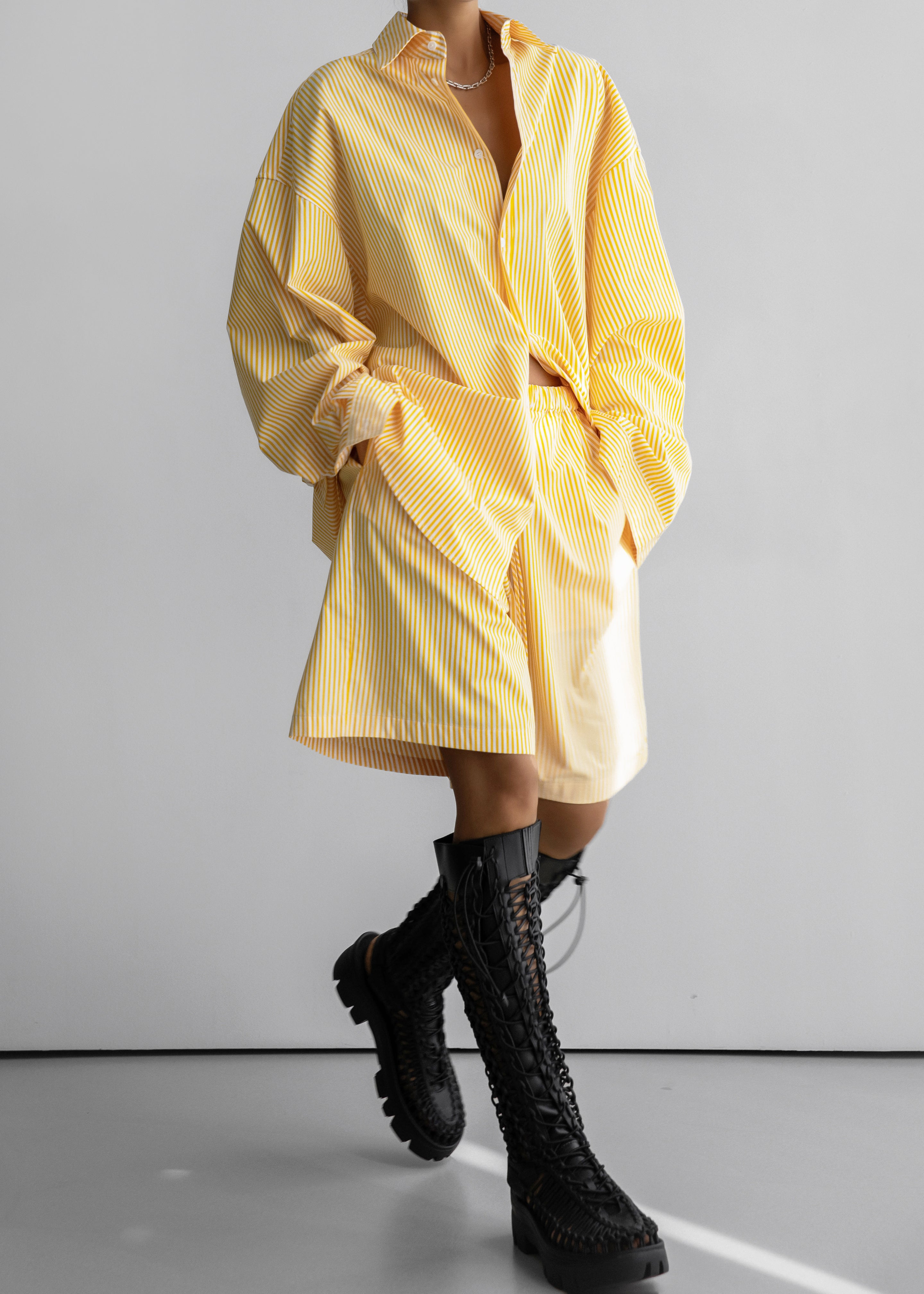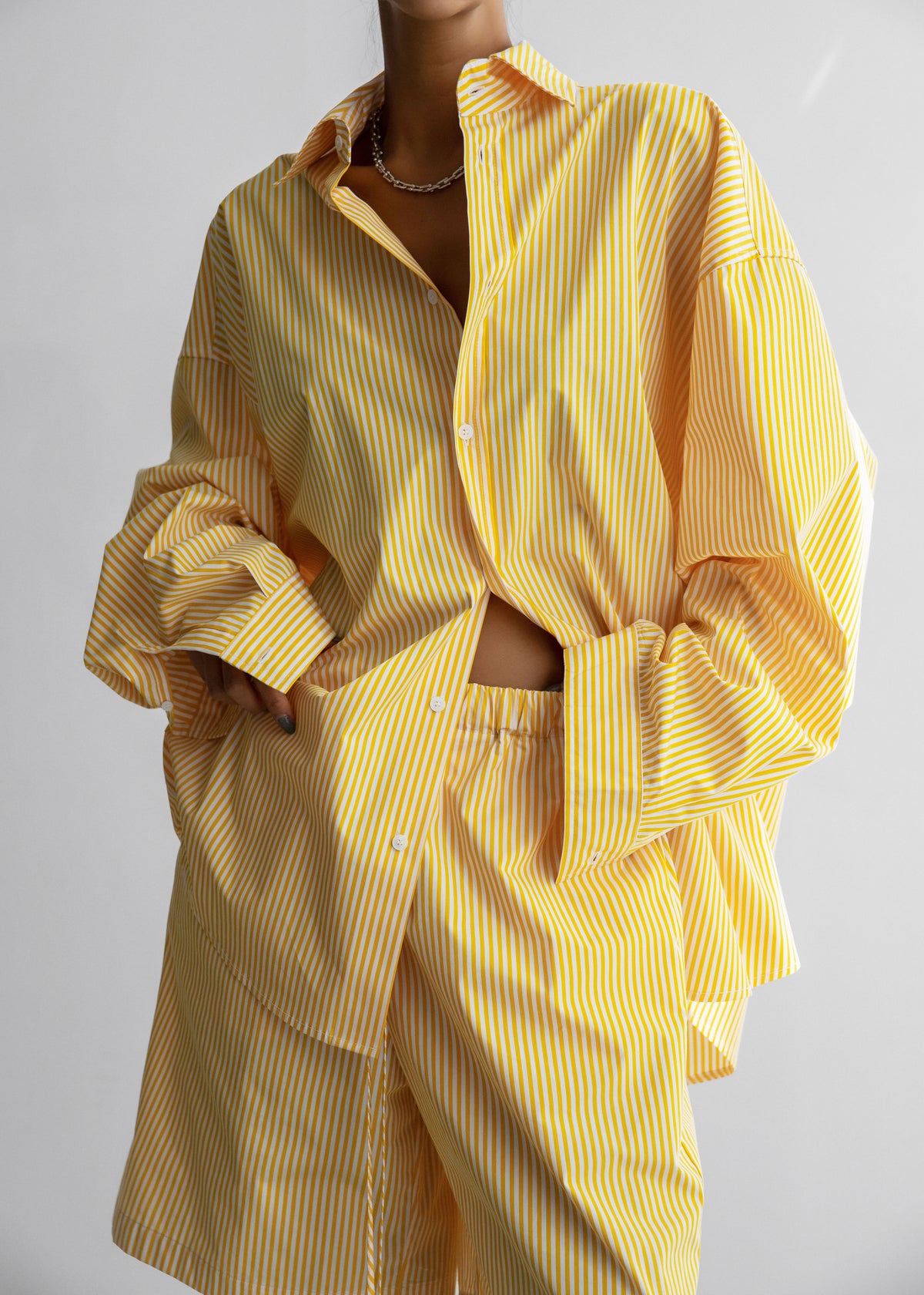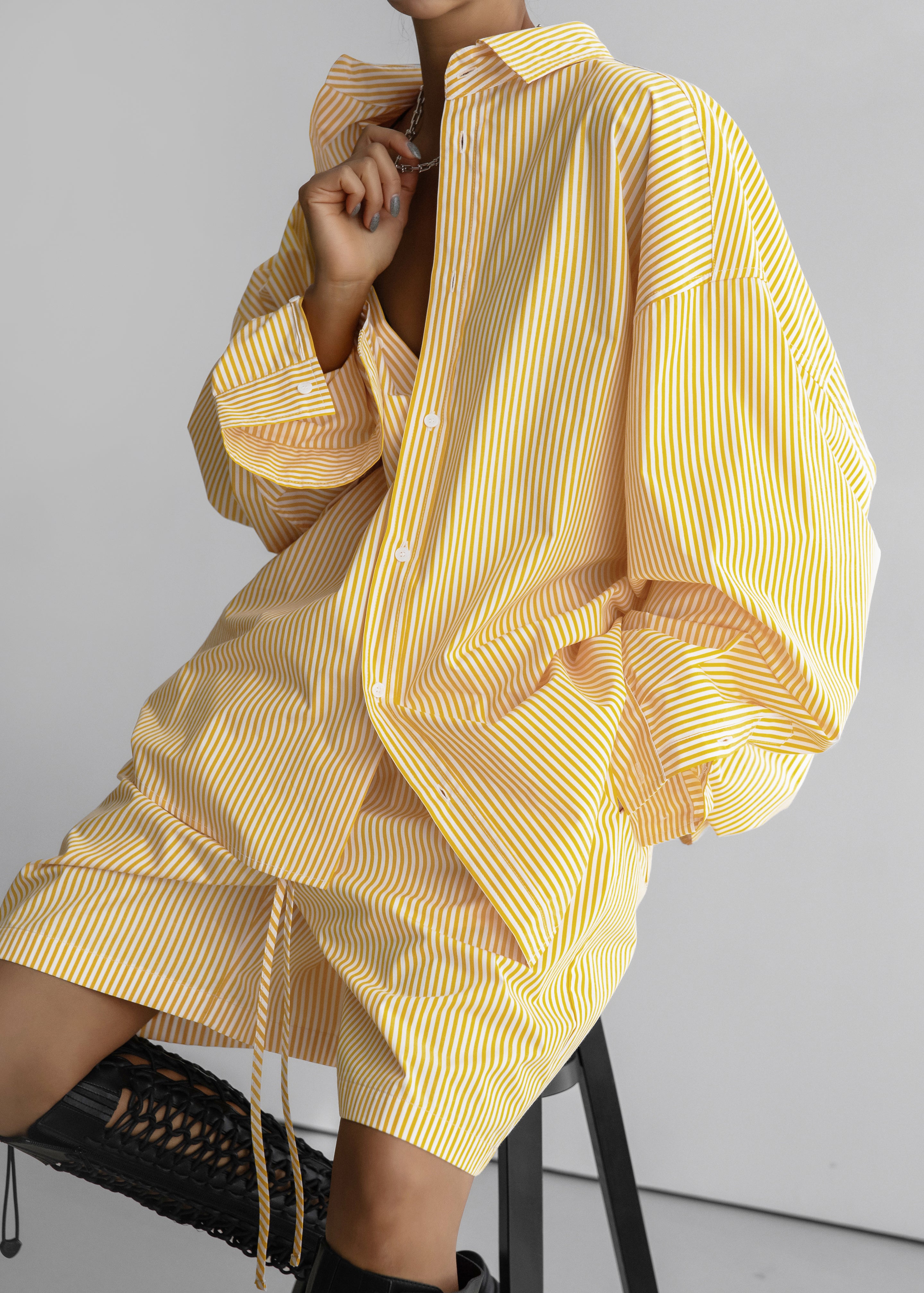 Rimini Oversized Poplin Shirt - Yellow/White Stripe