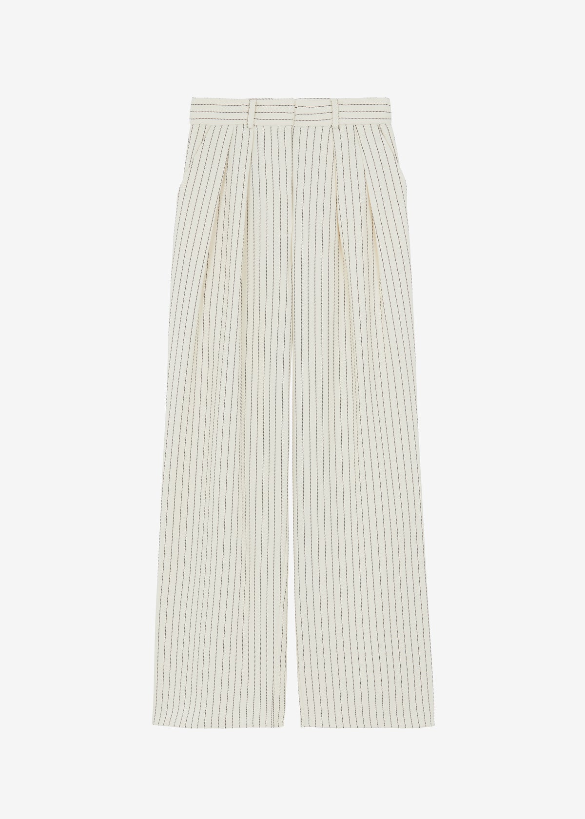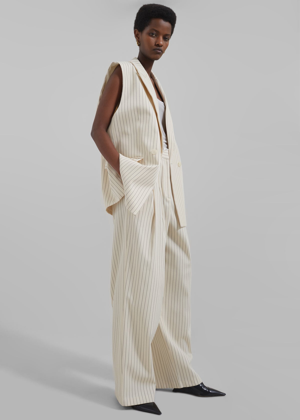 Ripley Pleated Twill Trousers - Light Beige/Black Pinstripe