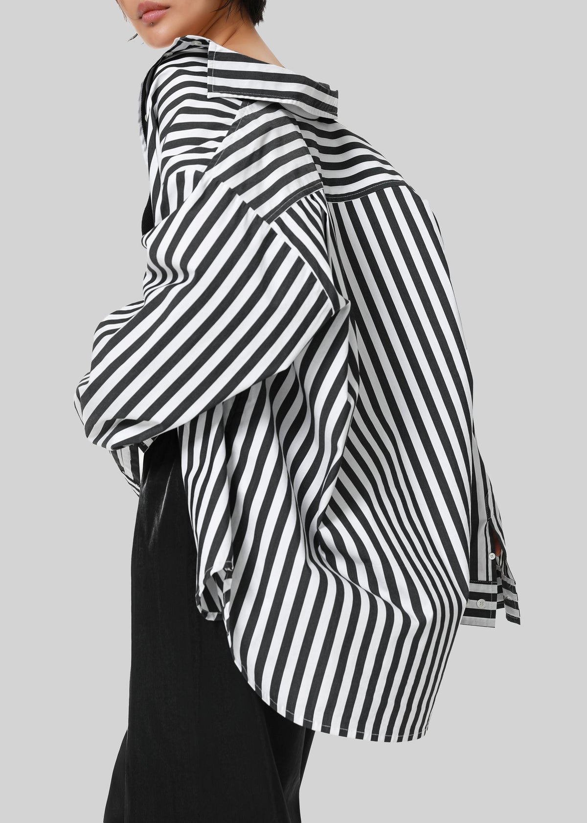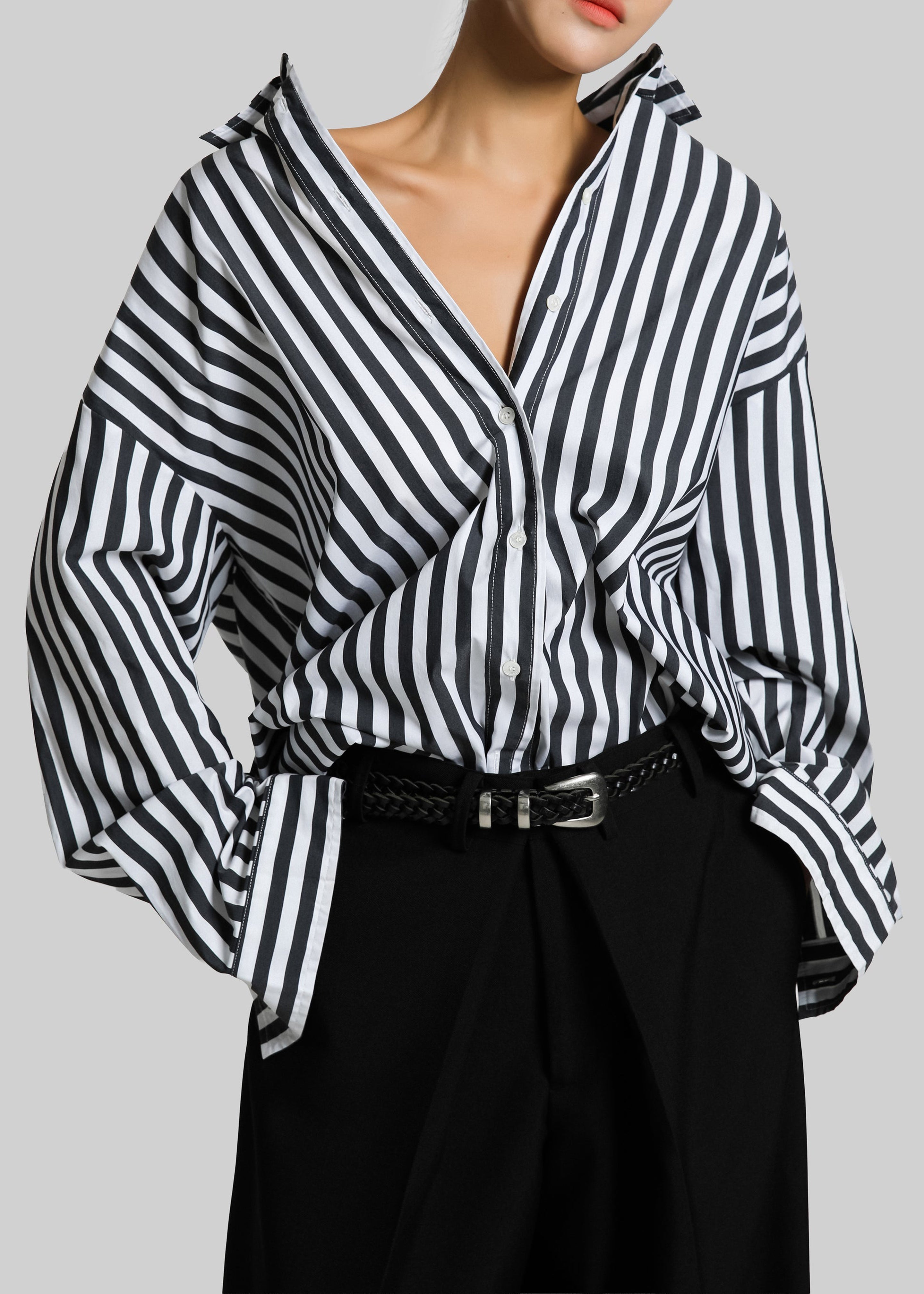 Sylvia Striped Oxford Shirt - Faded Black/White