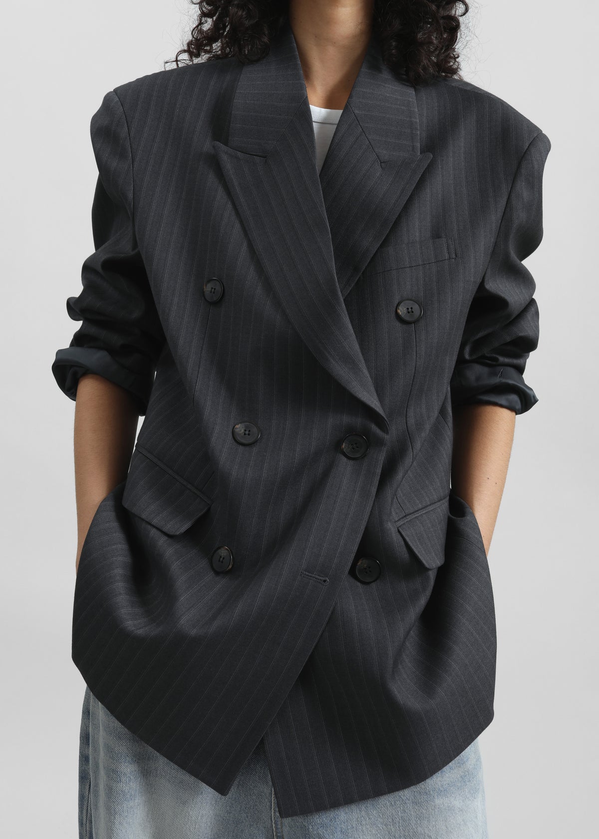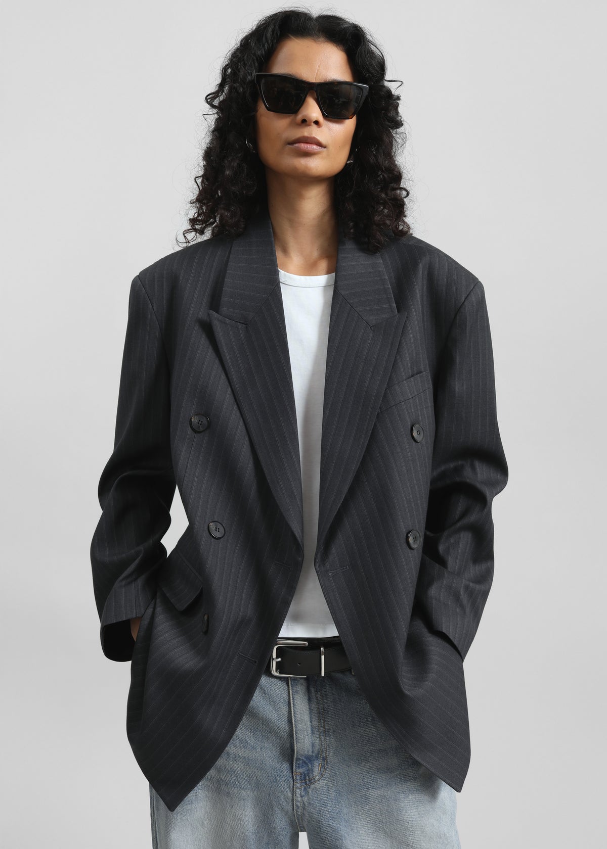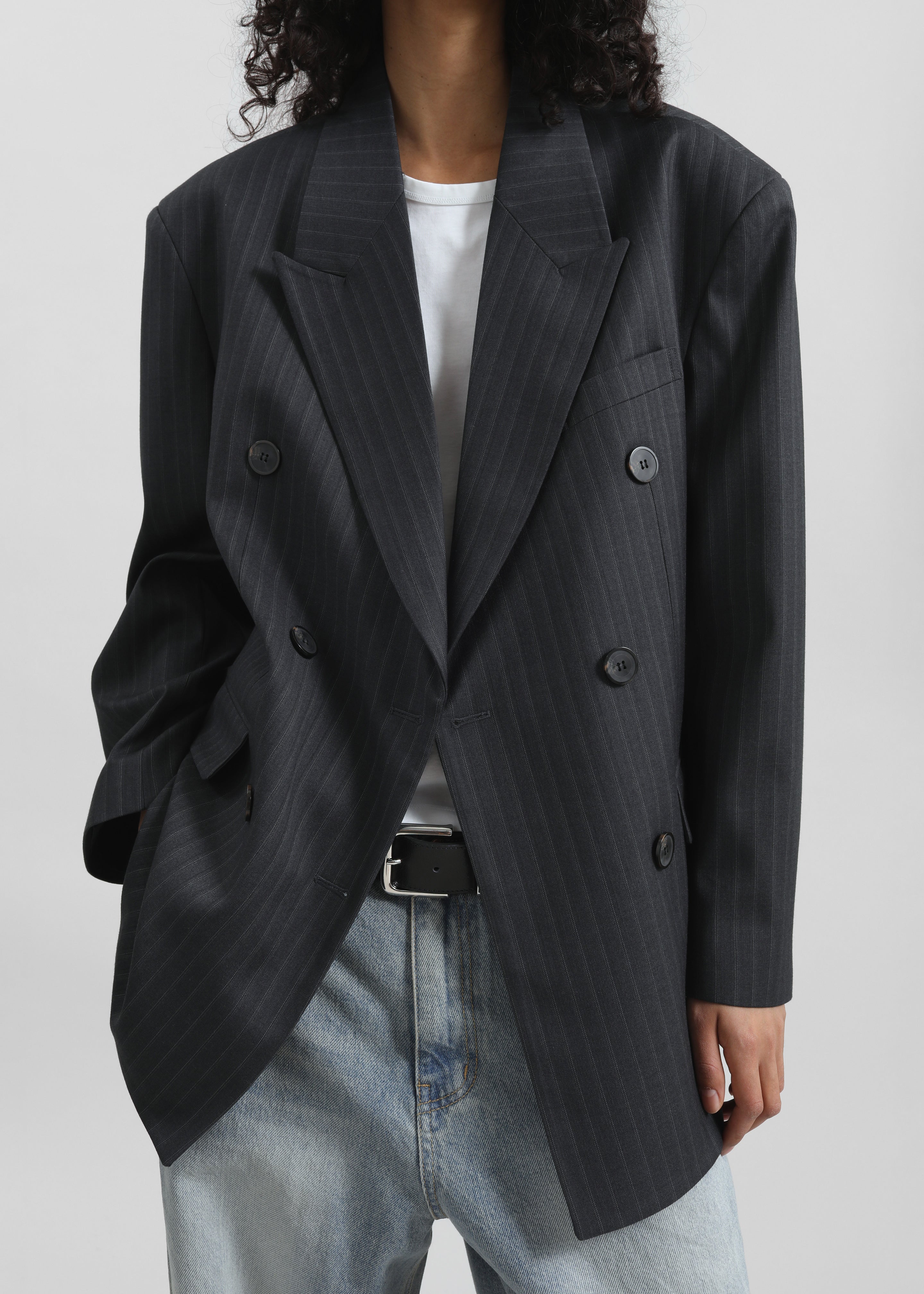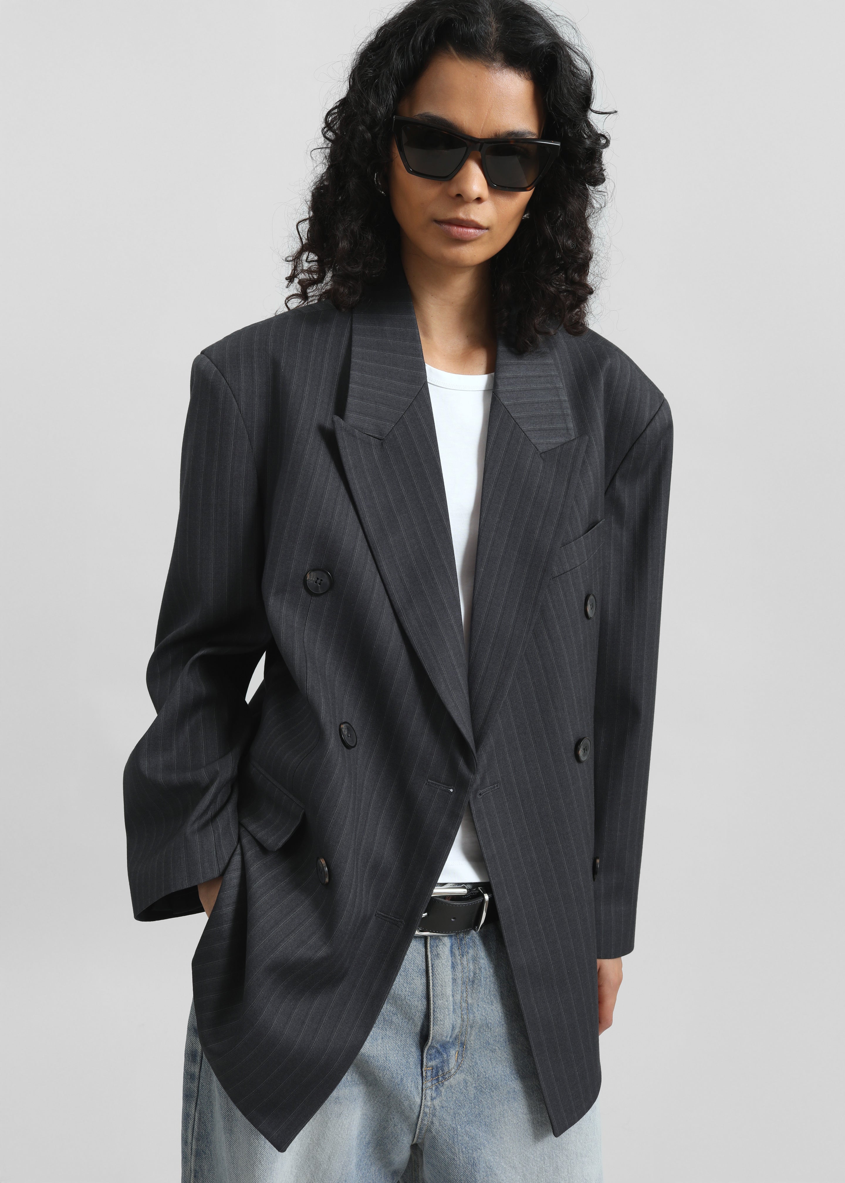 Tarbert Double-Breasted Blazer - Grey/White Pinstripe