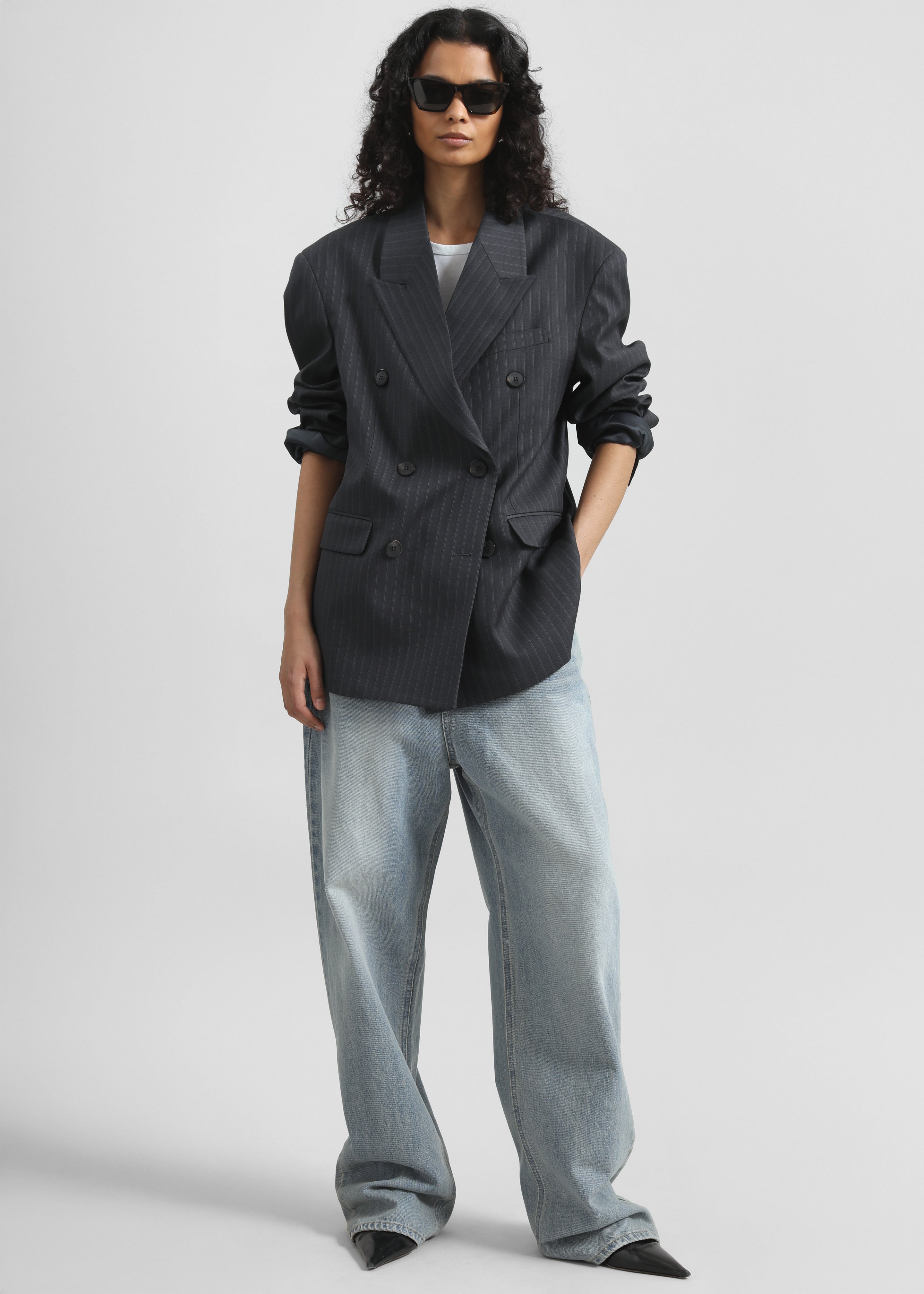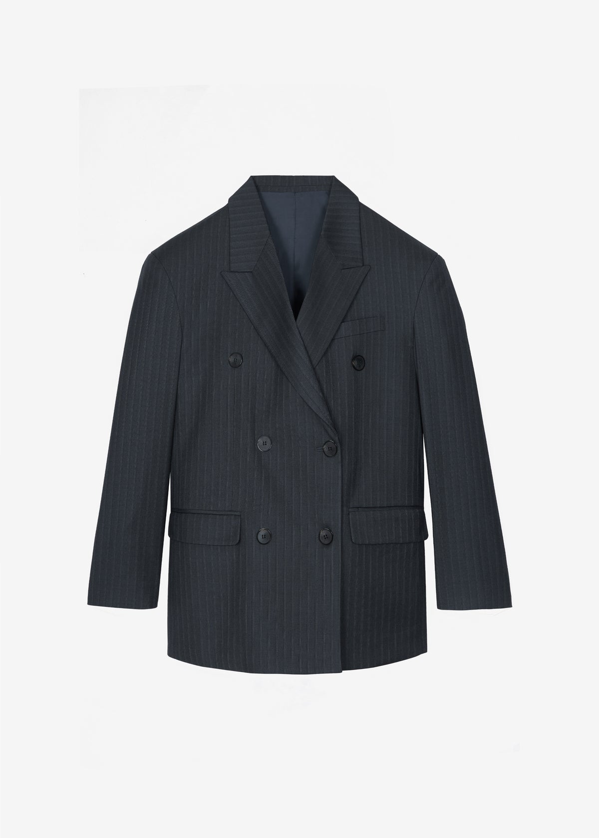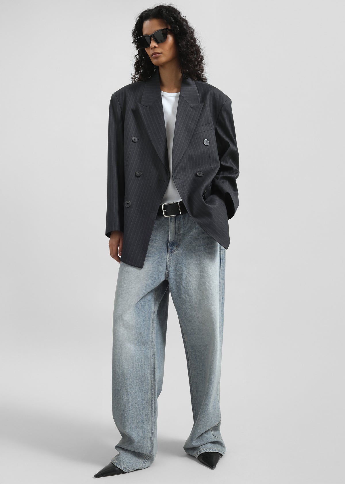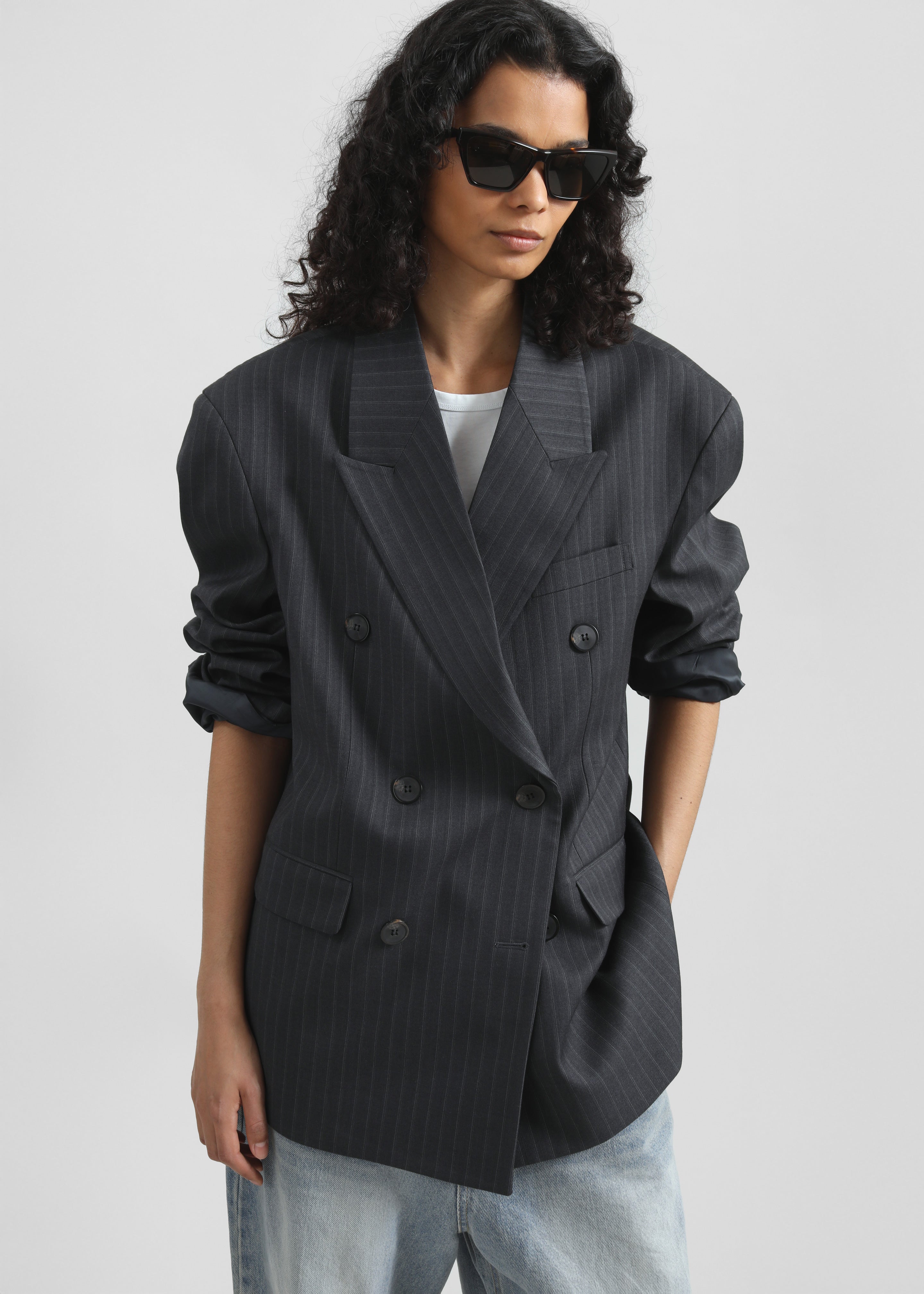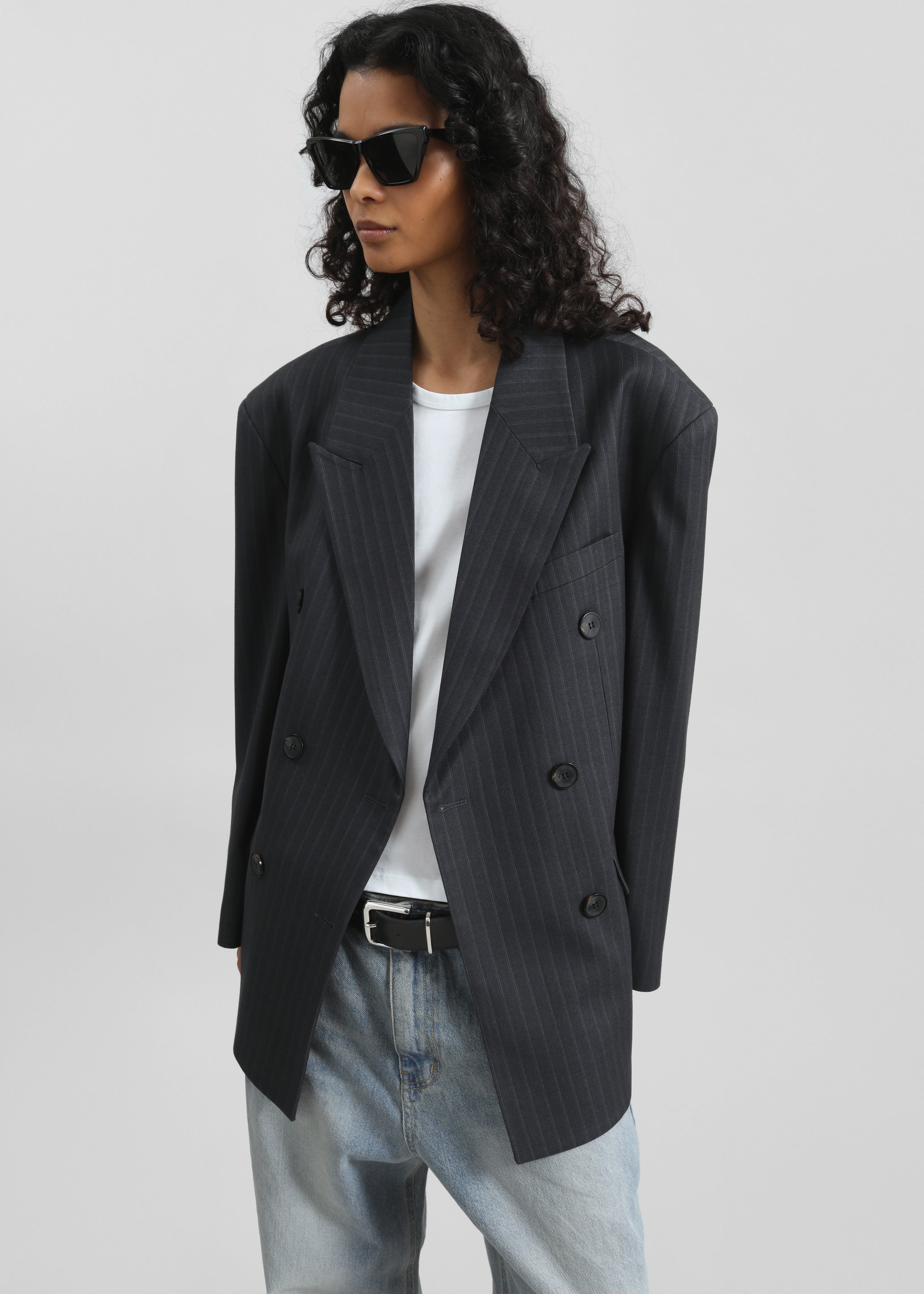 Tarbert Double-Breasted Blazer - Grey/White Pinstripe