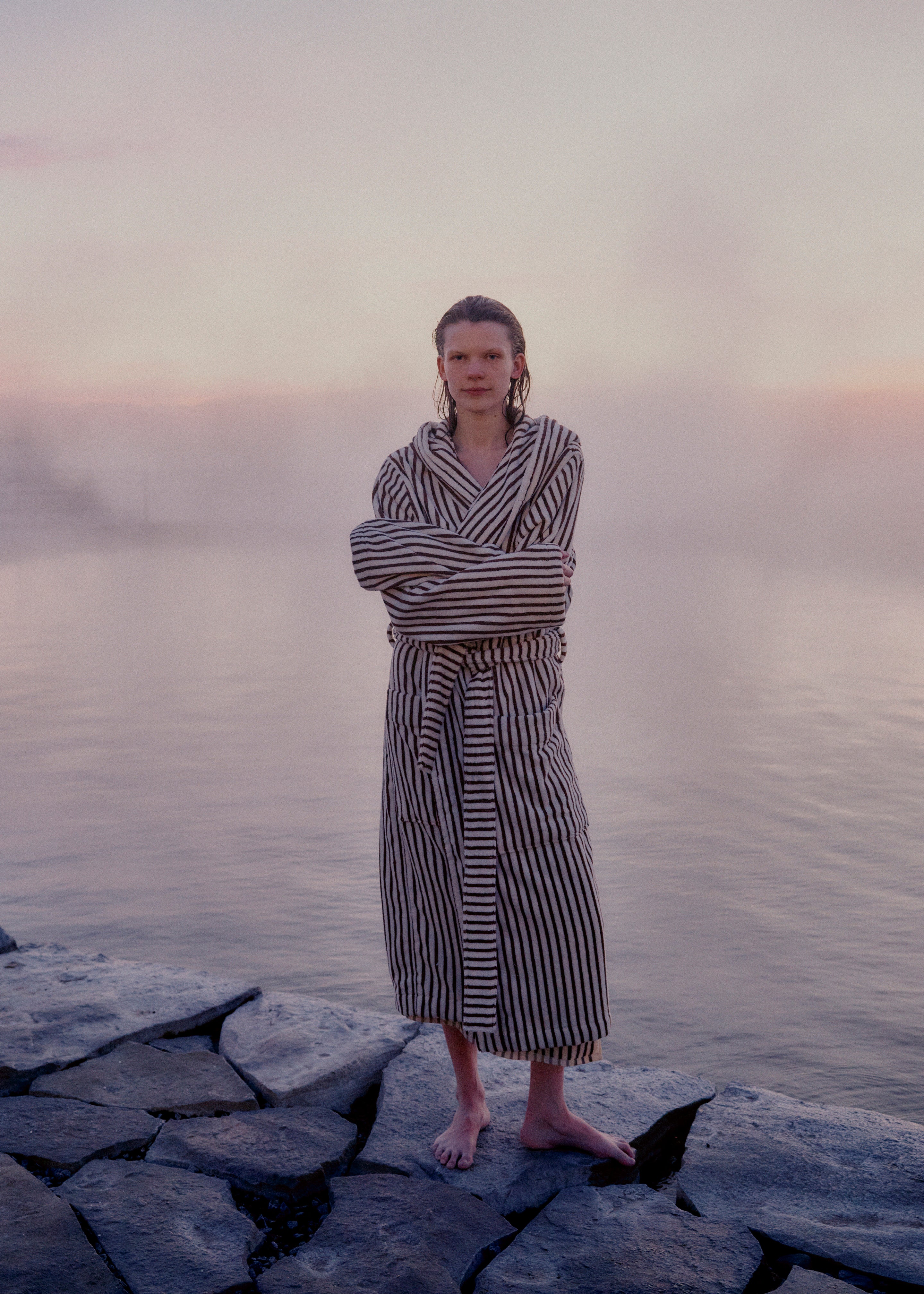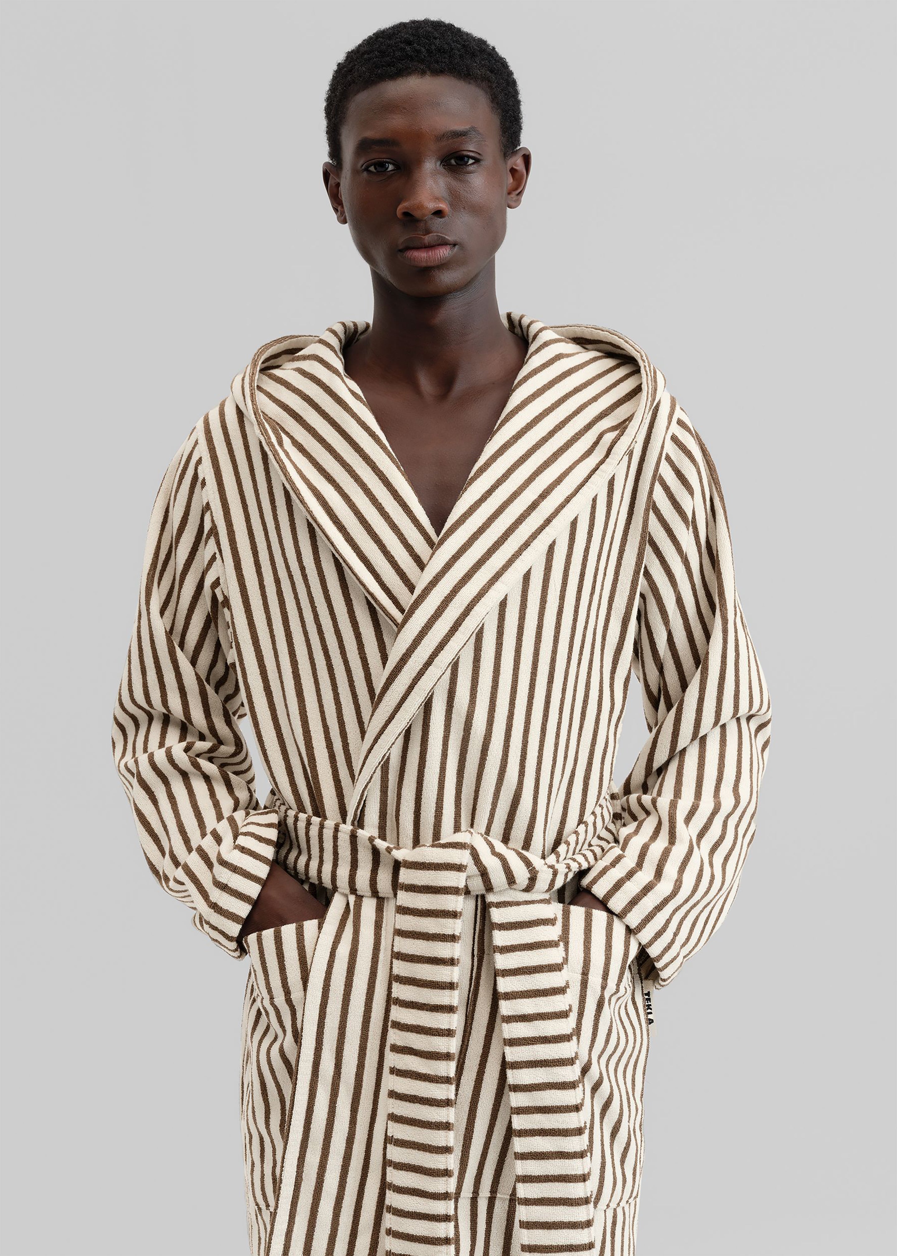 Tekla Hooded Bathrobe - Kodiak Stripes