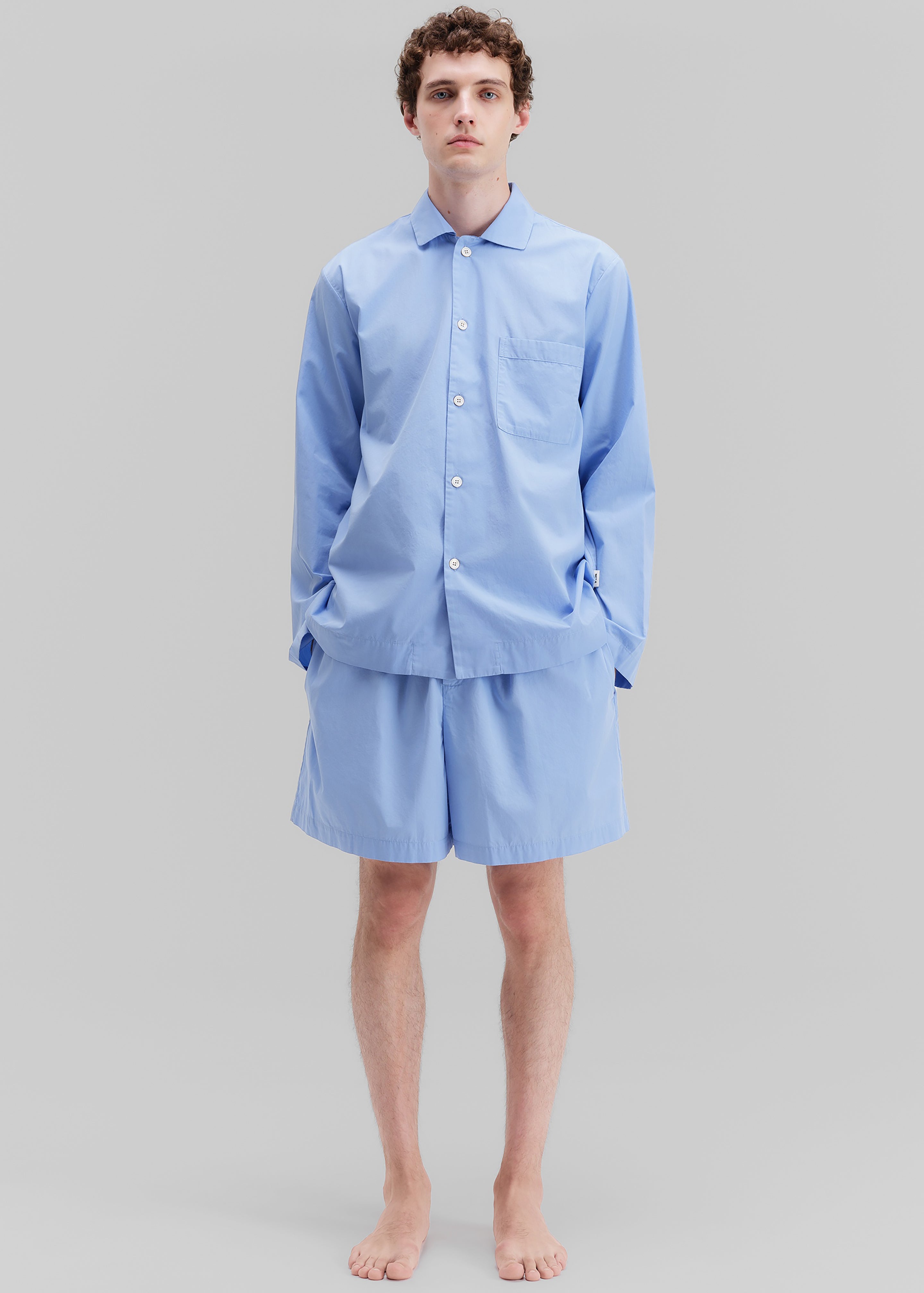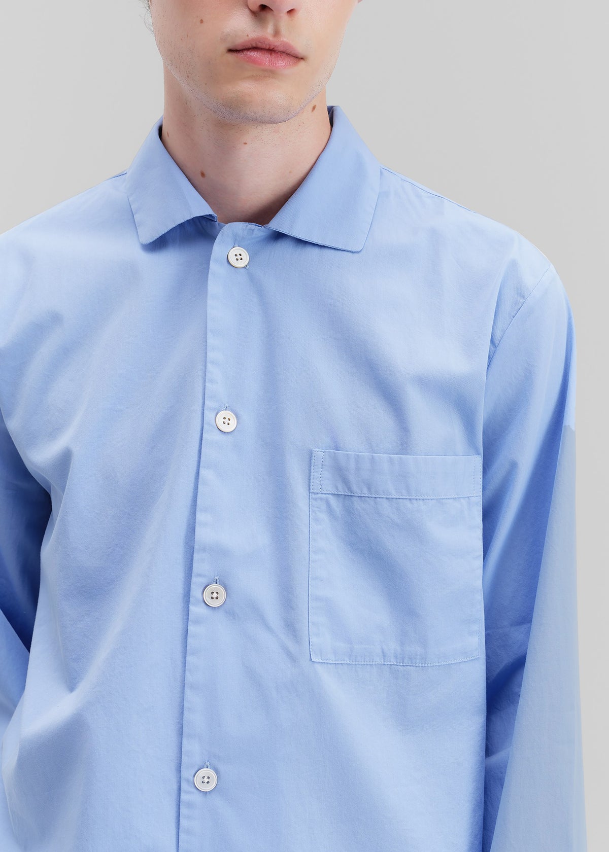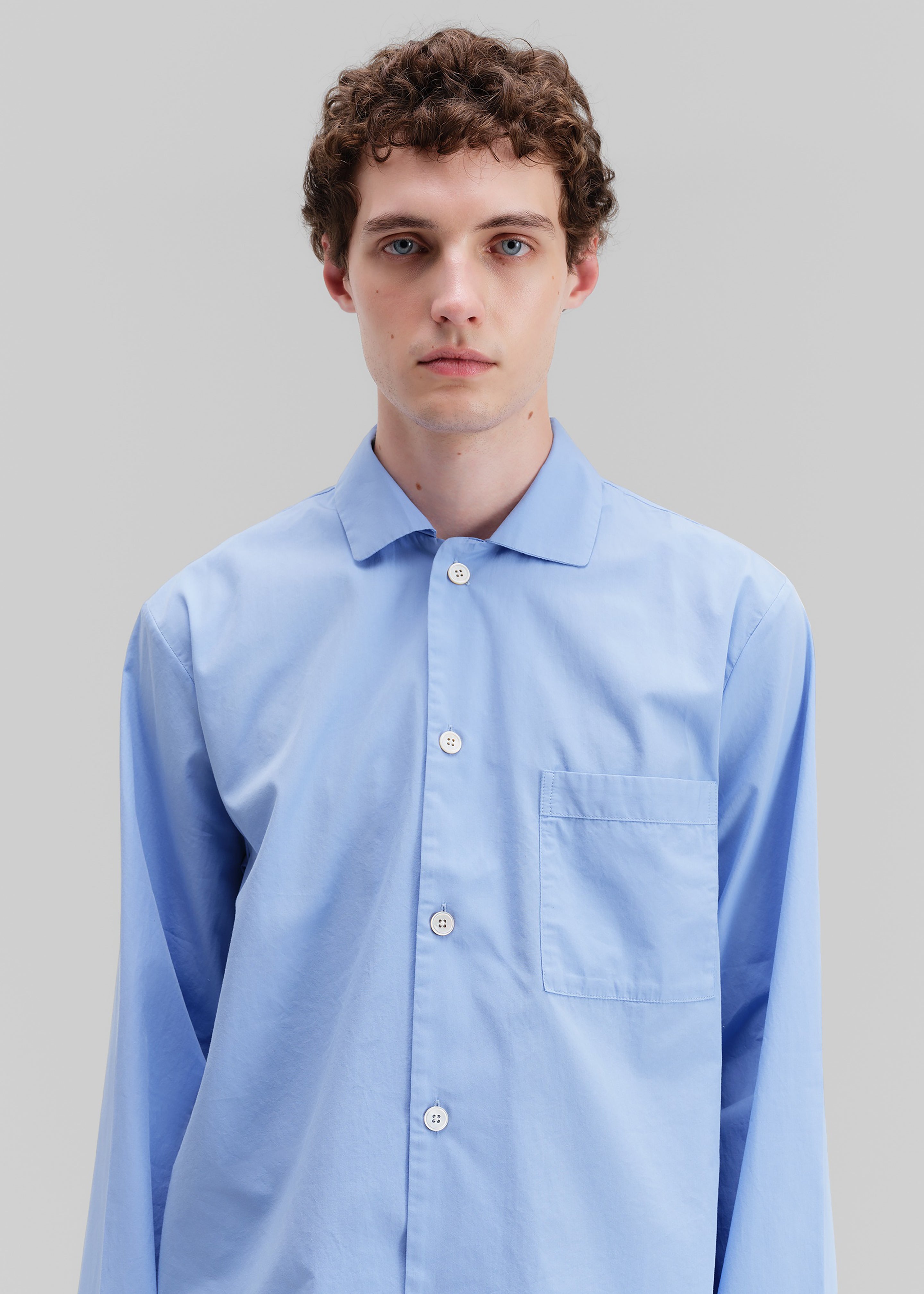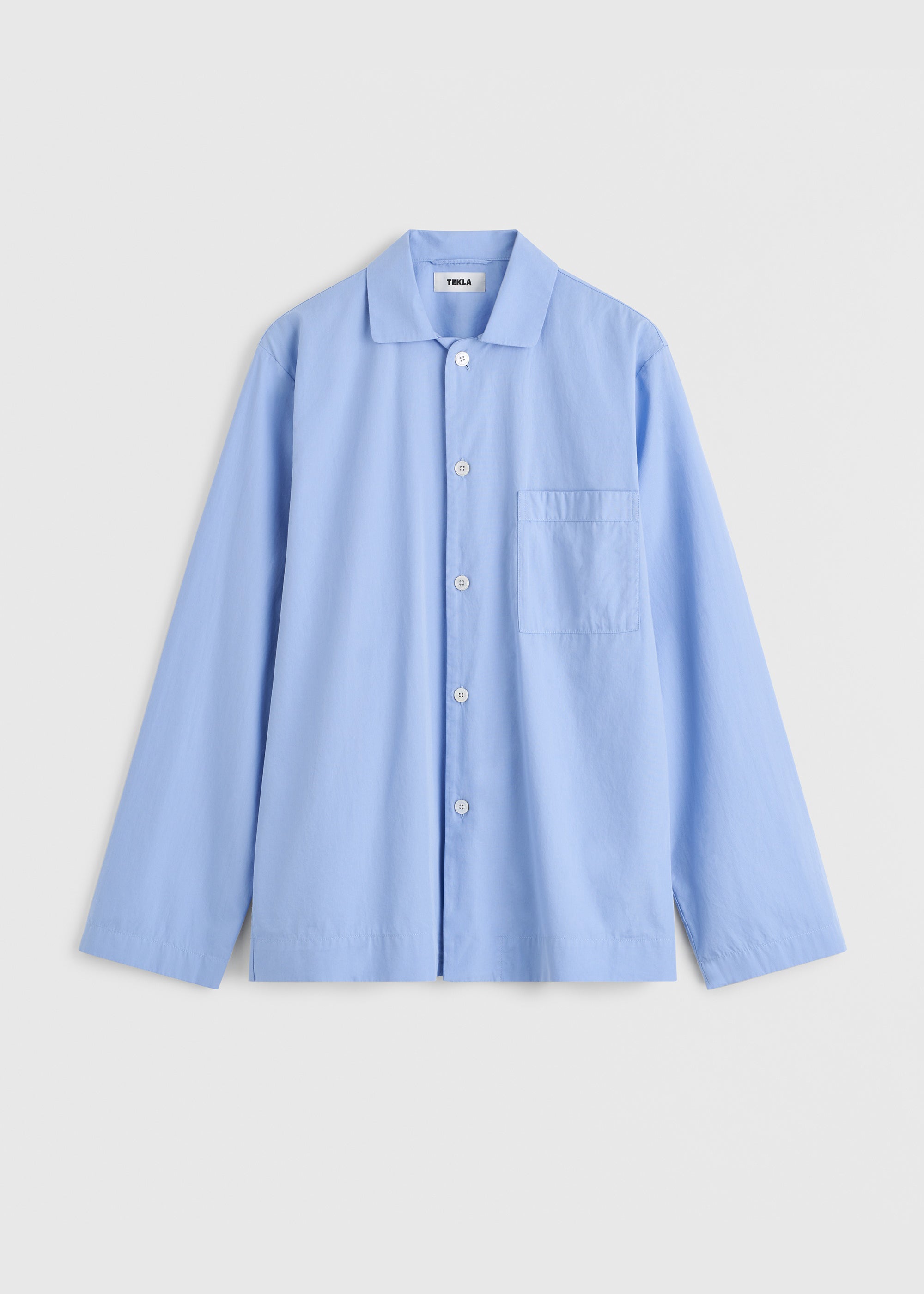 Tekla Poplin Pyjama Shirt - Cornflower Blue