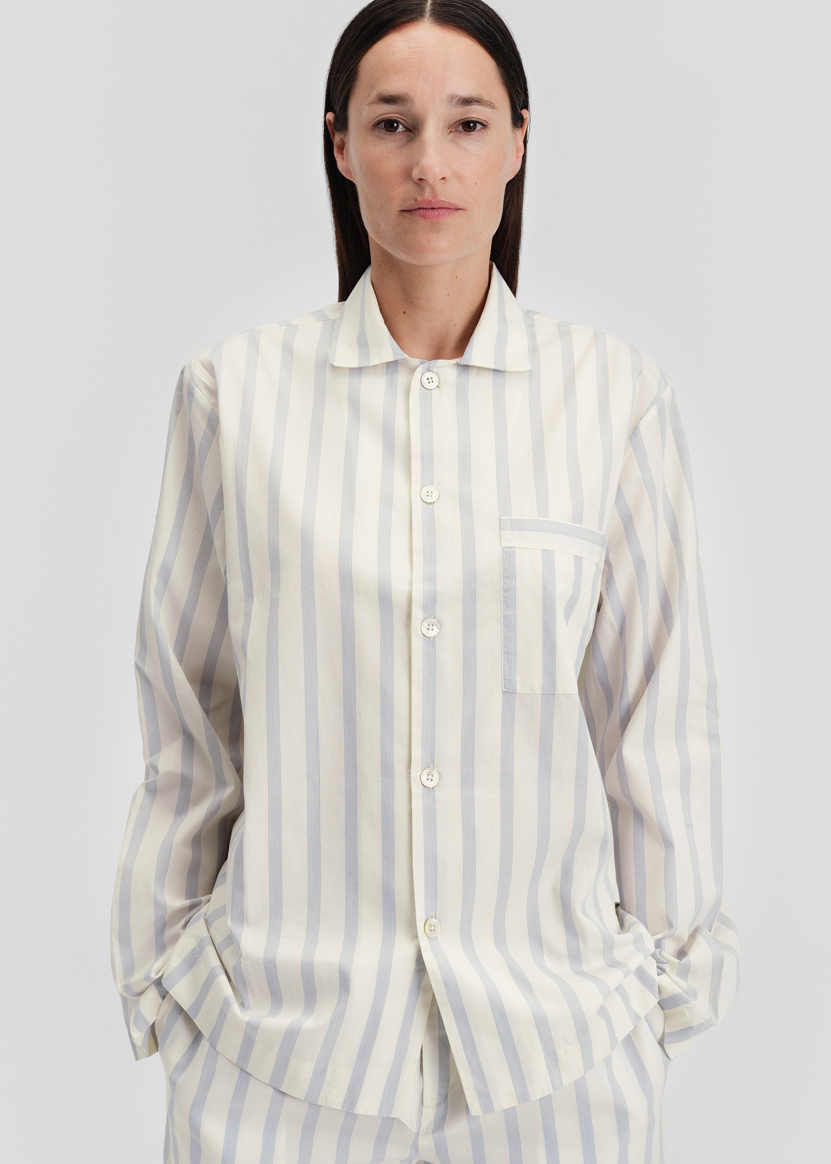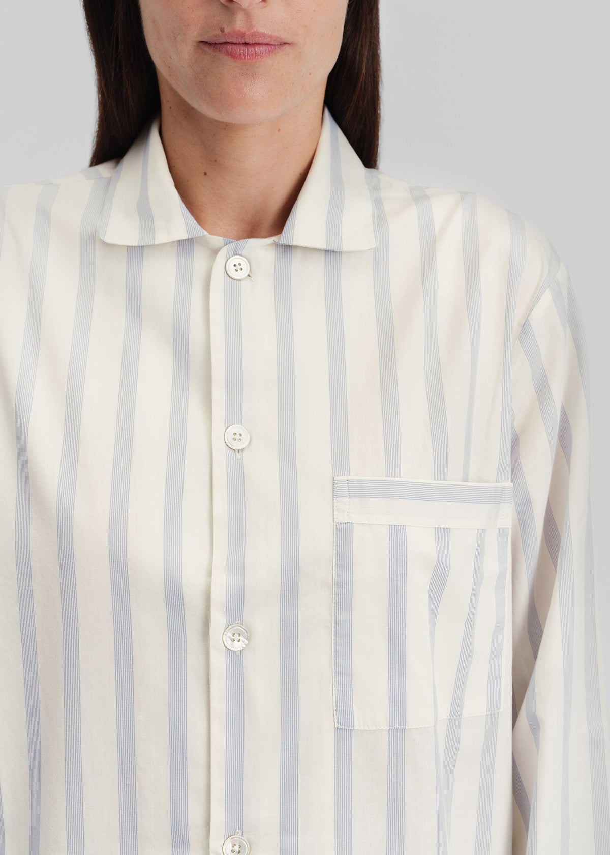 Tekla Poplin Pyjama Shirt - Needle Stripes