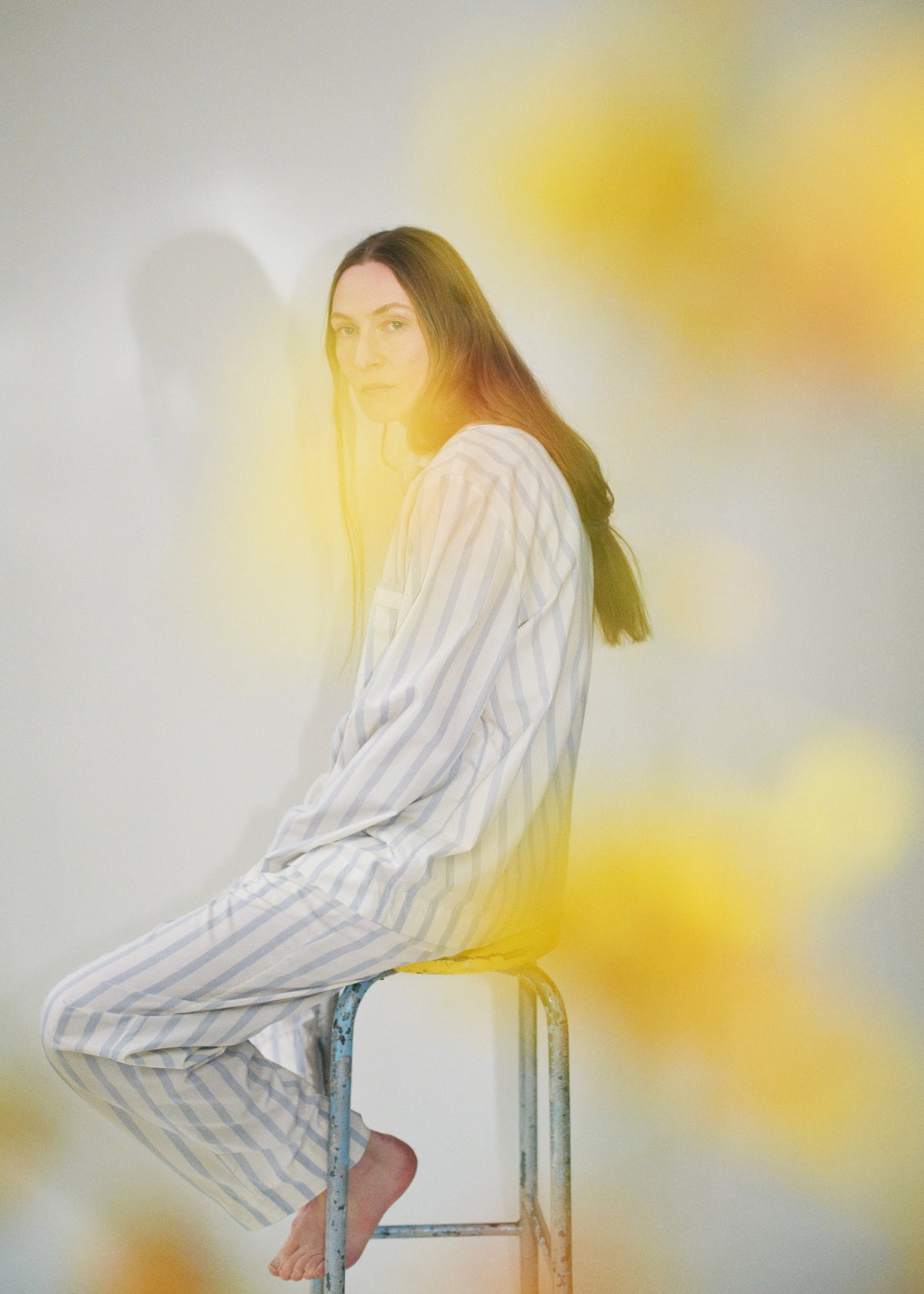 Pale blue stripes on a winter white base