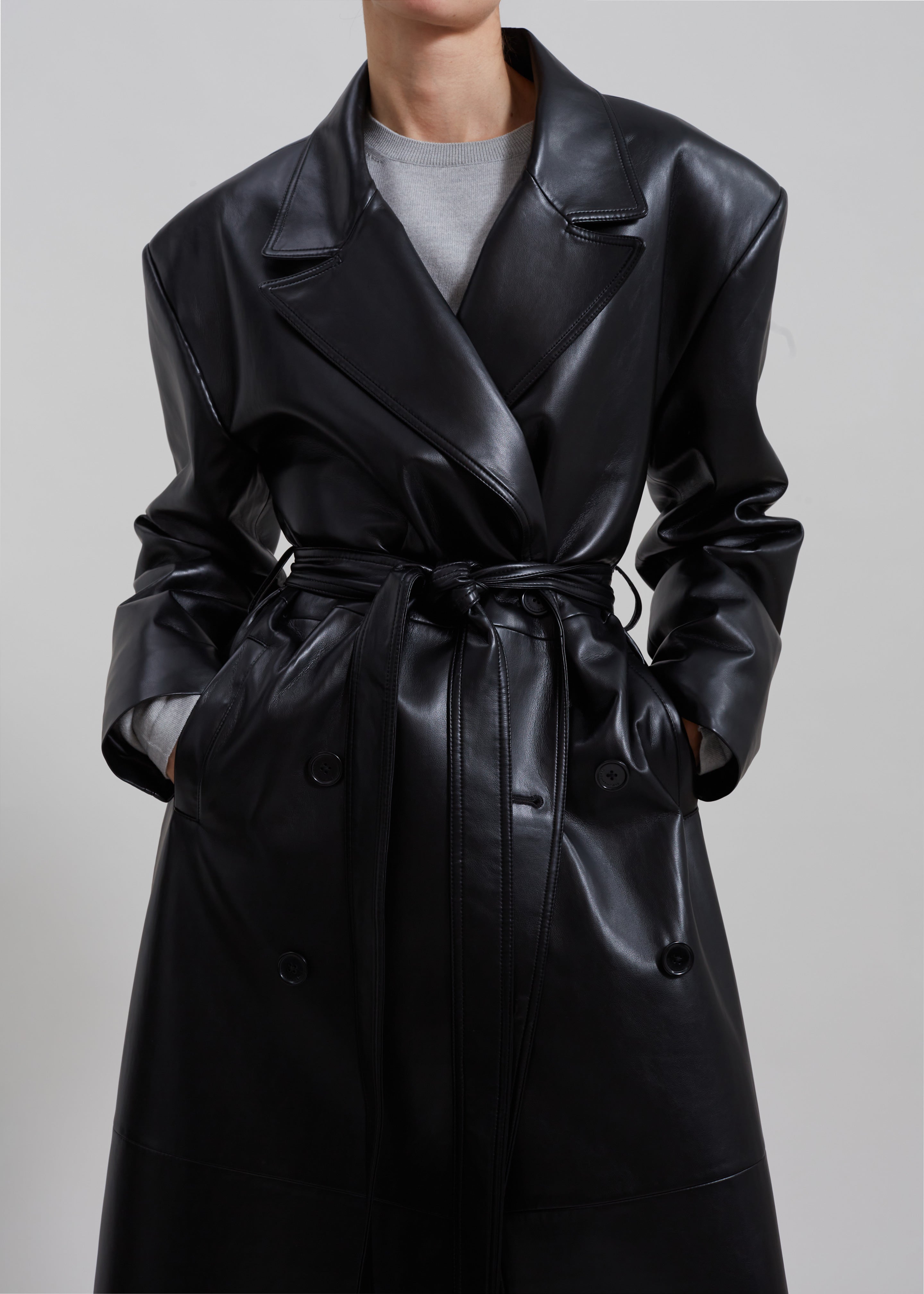 Tina Faux Leather Trench Coat - Black