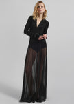 Vallen Pleated Mesh Maxi Skirt - Black
